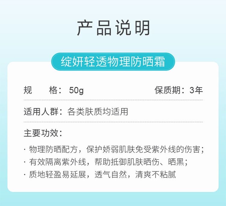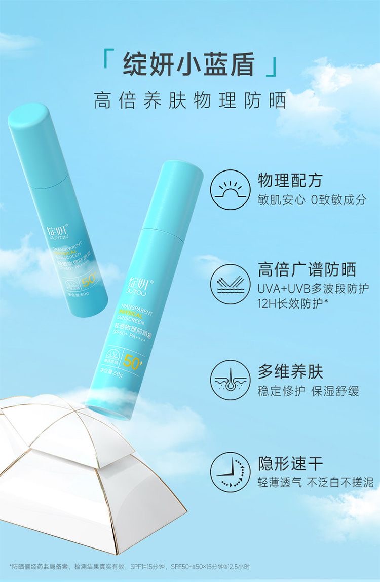 绽妍小蓝盾轻透纯物理面部防晒霜清爽不油腻养肤
