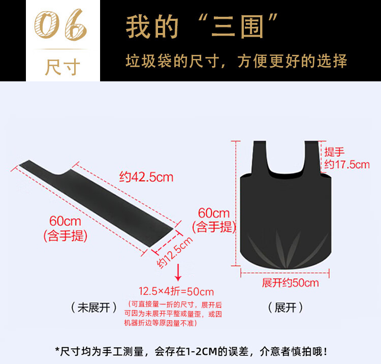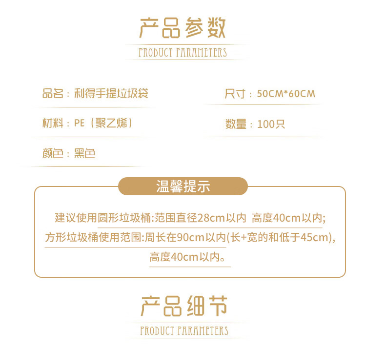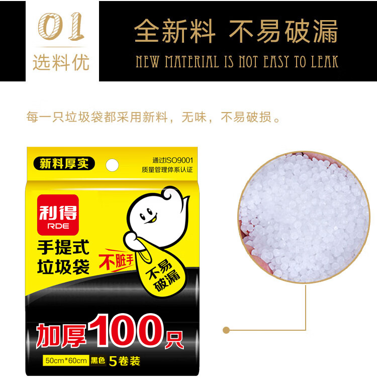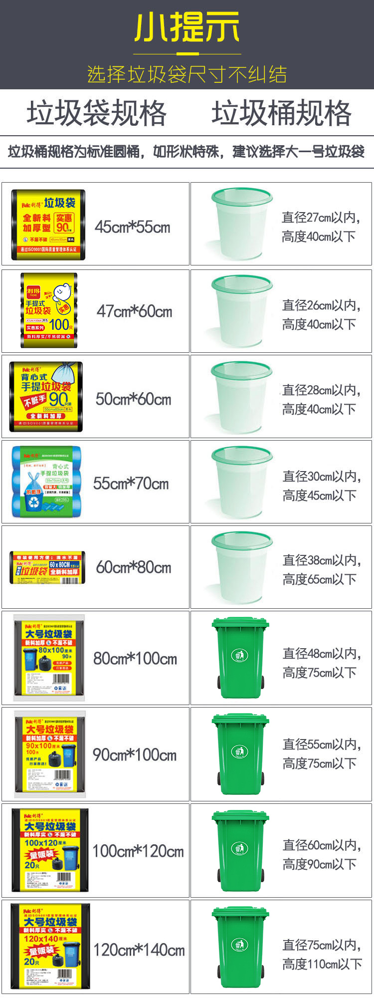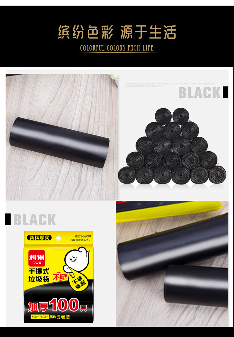 利得 背心式手提家用办公垃圾袋100只 50cm*60cm黑色加厚 垃圾分类 2490601