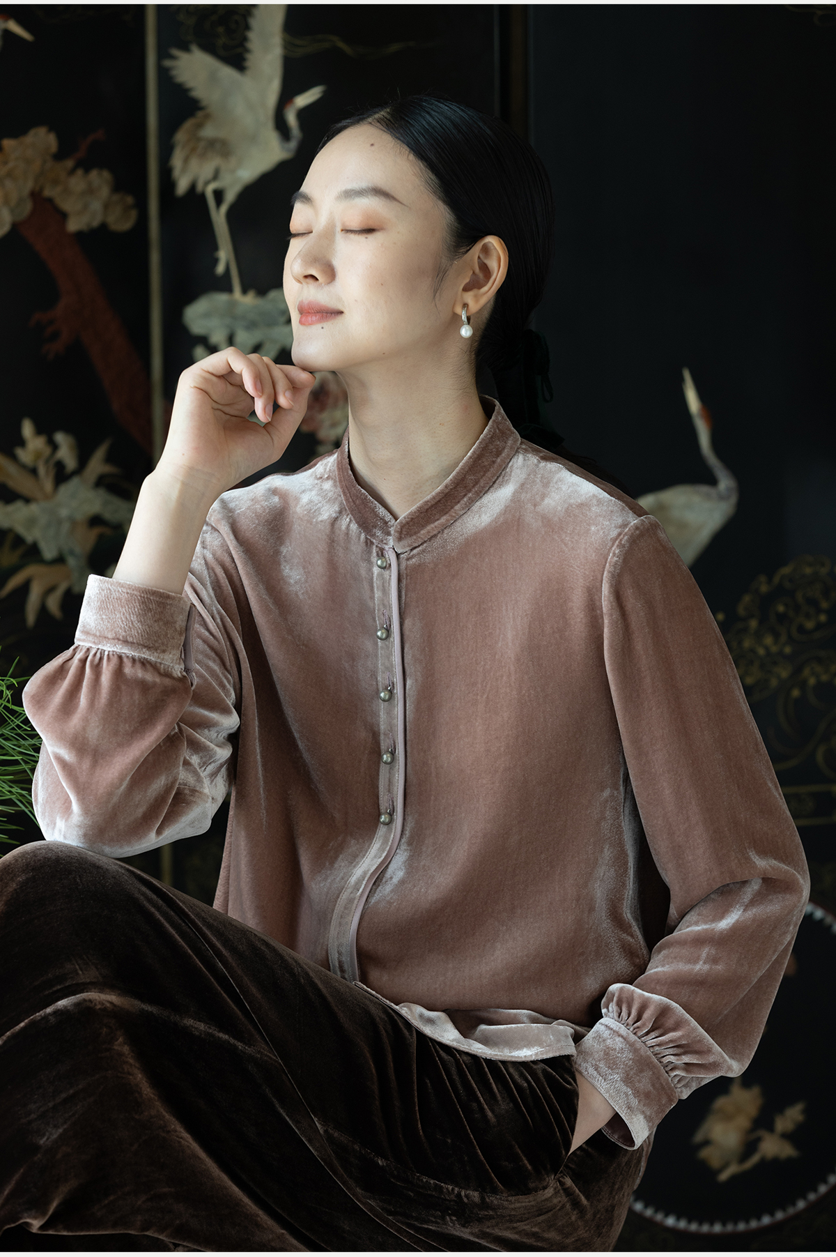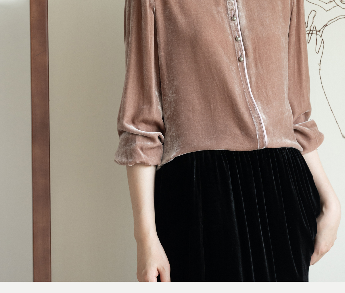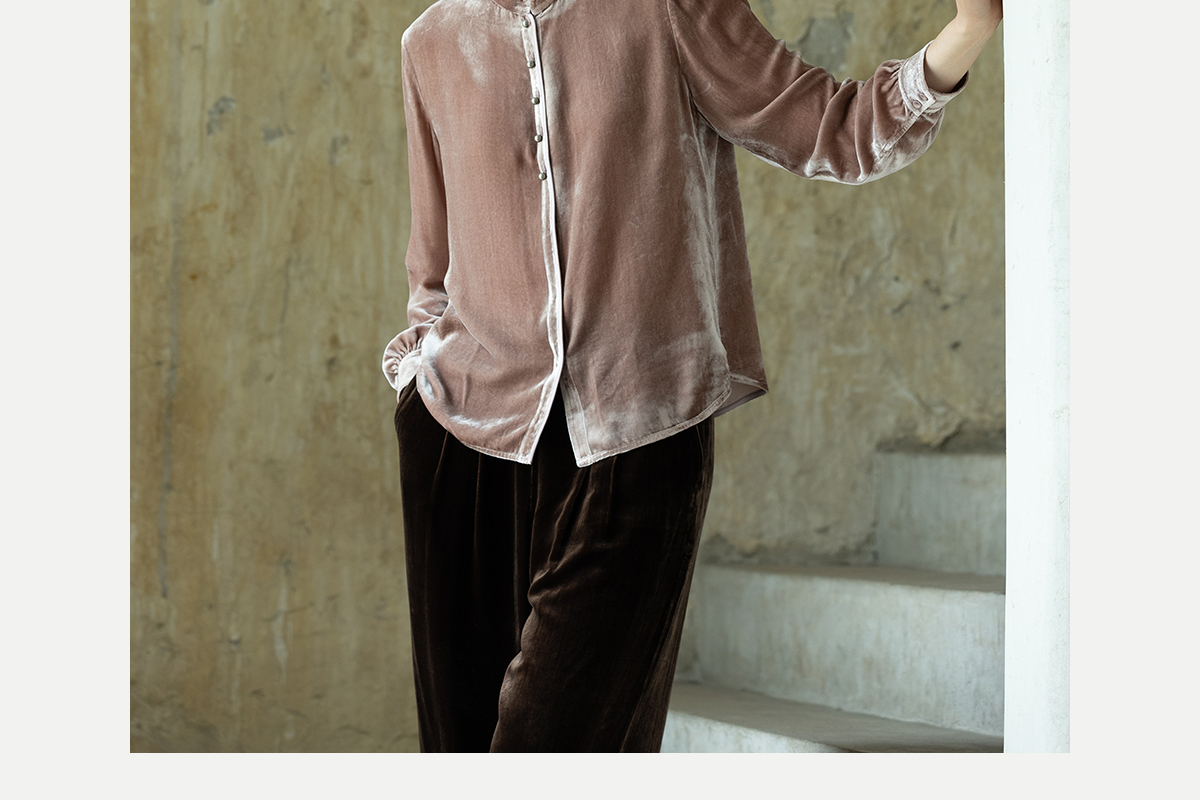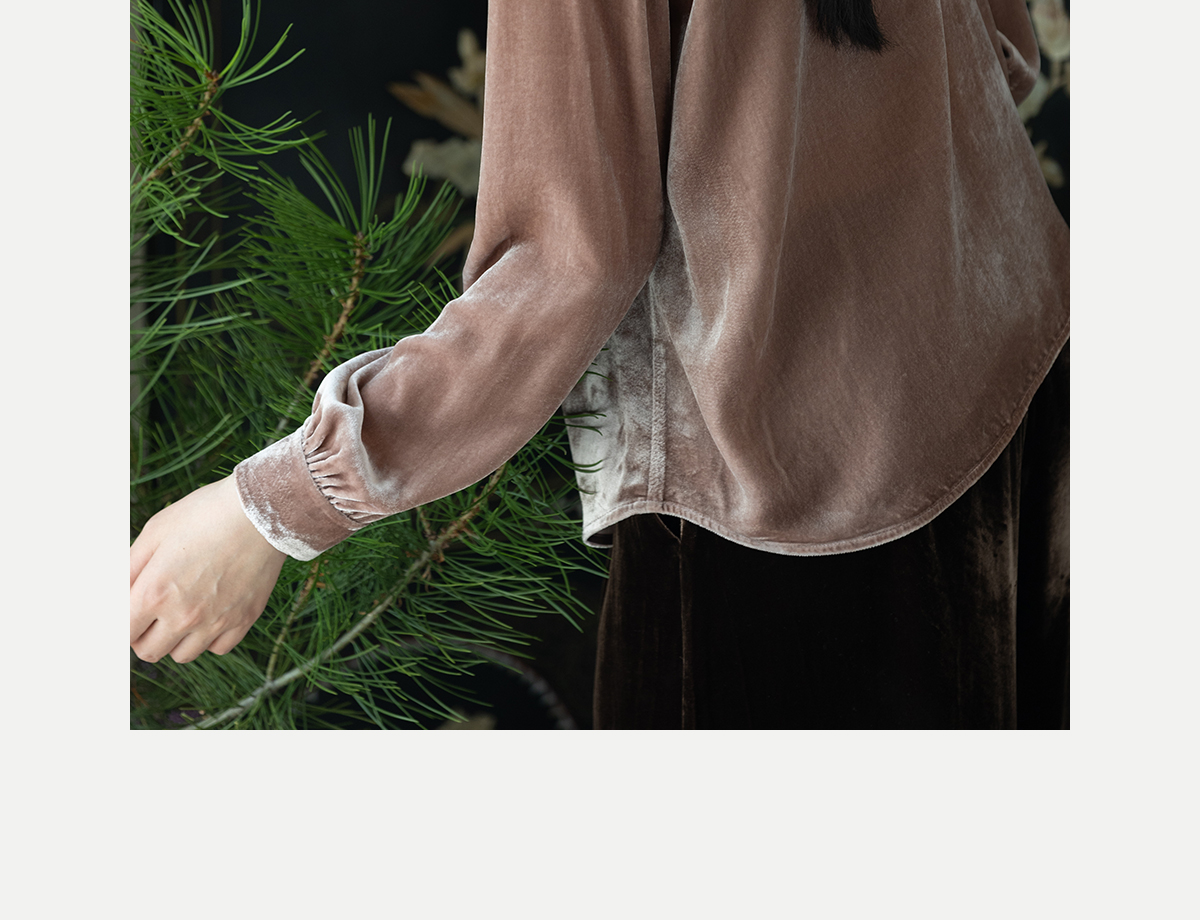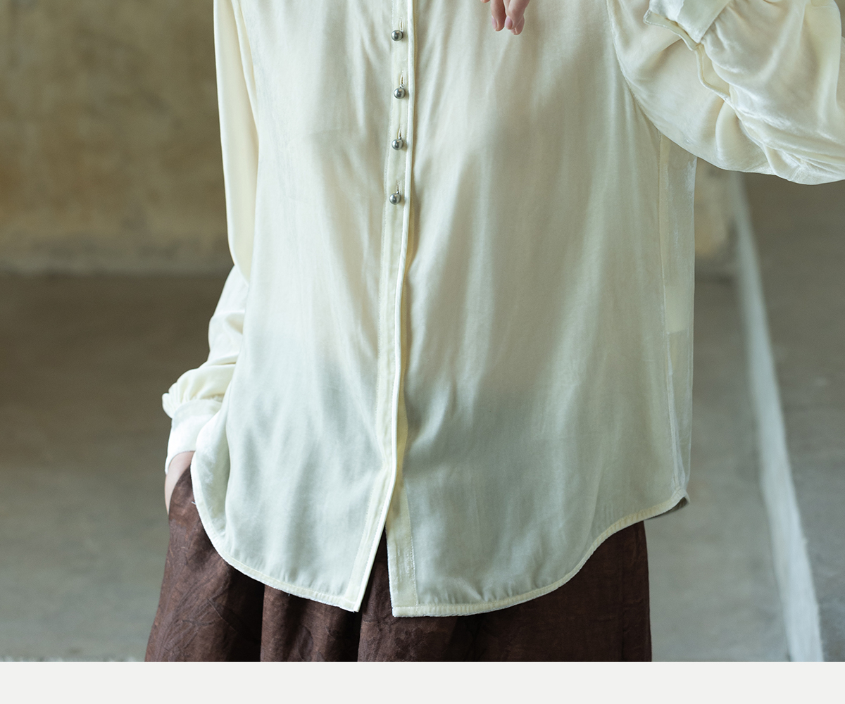 牧衣游原创 丝绒净色衬衫女秋季新款光泽感气质宽松百搭开衫 喜番