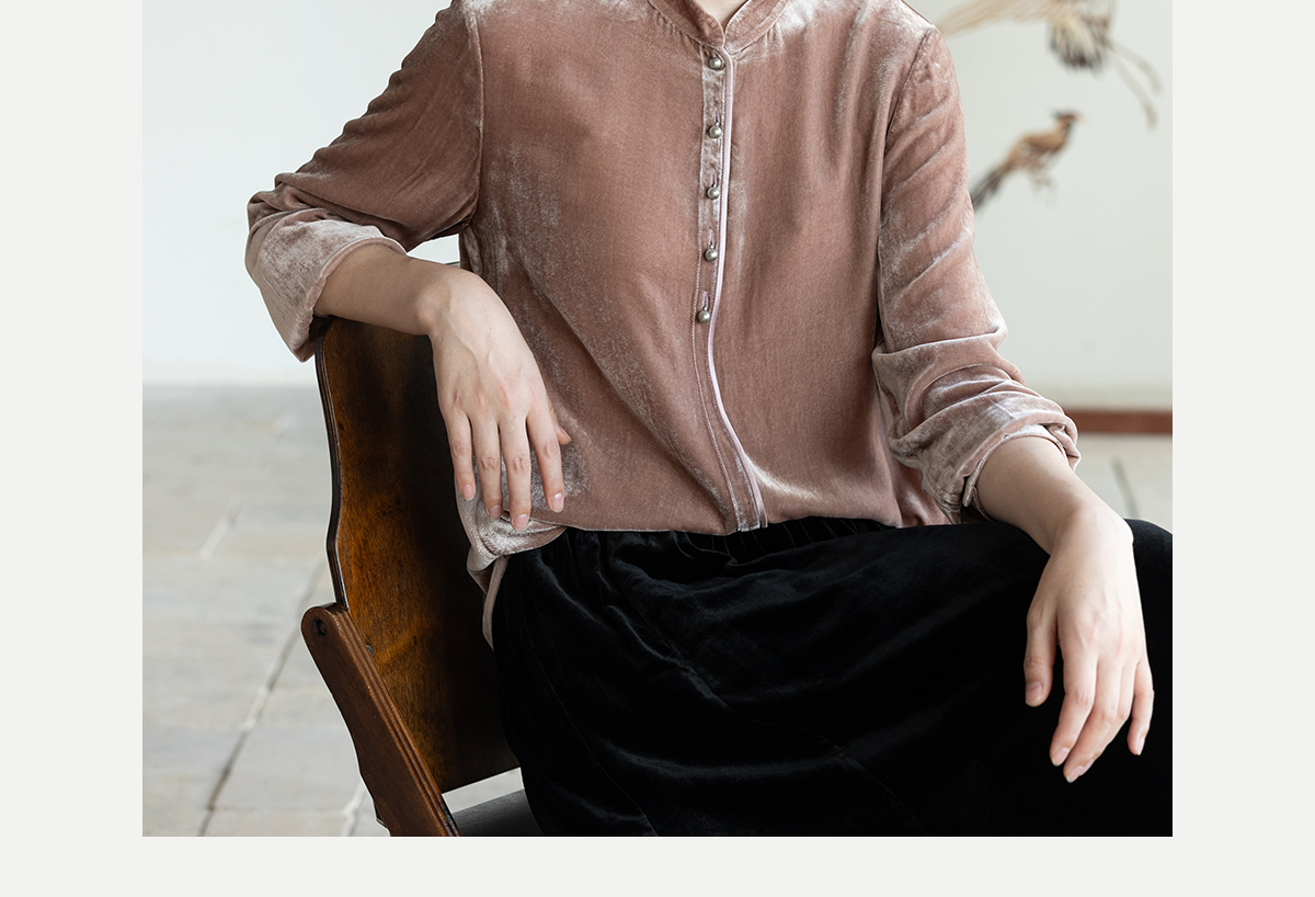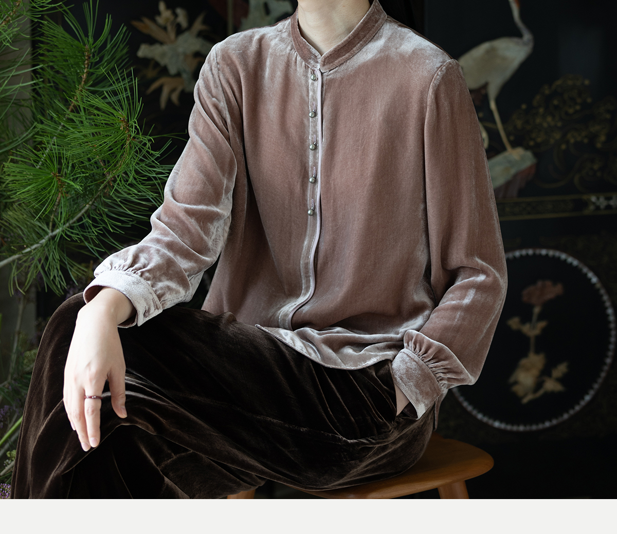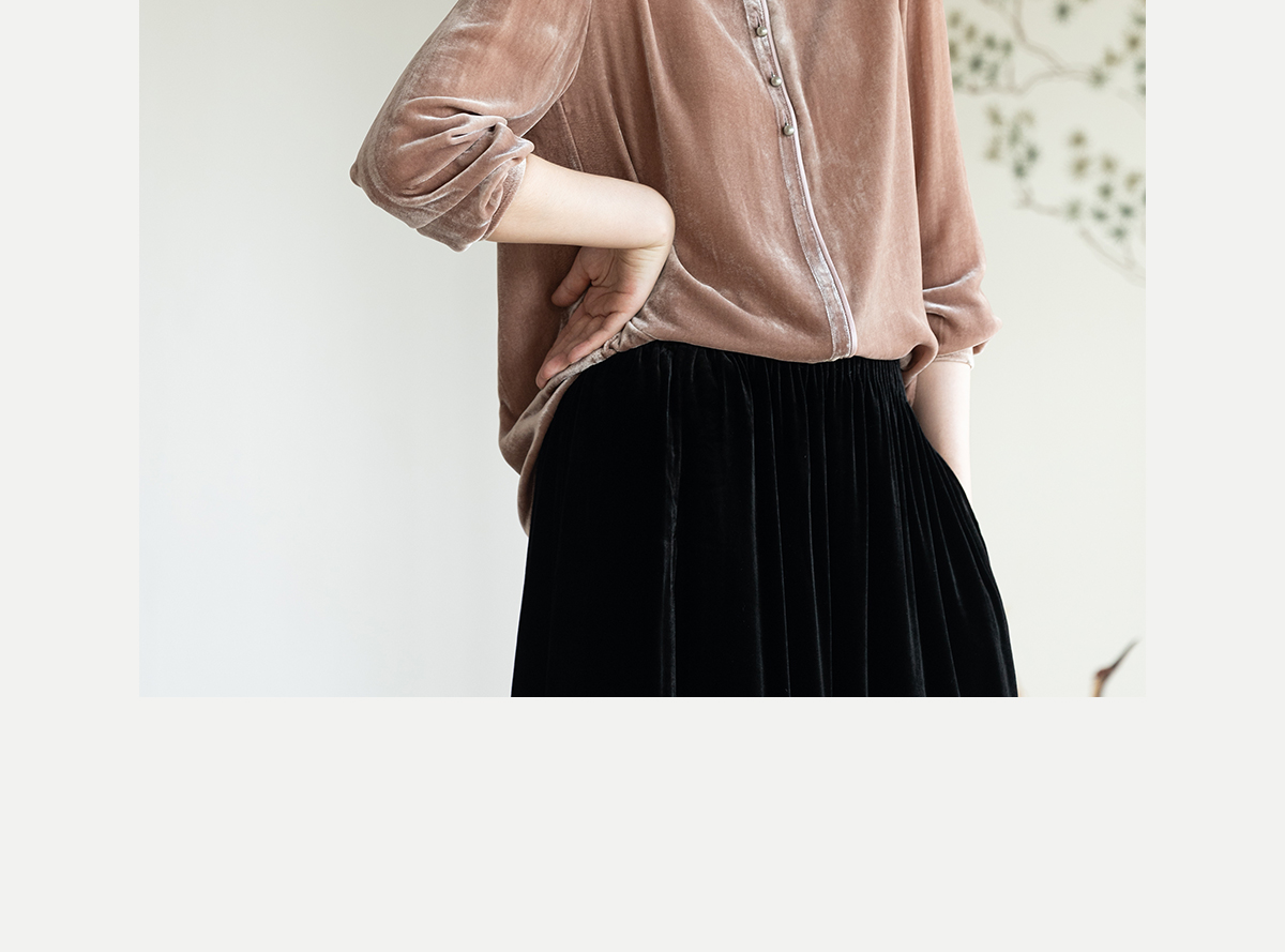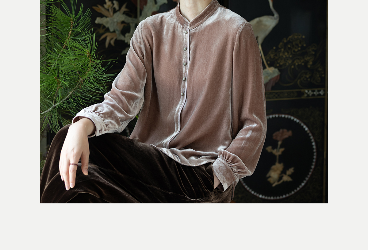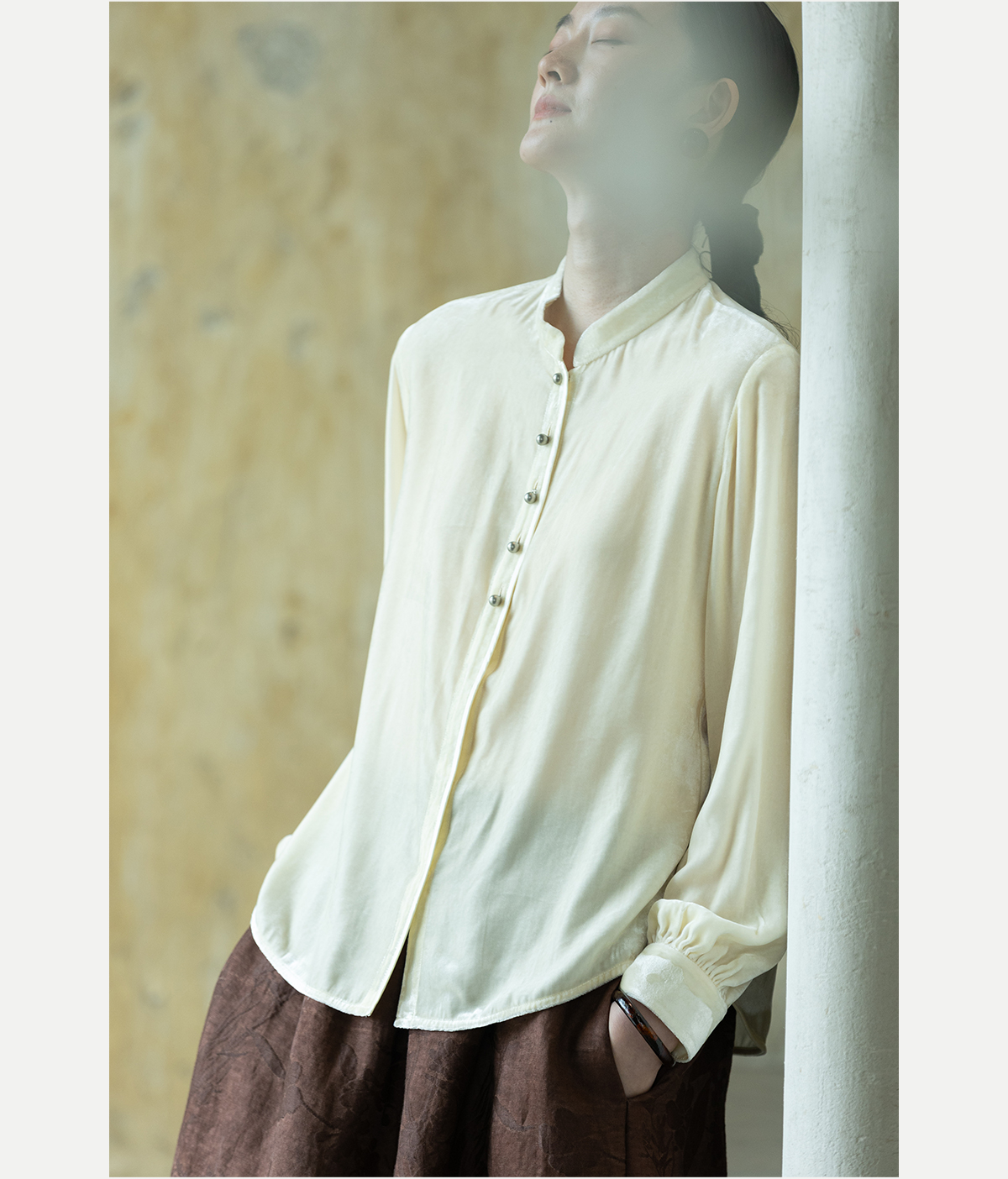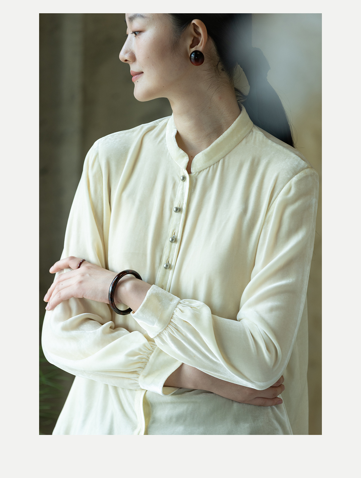 牧衣游原创 丝绒净色衬衫女秋季新款光泽感气质宽松百搭开衫 喜番