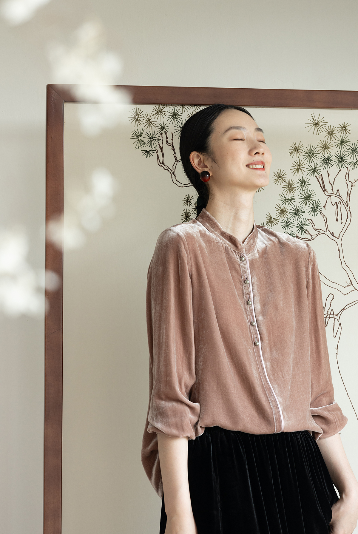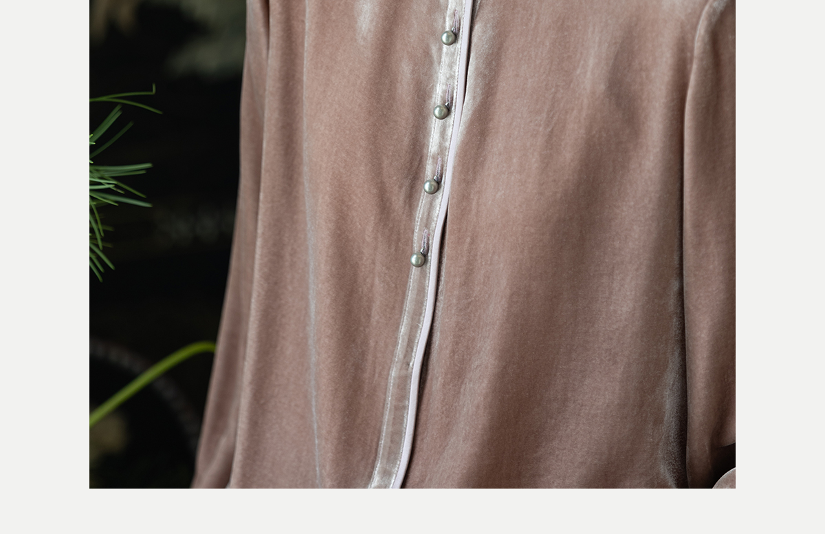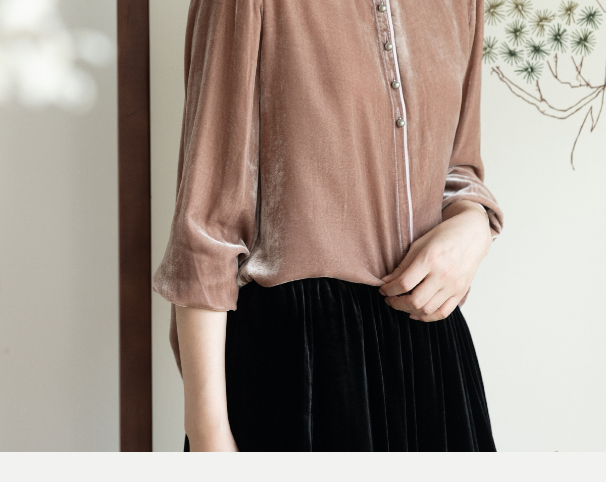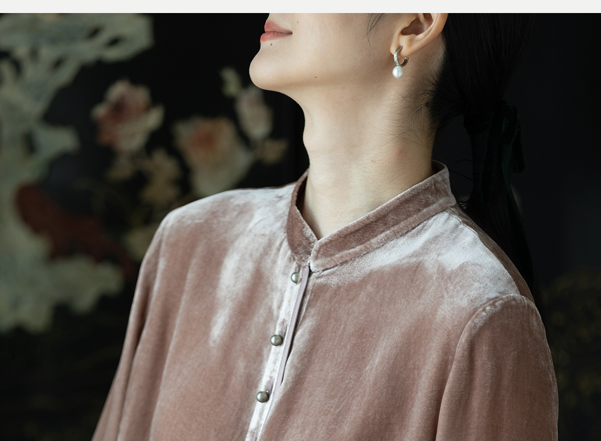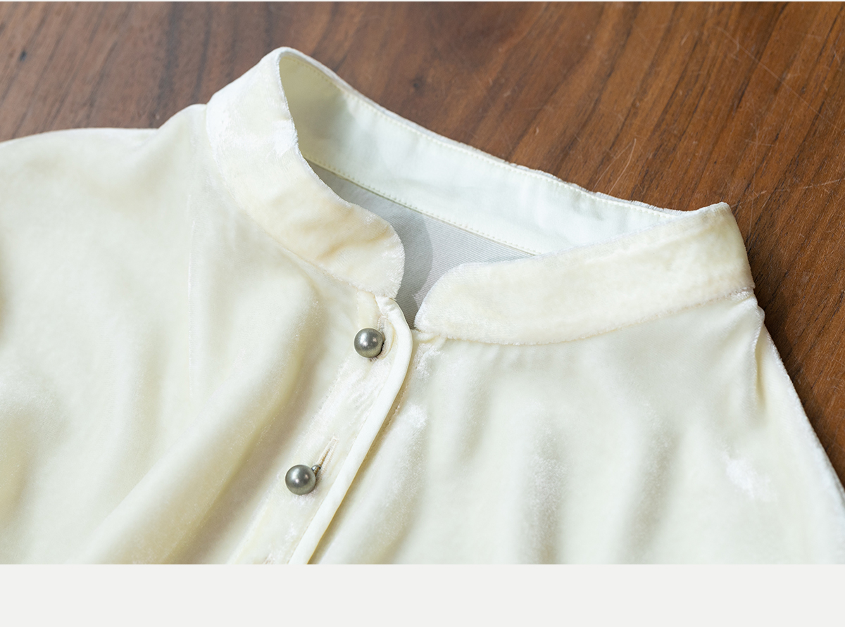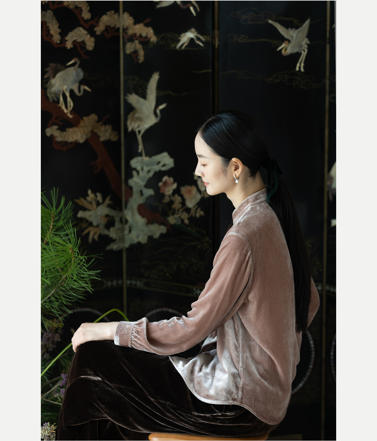 牧衣游原创 丝绒净色衬衫女秋季新款光泽感气质宽松百搭开衫 喜番