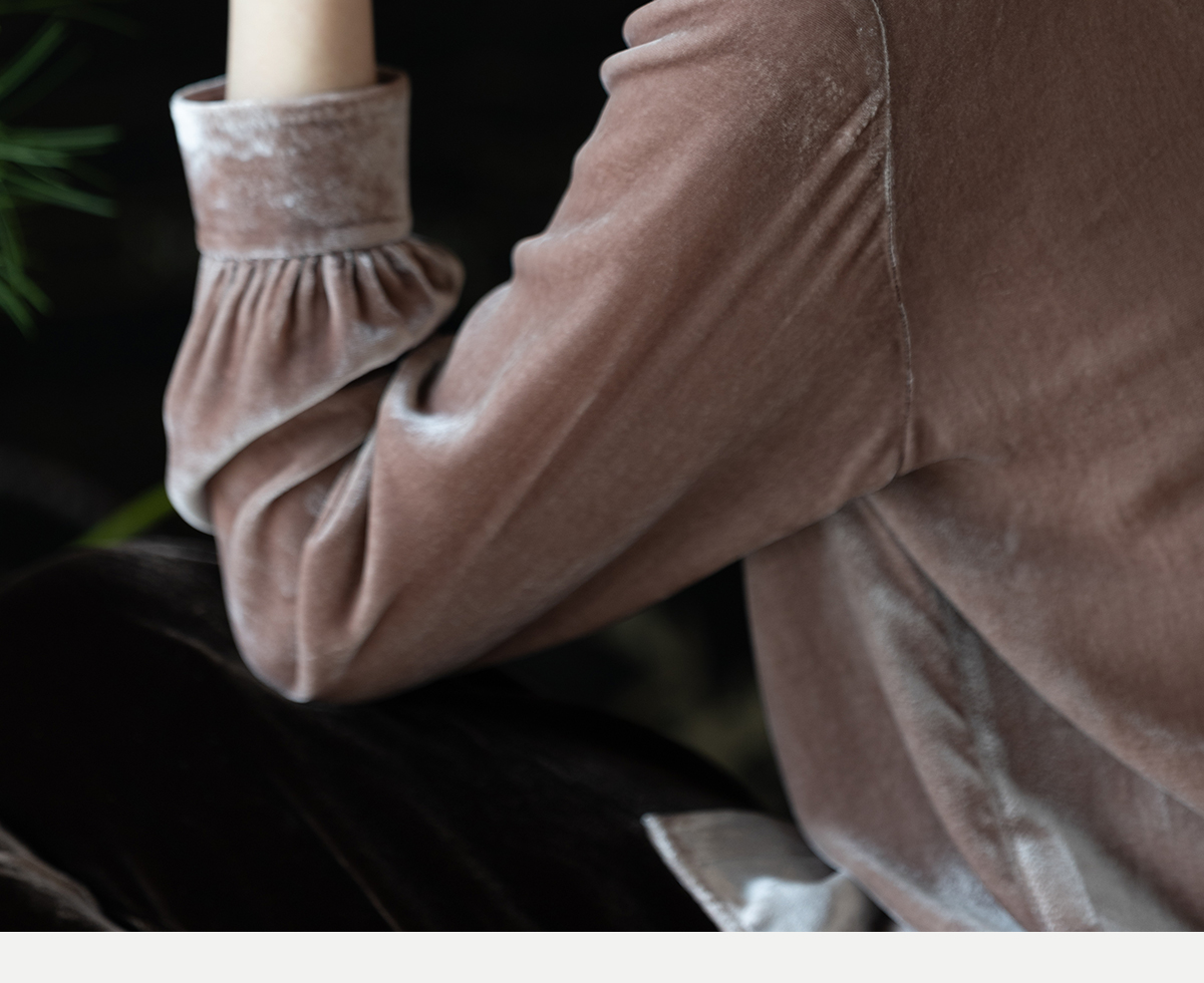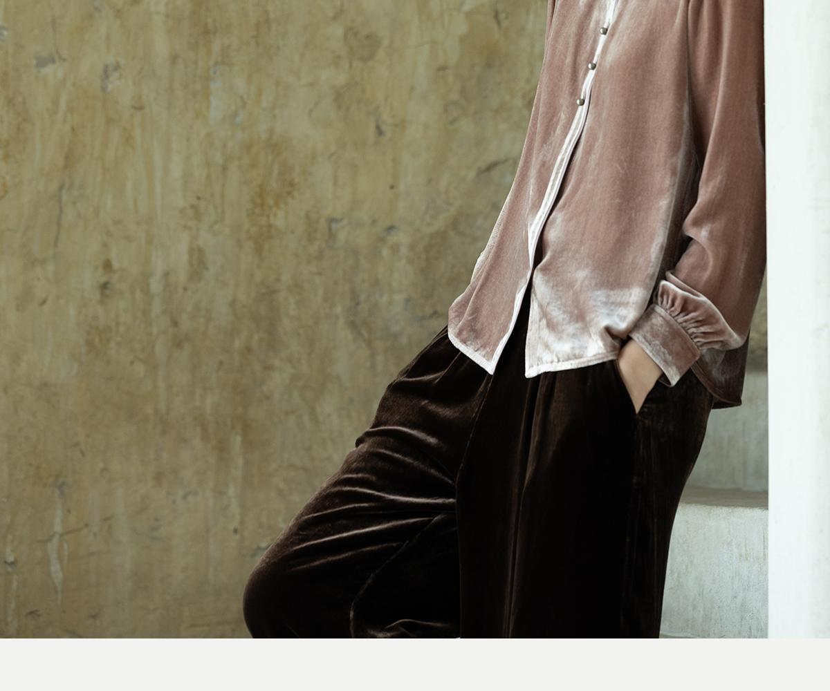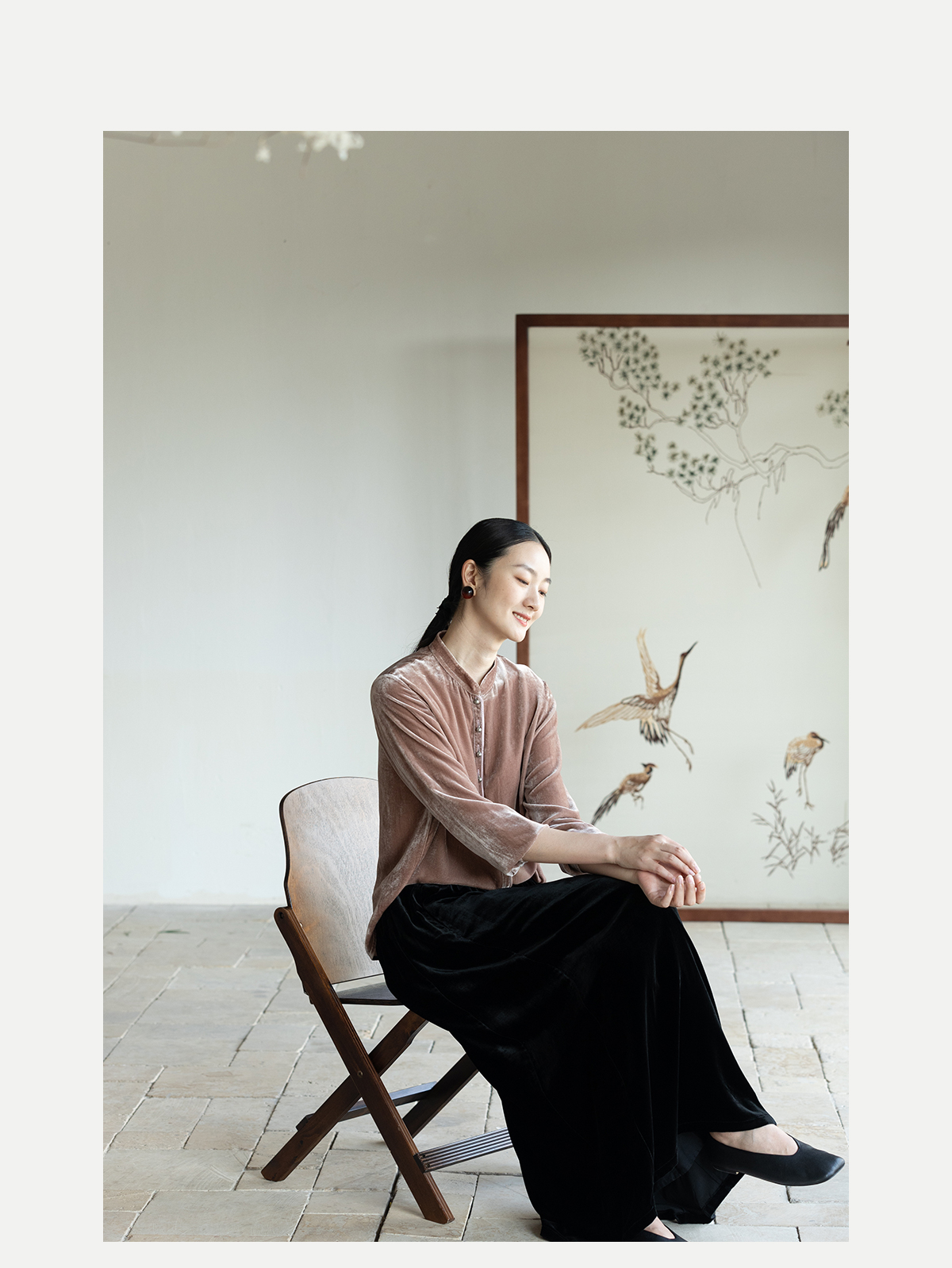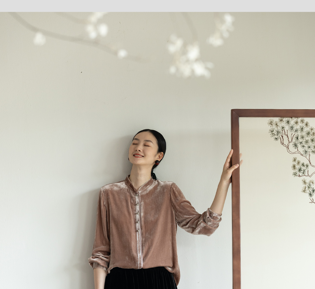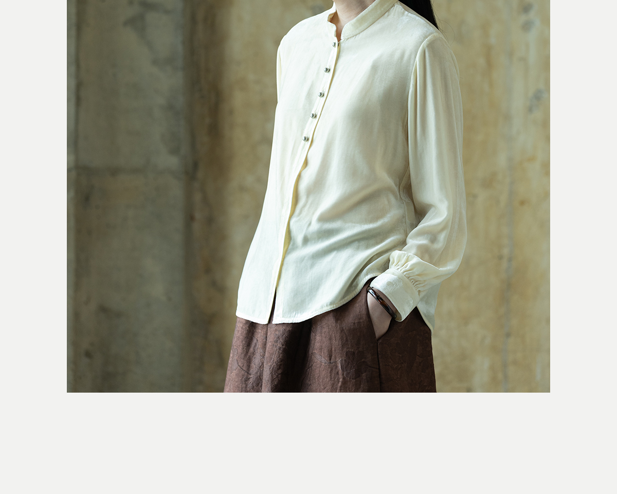 牧衣游原创 丝绒净色衬衫女秋季新款光泽感气质宽松百搭开衫 喜番
