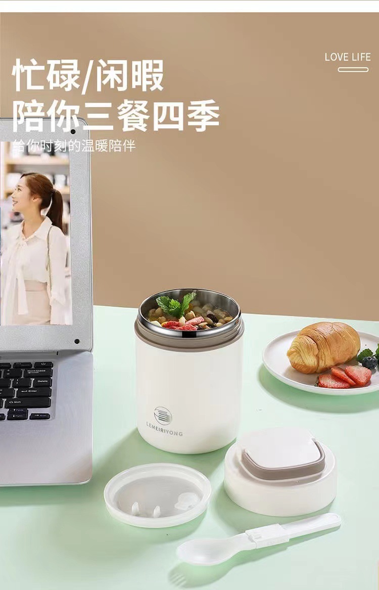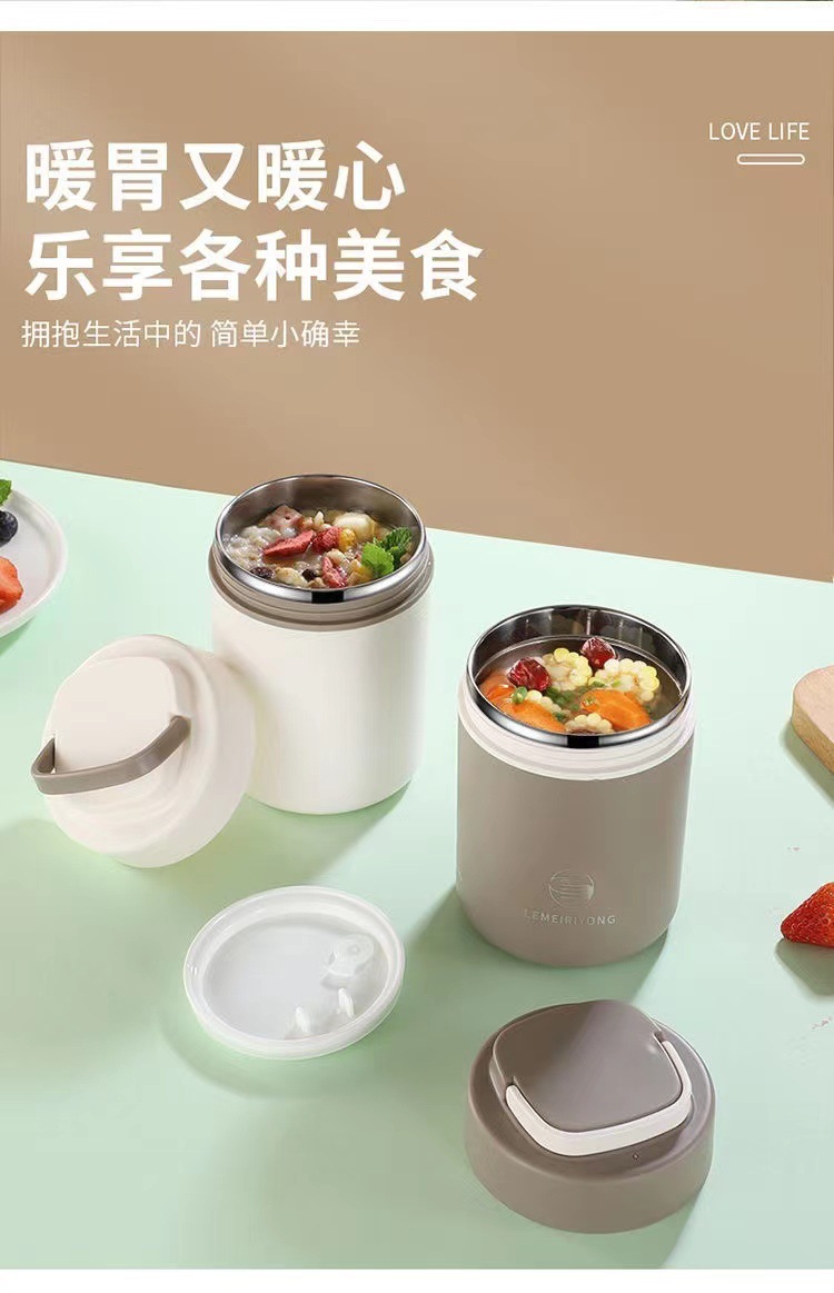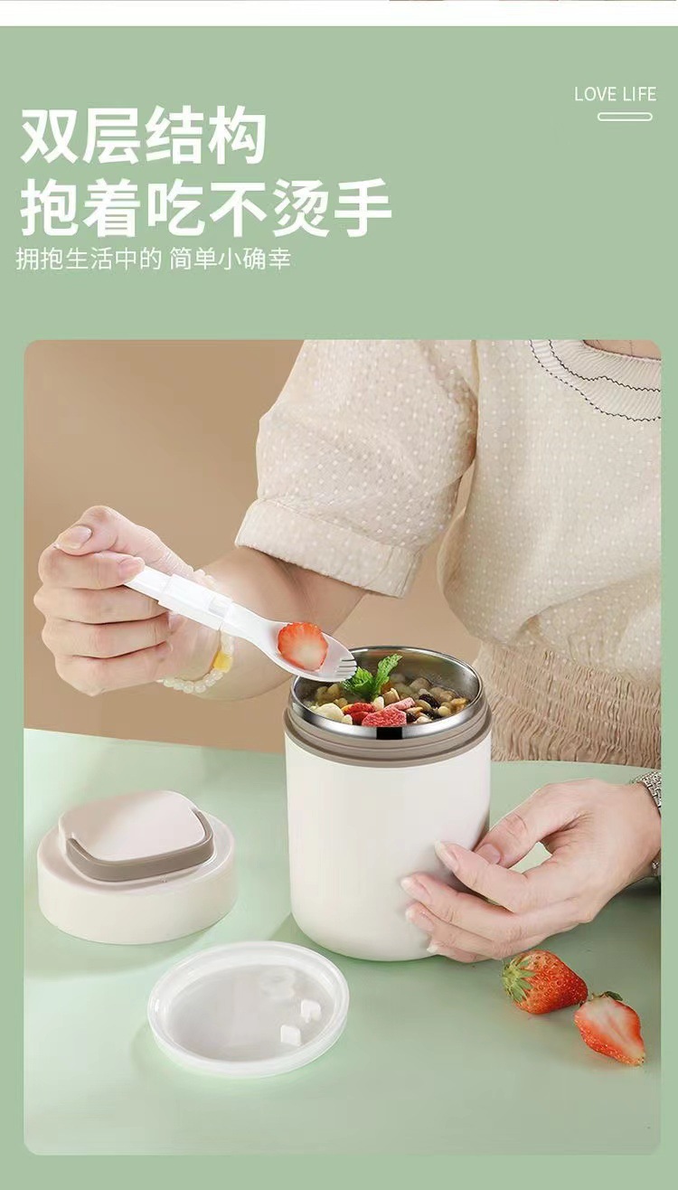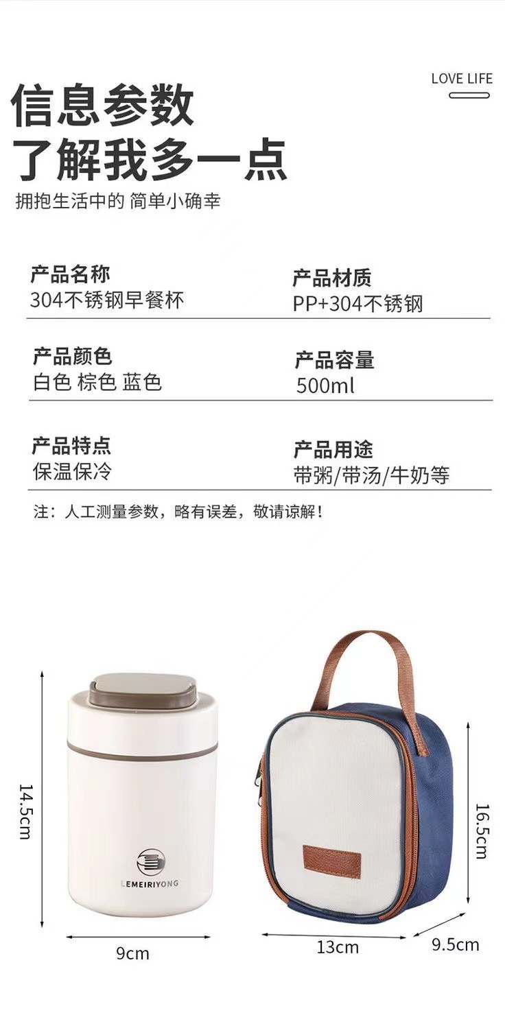 【早餐杯-移动小厨房】304不锈钢早餐杯汤杯礼品 带盖勺便携燕麦杯密封牛奶杯豆浆杯汤罐。ry