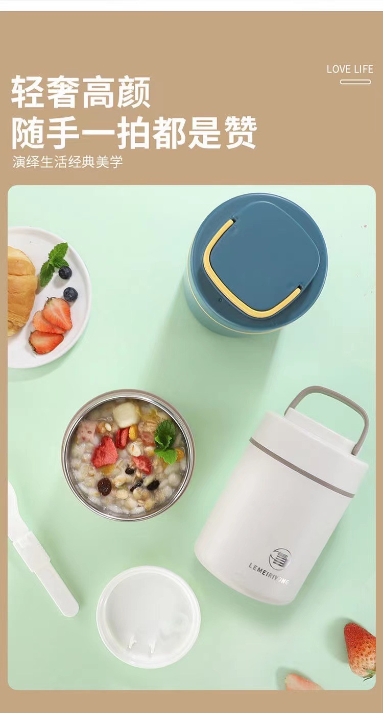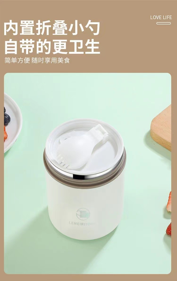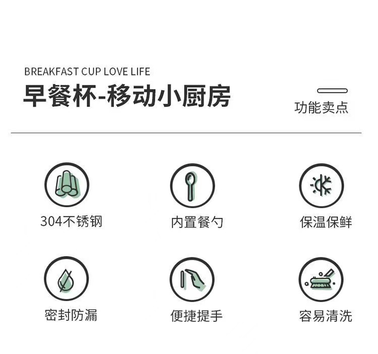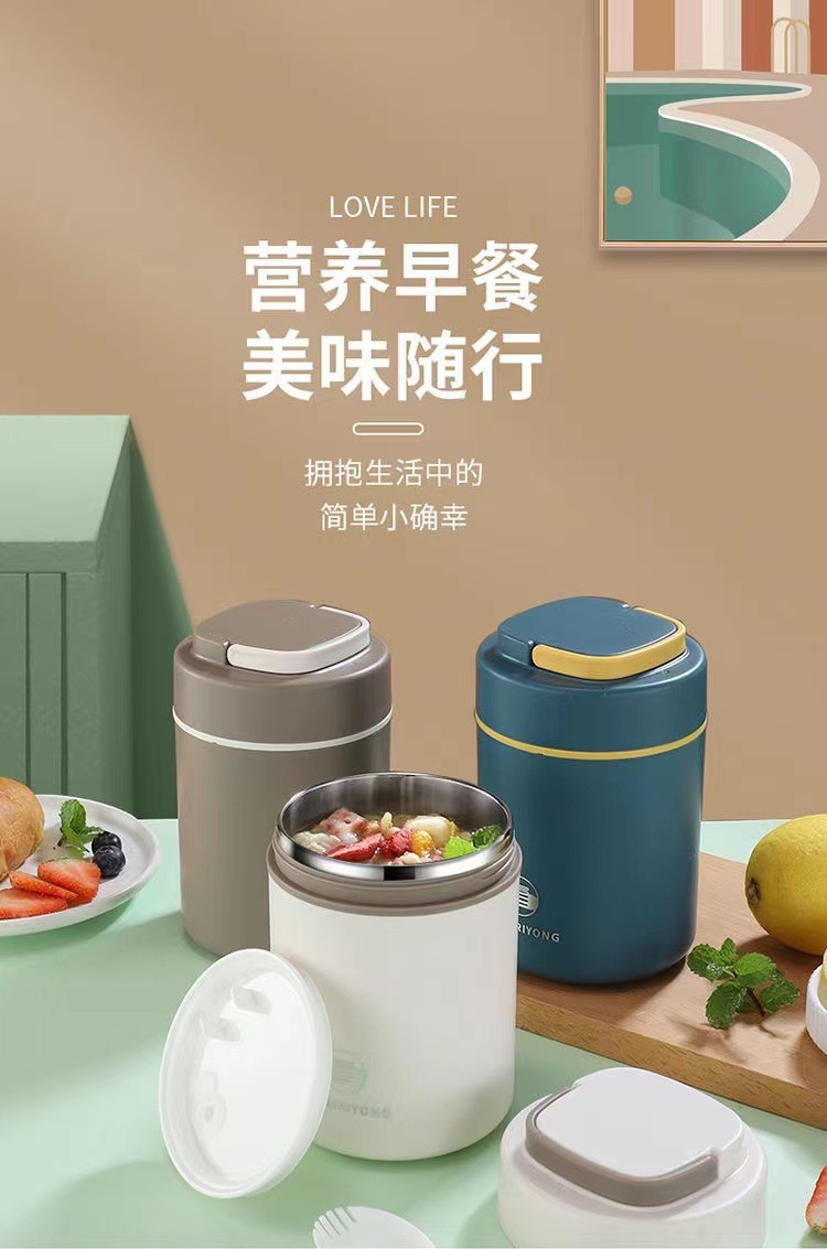 【早餐杯-移动小厨房】304不锈钢早餐杯汤杯礼品 带盖勺便携燕麦杯密封牛奶杯豆浆杯汤罐。ry