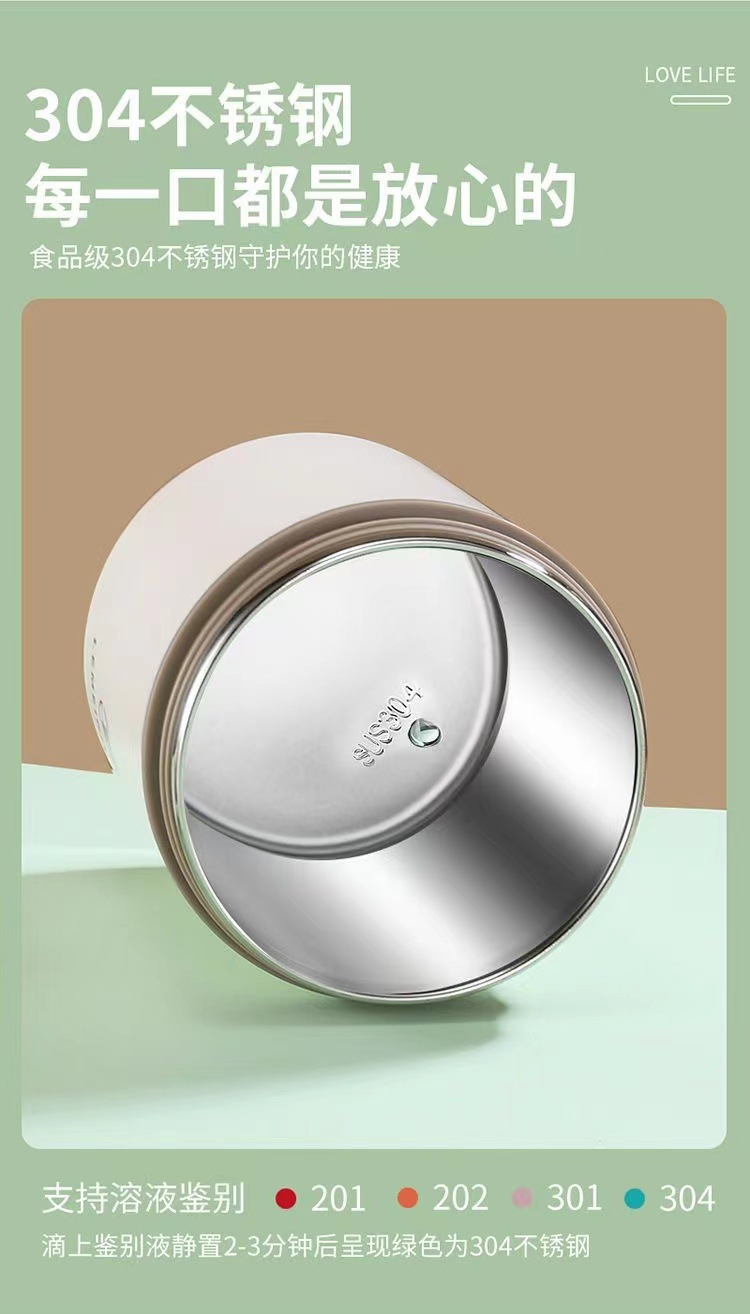 304不锈钢早餐杯汤杯礼品 带盖勺便携燕麦杯密封牛奶杯豆浆杯汤罐
