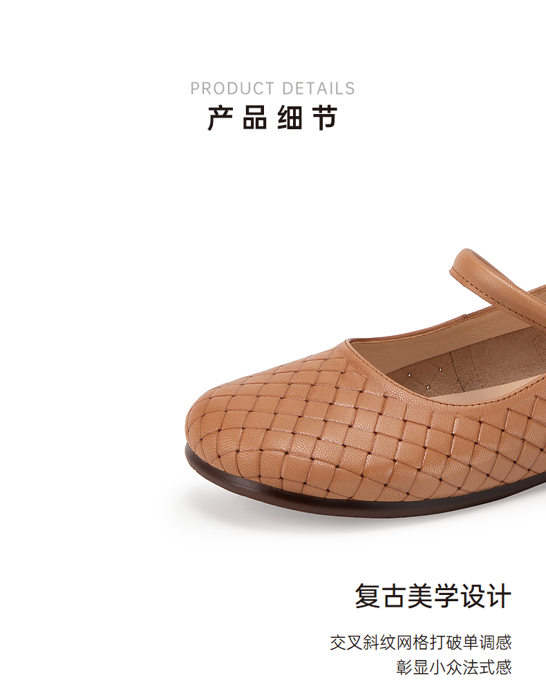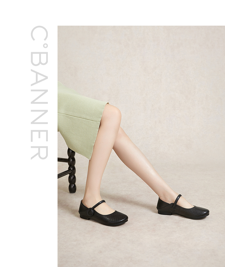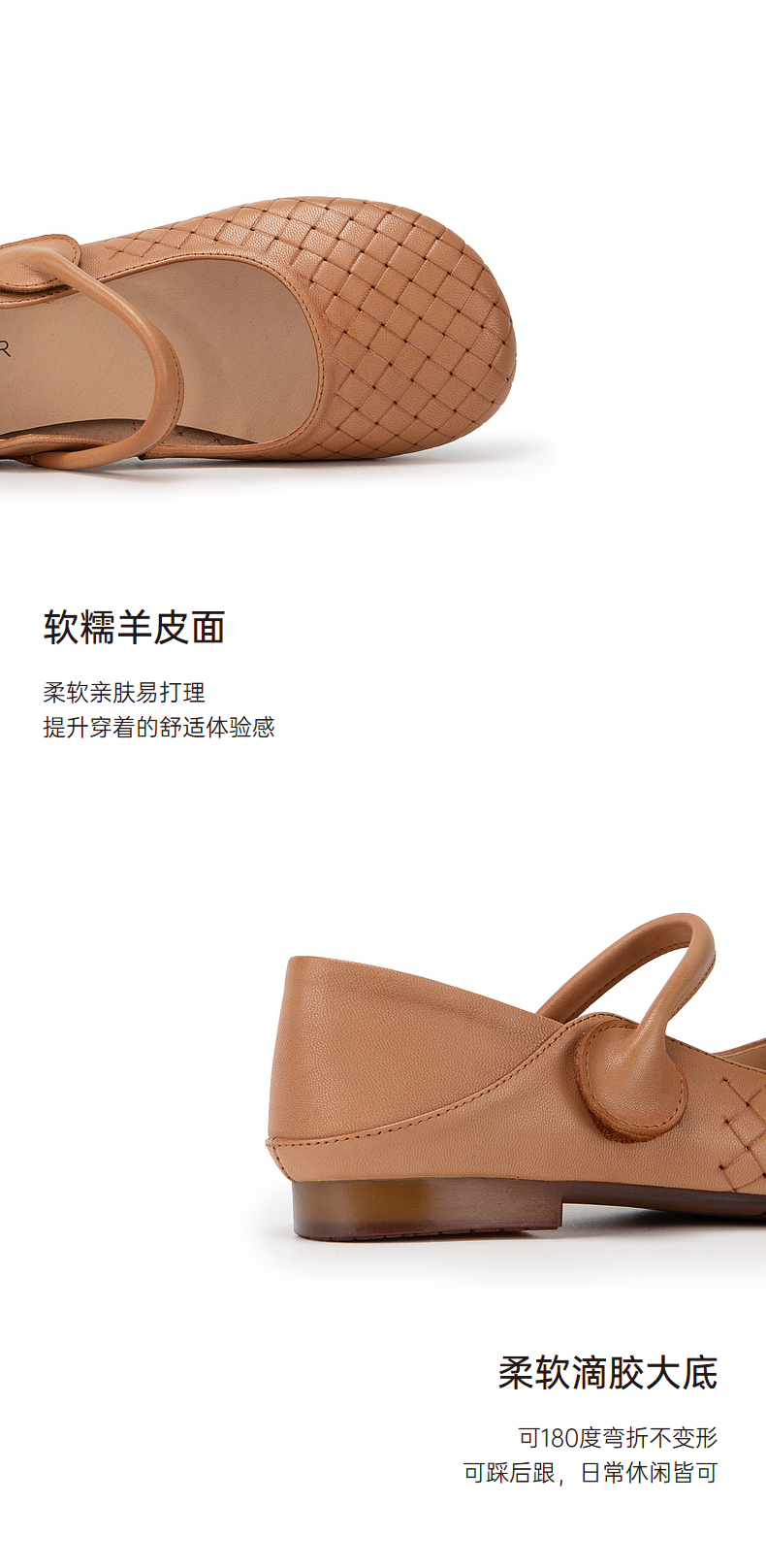 千百度羊皮面玛丽珍鞋春季平底鞋小香风单鞋女休闲两穿A24100950