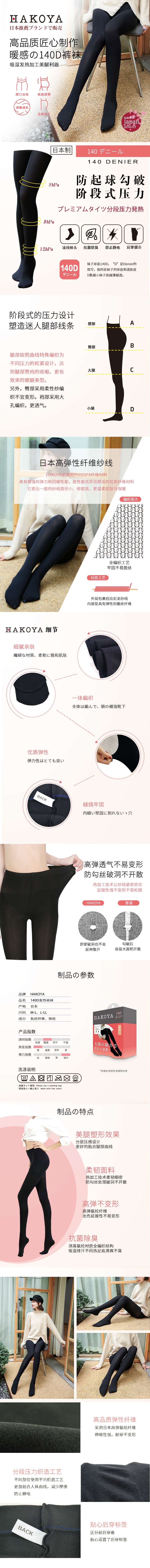 日本 HAKOYA 140D 发热裤袜 压力发热保暖毛绒袜子加厚打底裤