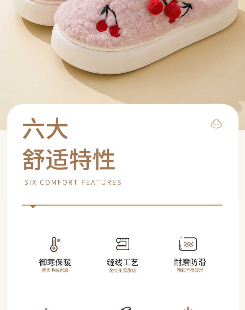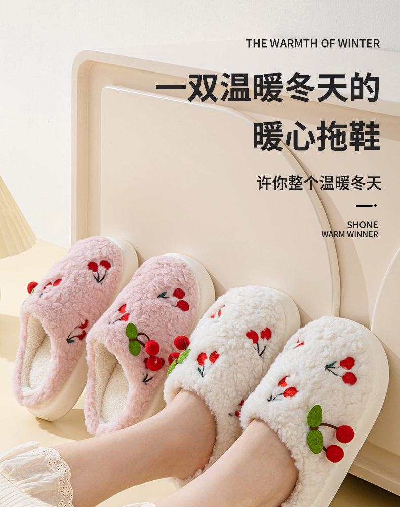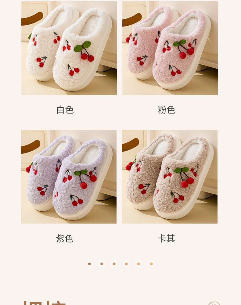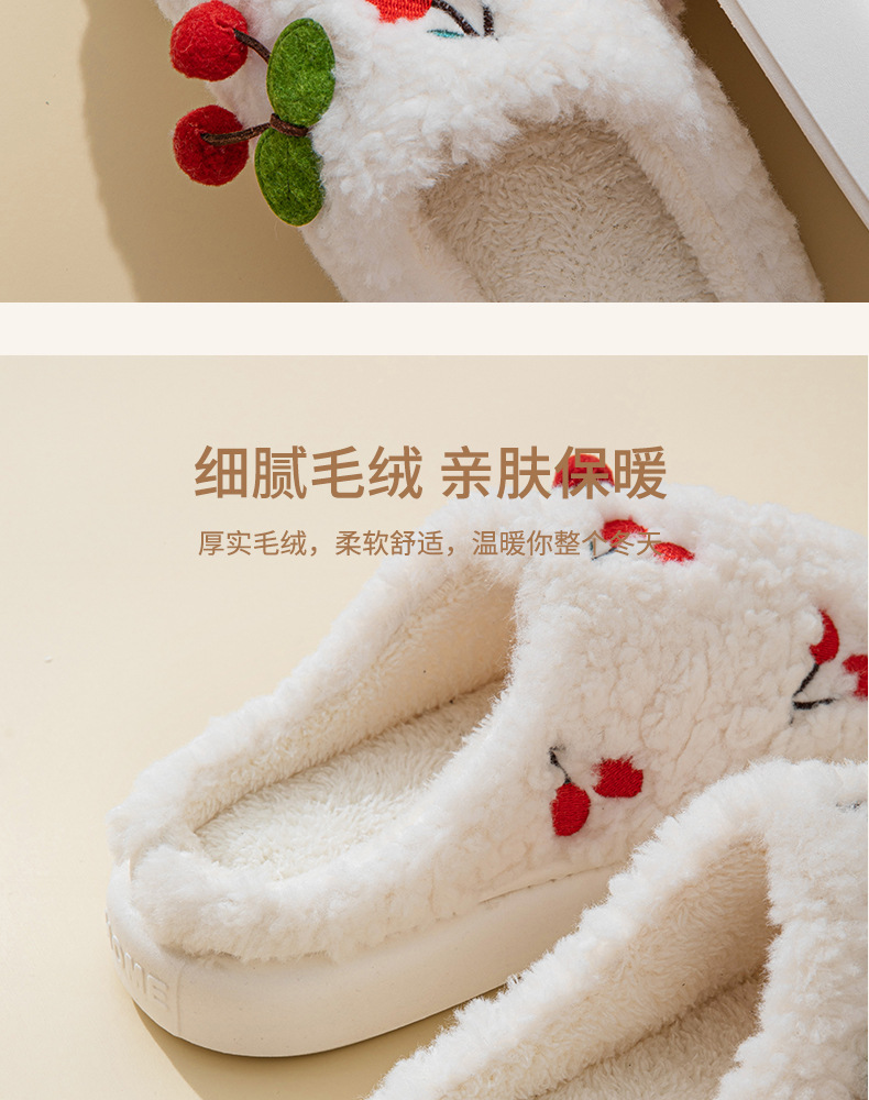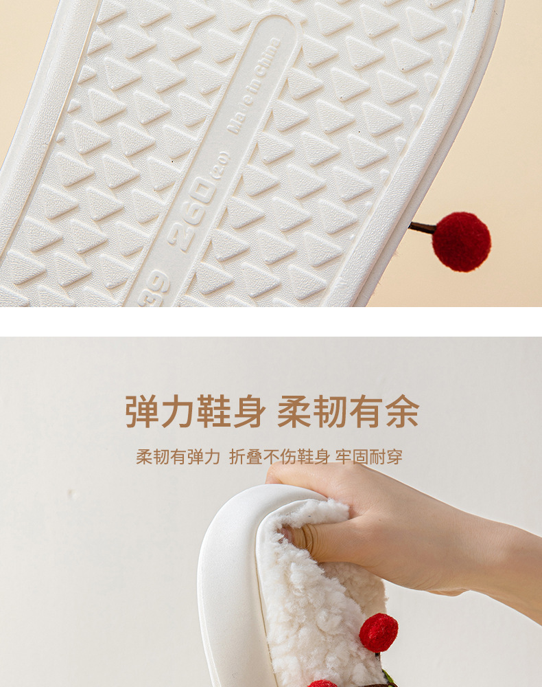 新品【樱桃棉拖鞋女 超暖和!】秋冬季加绒超厚,保暖居家用棉拖,学生踩屎感棉拖鞋,亲肤细腻,柔软轻盈,防滑舒适, PVC舒适材质,180°扭曲,回弹舒适,软而不塌!