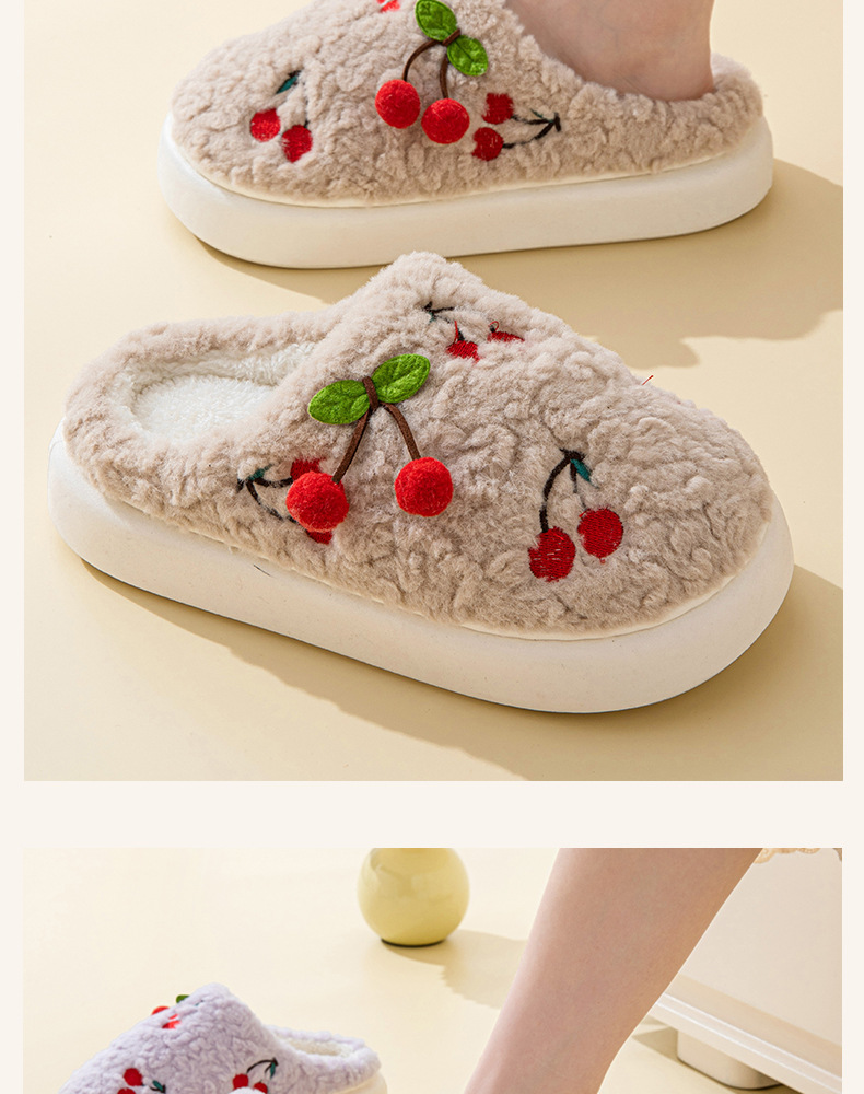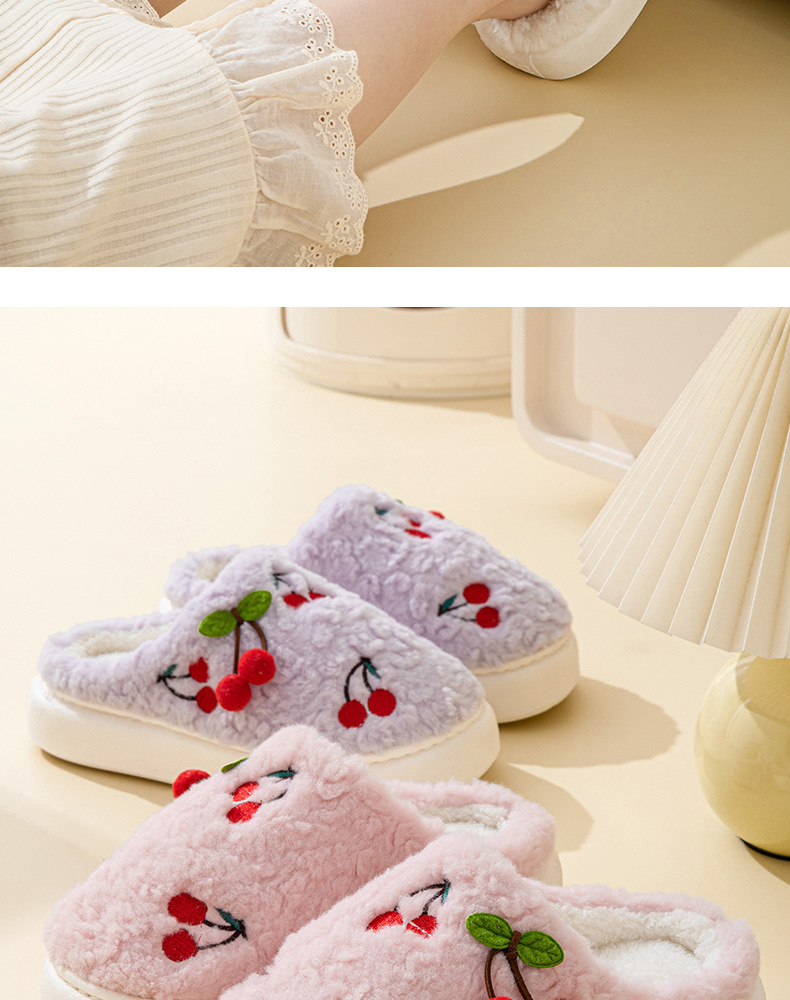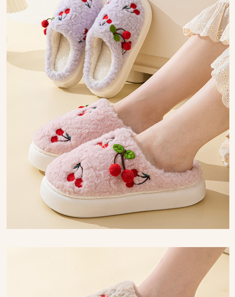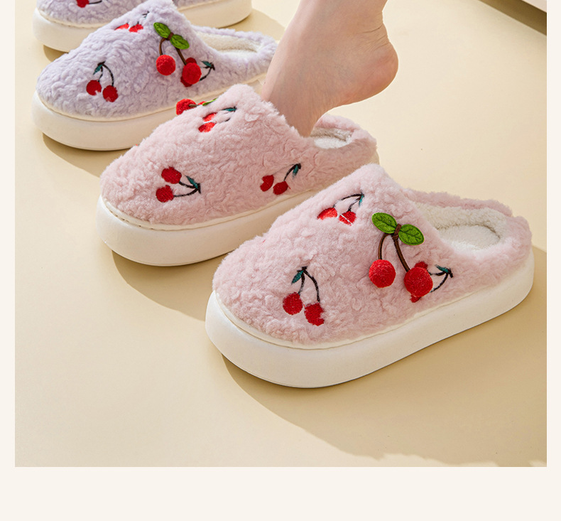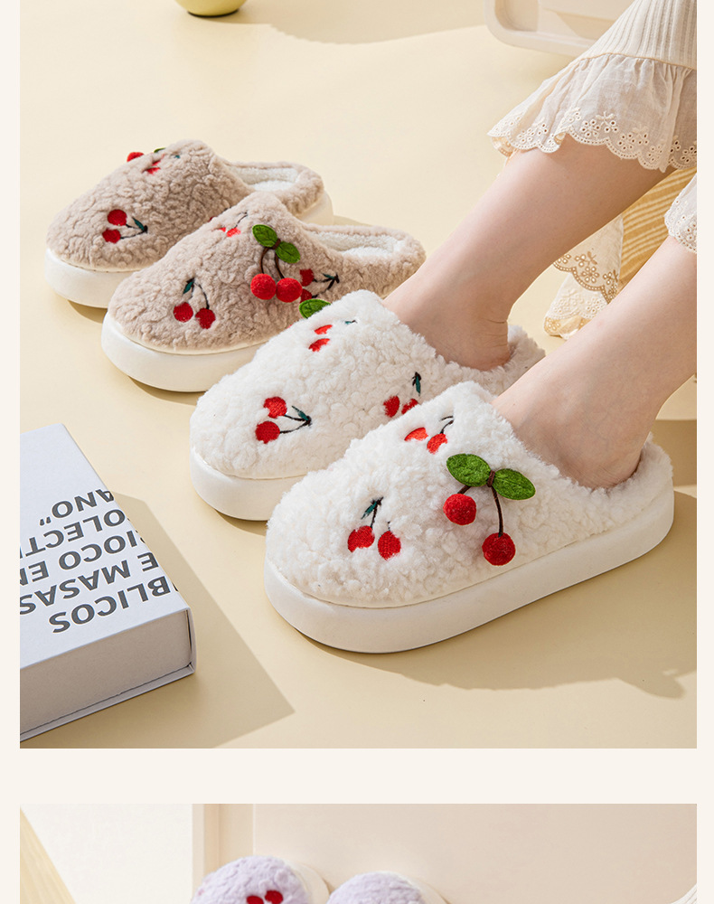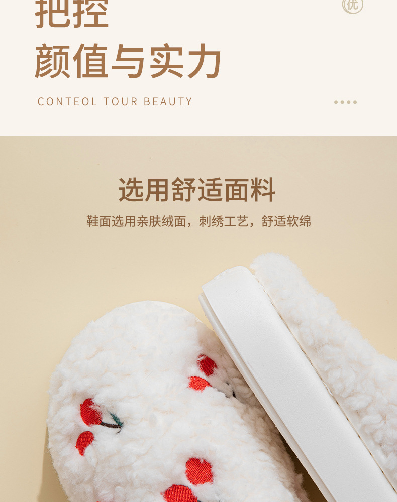 新品【樱桃棉拖鞋女 超暖和!】秋冬季加绒超厚,保暖居家用棉拖,学生踩屎感棉拖鞋,亲肤细腻,柔软轻盈,防滑舒适, PVC舒适材质,180°扭曲,回弹舒适,软而不塌!