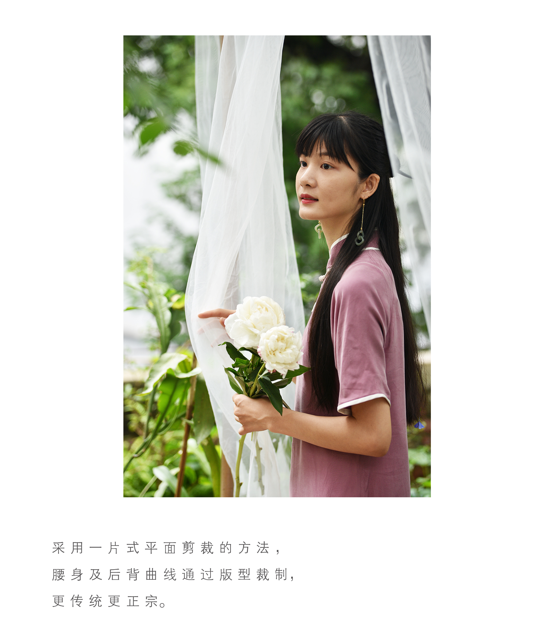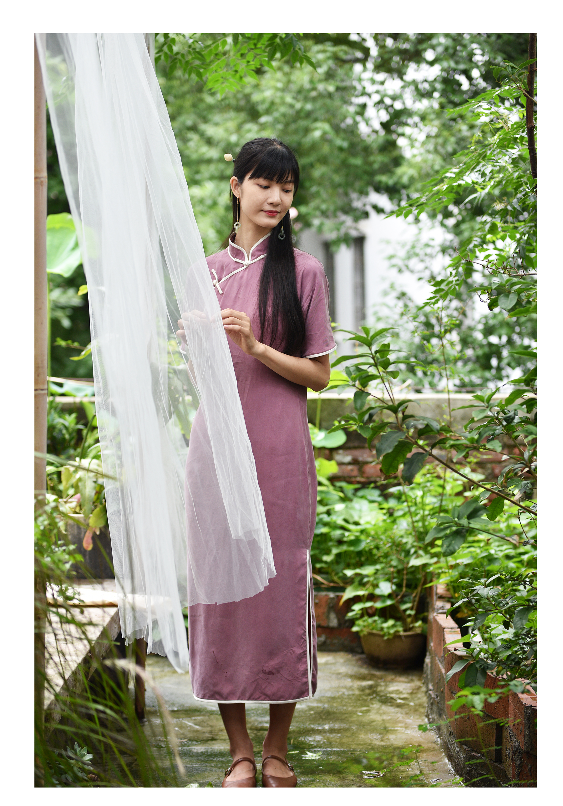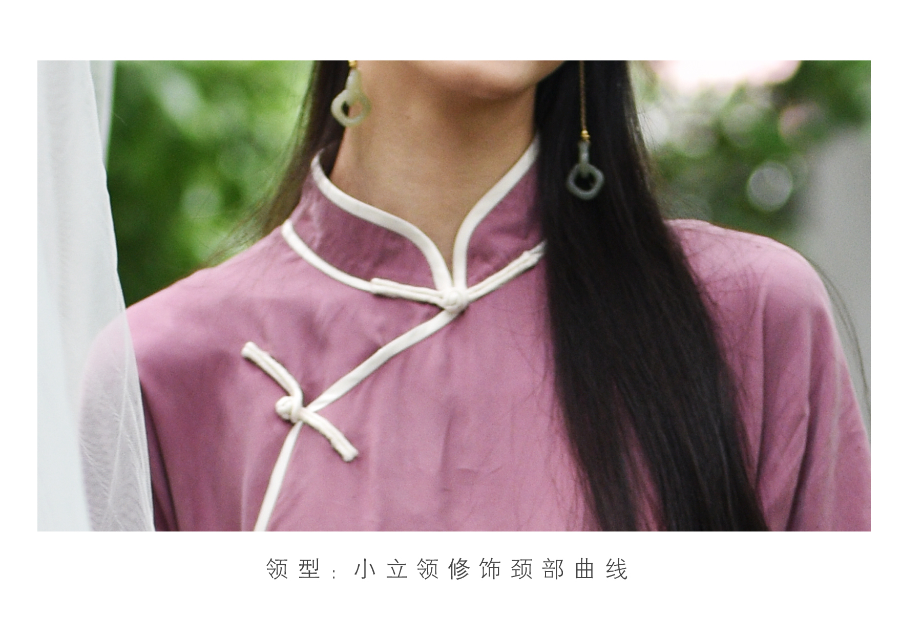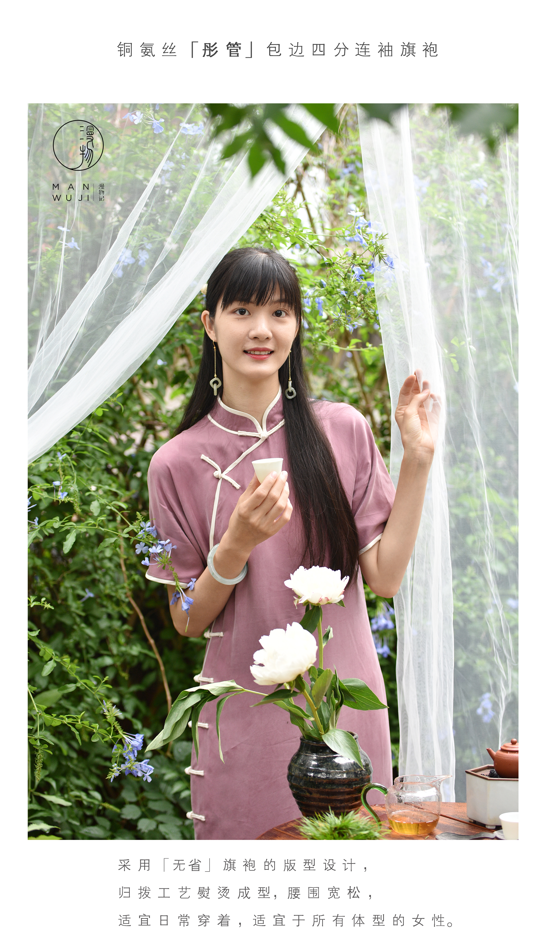 【漫物记】小满·铜氨丝彤管包边四分连袖旗袍