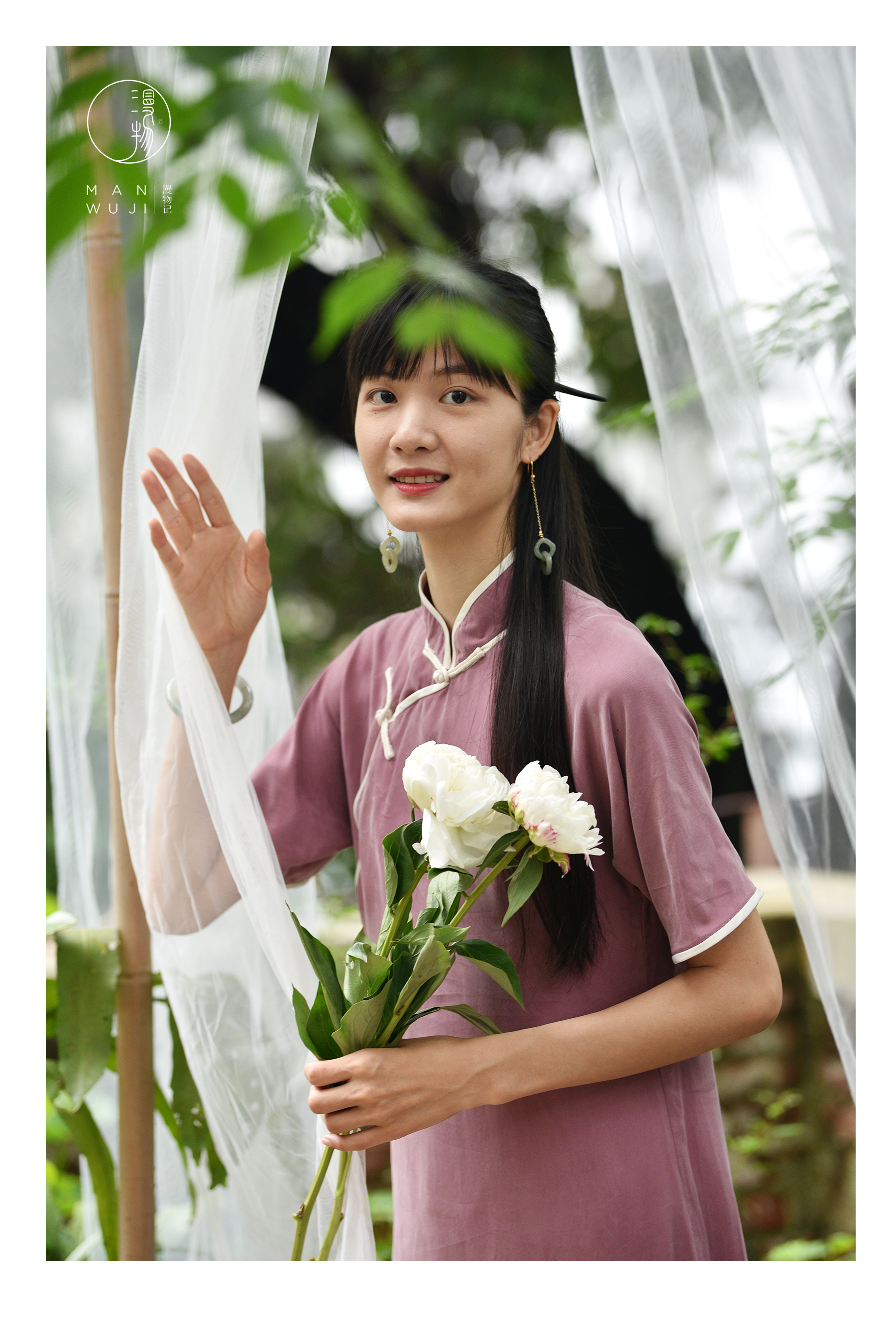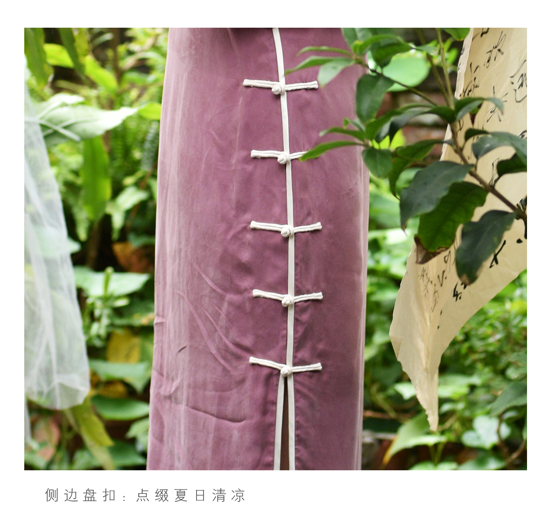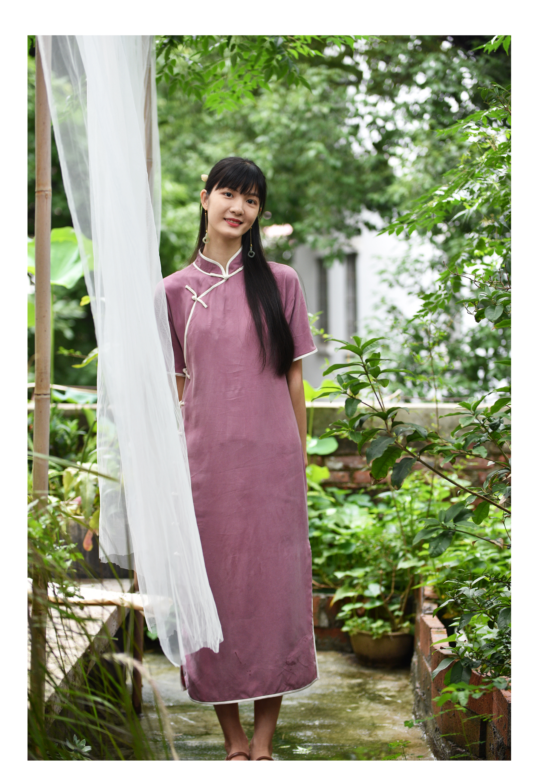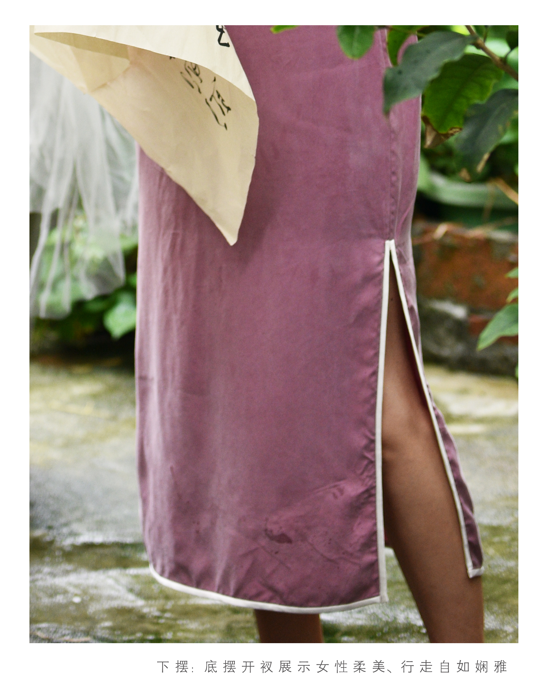【漫物记】小满·铜氨丝彤管包边四分连袖旗袍