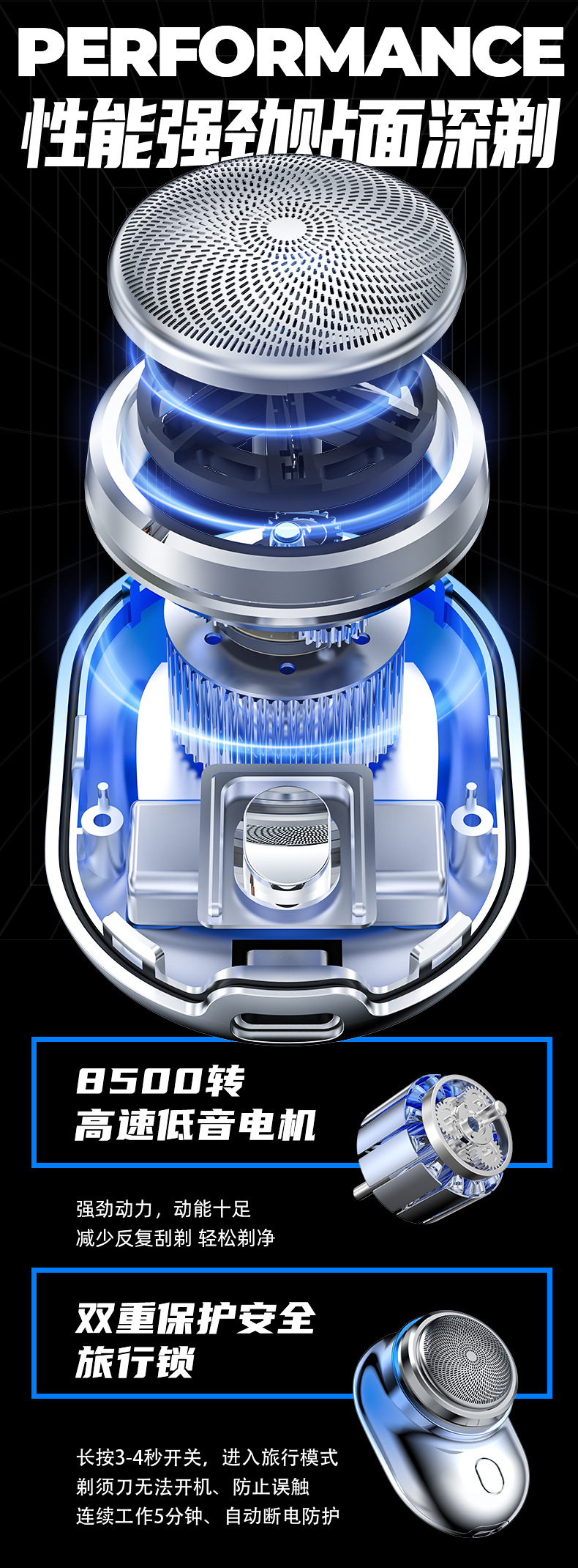 「山姆平替!迷你元石剃须刀」IPX级防水电动男士剃须刀 居家日用迷你数显便携刮胡须刀礼品