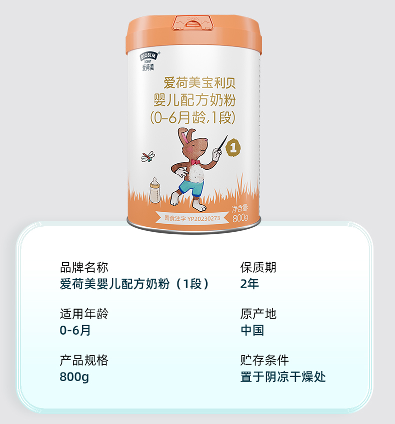 Ekobaby爱荷美宝利贝婴儿配方奶粉800g1段