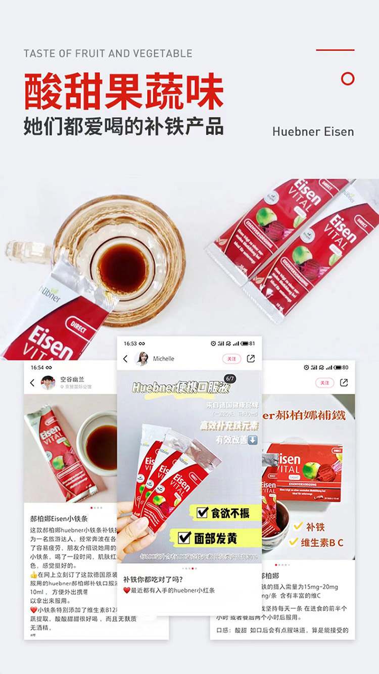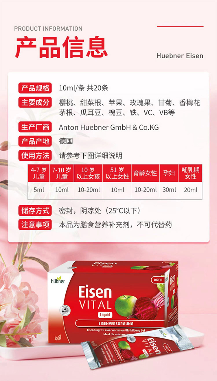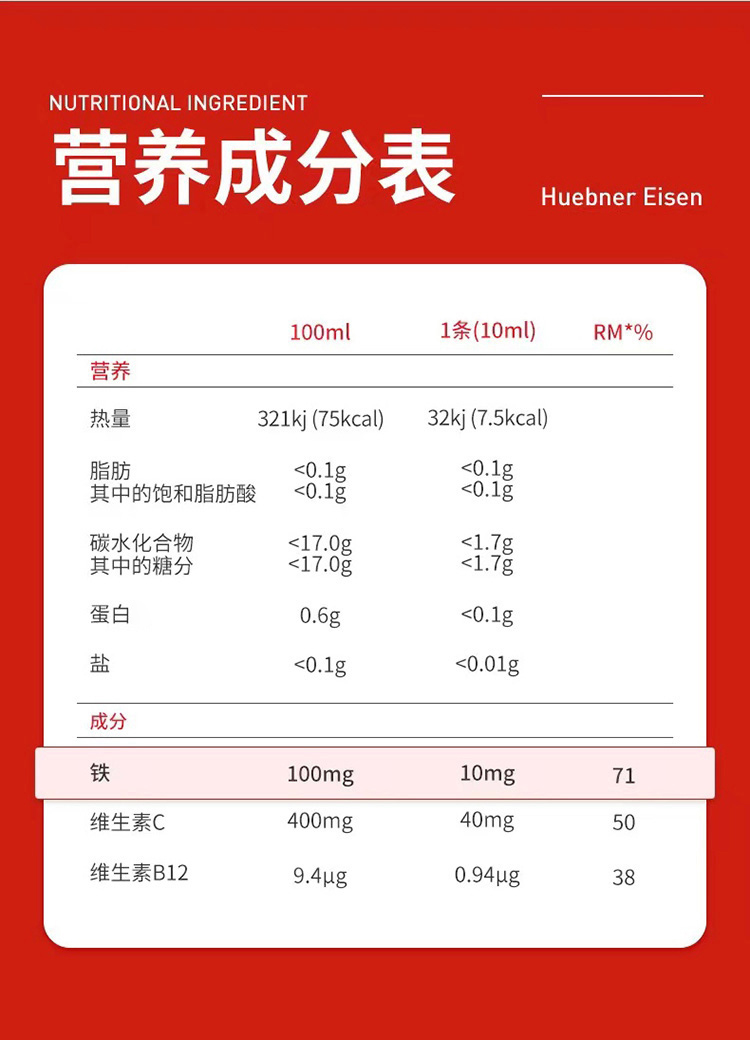 【保税仓】Hubner赫本娜铁元素含维C促进吸收20袋*10ml/盒