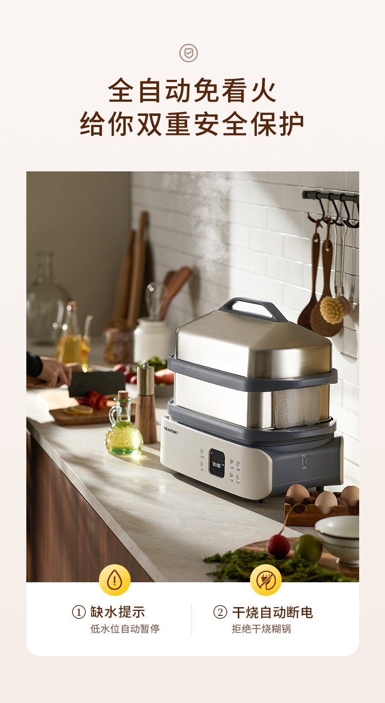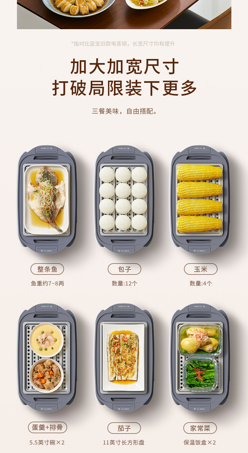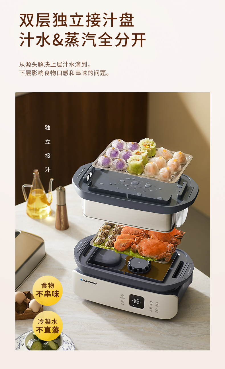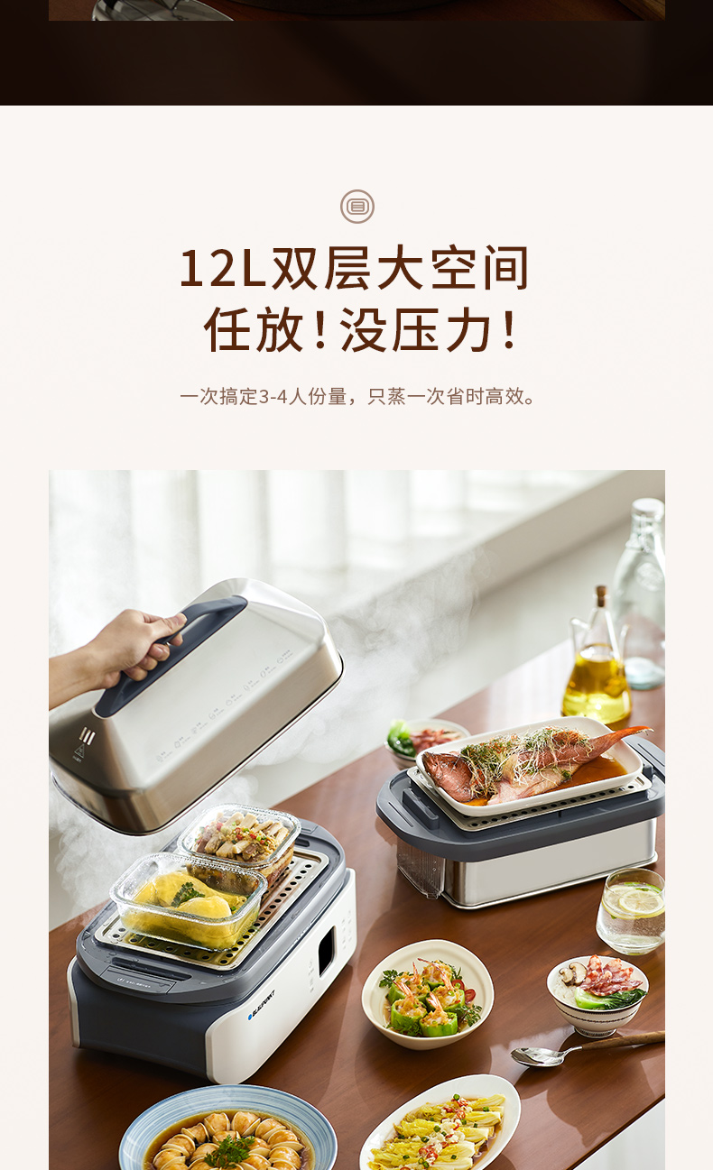 蓝宝分区不锈钢电蒸锅家用新款多功能全自动大容量蒸锅BP-ZG06