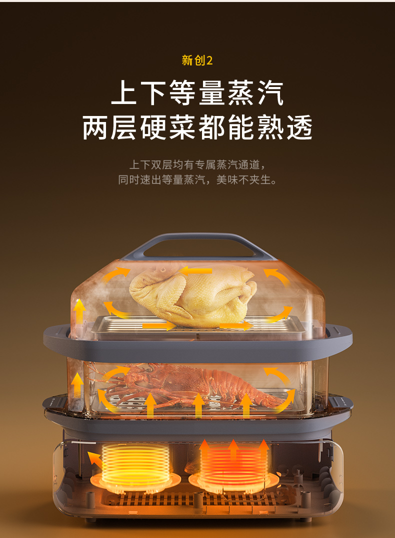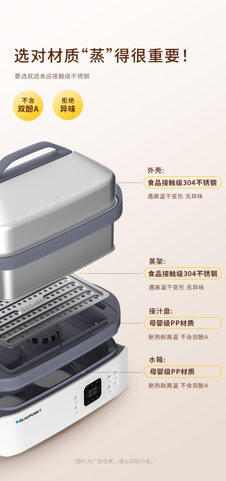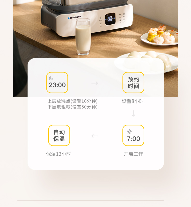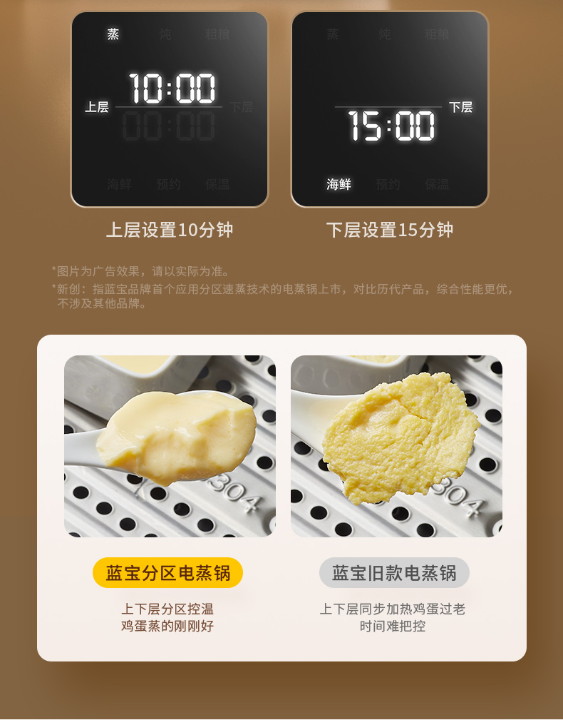 蓝宝分区不锈钢电蒸锅家用新款多功能全自动大容量蒸锅BP-ZG06