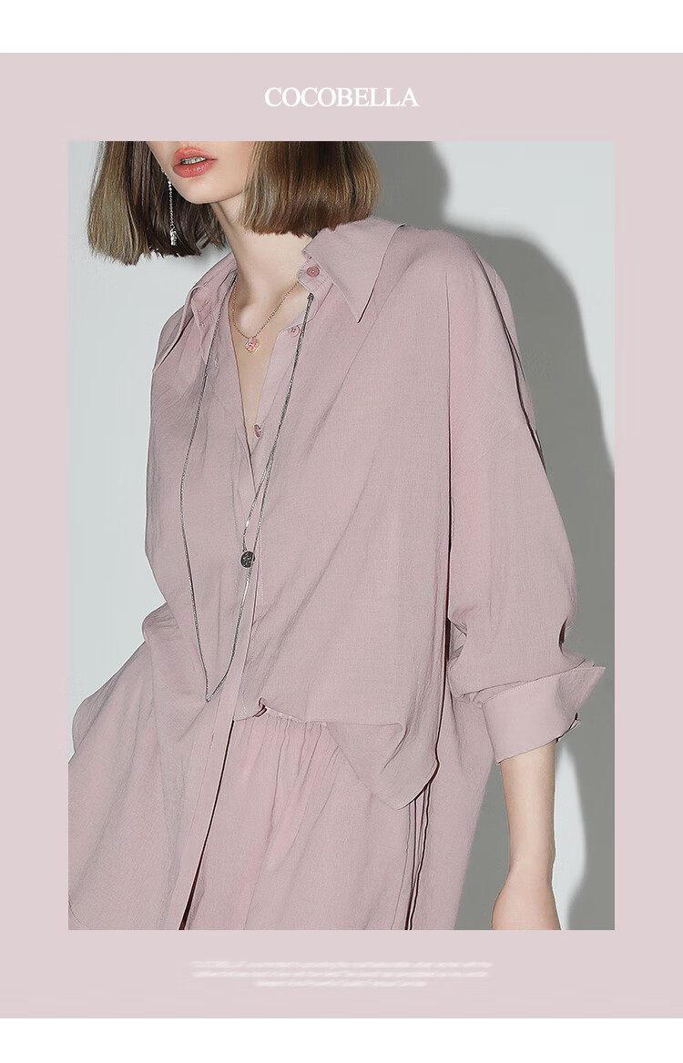 【秒杀】COCOBELLA松弛感穿搭轻薄遮阳衬衫女宽松休闲气质衬衣SR3025B