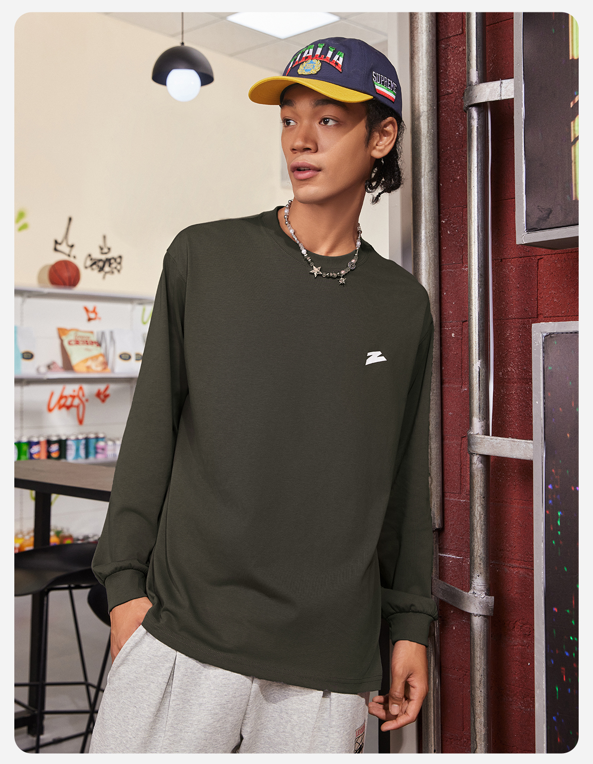 有志者UZIS 运动长袖男秋季篮球跑步美式休闲宽松纯色打底T恤纯粹