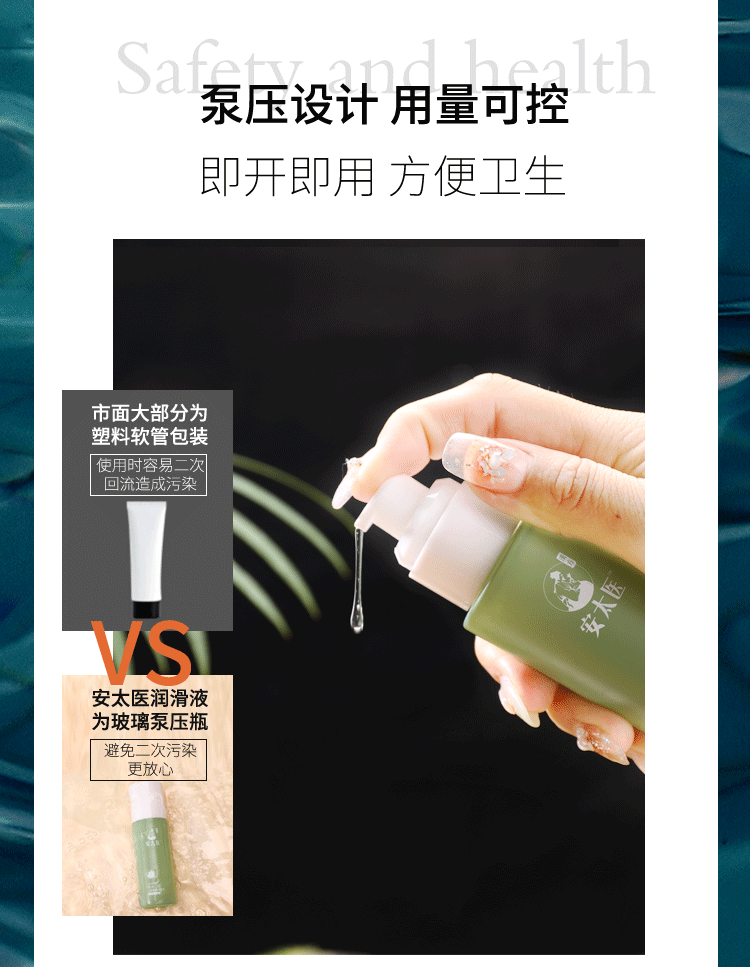 - 安太医是国内知名的中式两性健康品牌。安太医旗下产品有男用延时喷剂、延时湿巾、次抛女性快感液、玻尿酸原液润滑液、阳顶天中式男士养护膏、润滑液系列等,纯中药成分提取,不含麻醉剂,不伤小DD,无酒精无刺激!