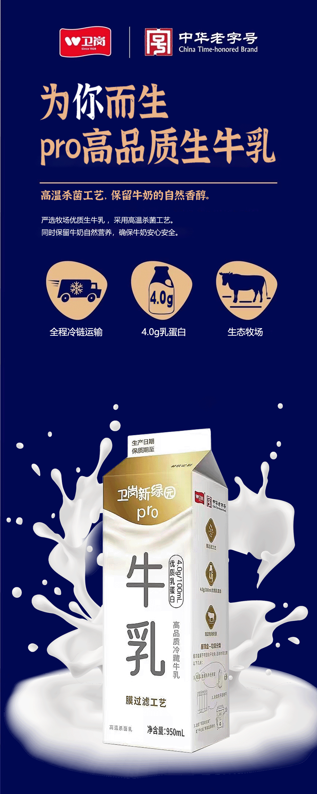 买十送二共十二盒 卫岗 新绿园PRO牛乳 950ml