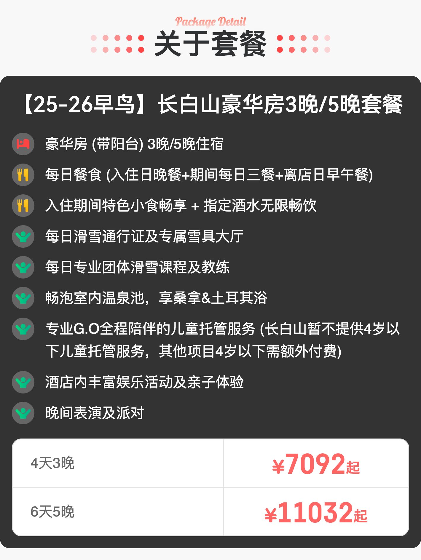 双12大促!【25-26雪季早鸟】3晚/5晚【长白山ClubMed度假村】一价全包!享3000㎡天然温泉,含每日专业滑雪课程、全天吃喝玩乐,更有专业G.O帮你带娃、晚间表演秀及主题派对!