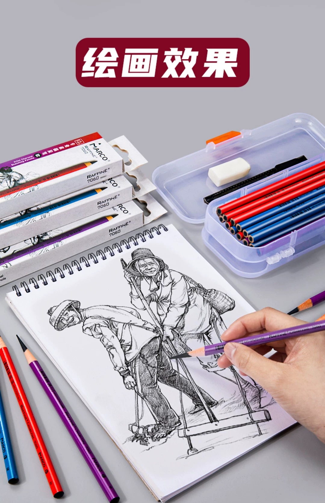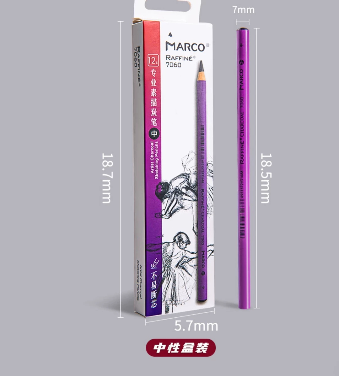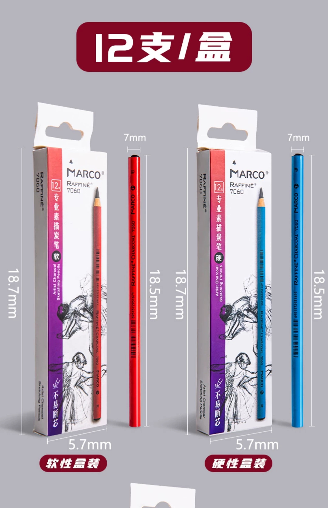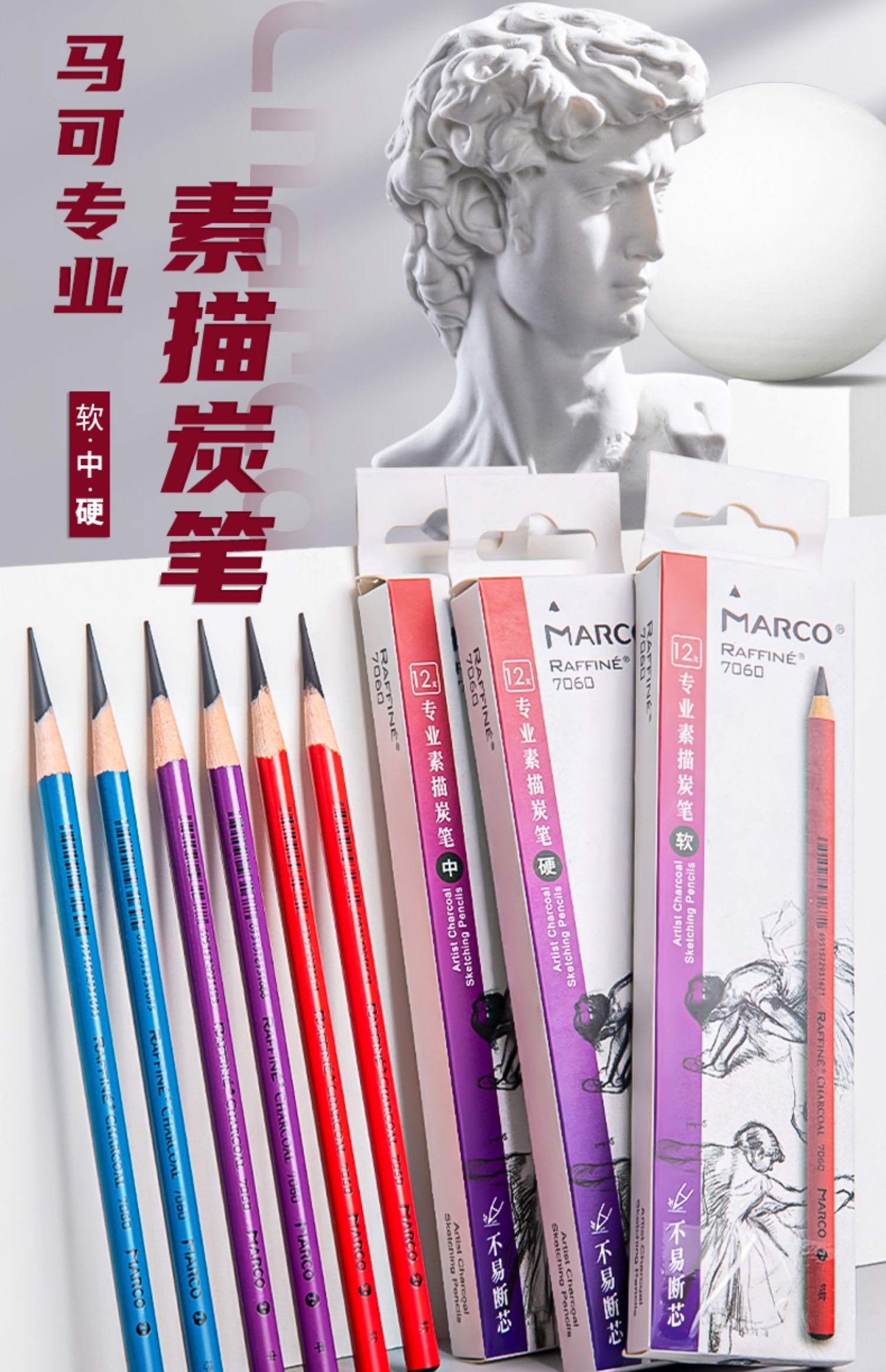Marco马可炭笔软性7060美术生专用素描速写碳画铅笔套装软中硬(规格自选)