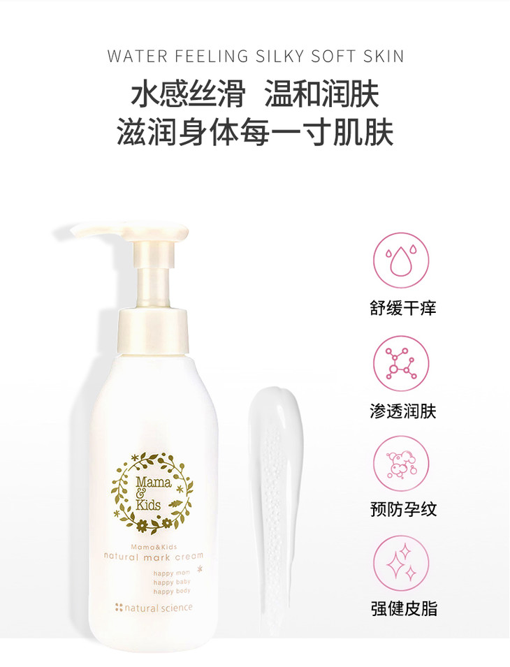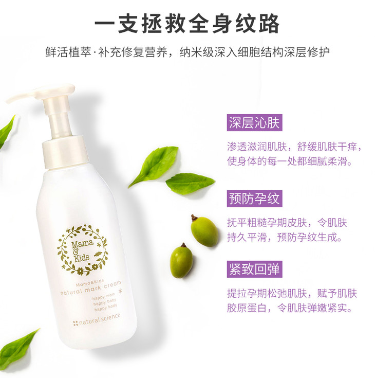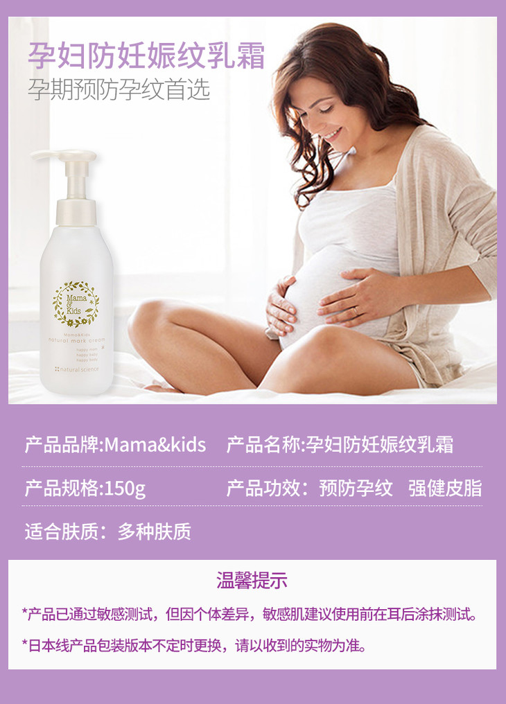 日本Mamakids预防妊娠纹乳霜修复消除肚纹产孕妇身体乳液150g(012000)
