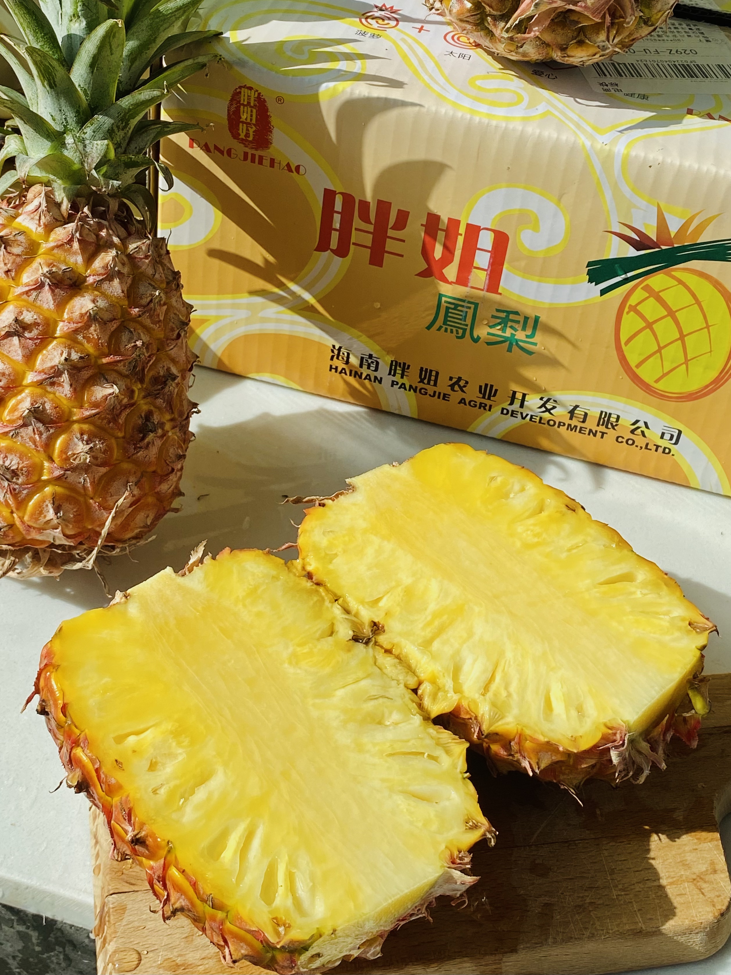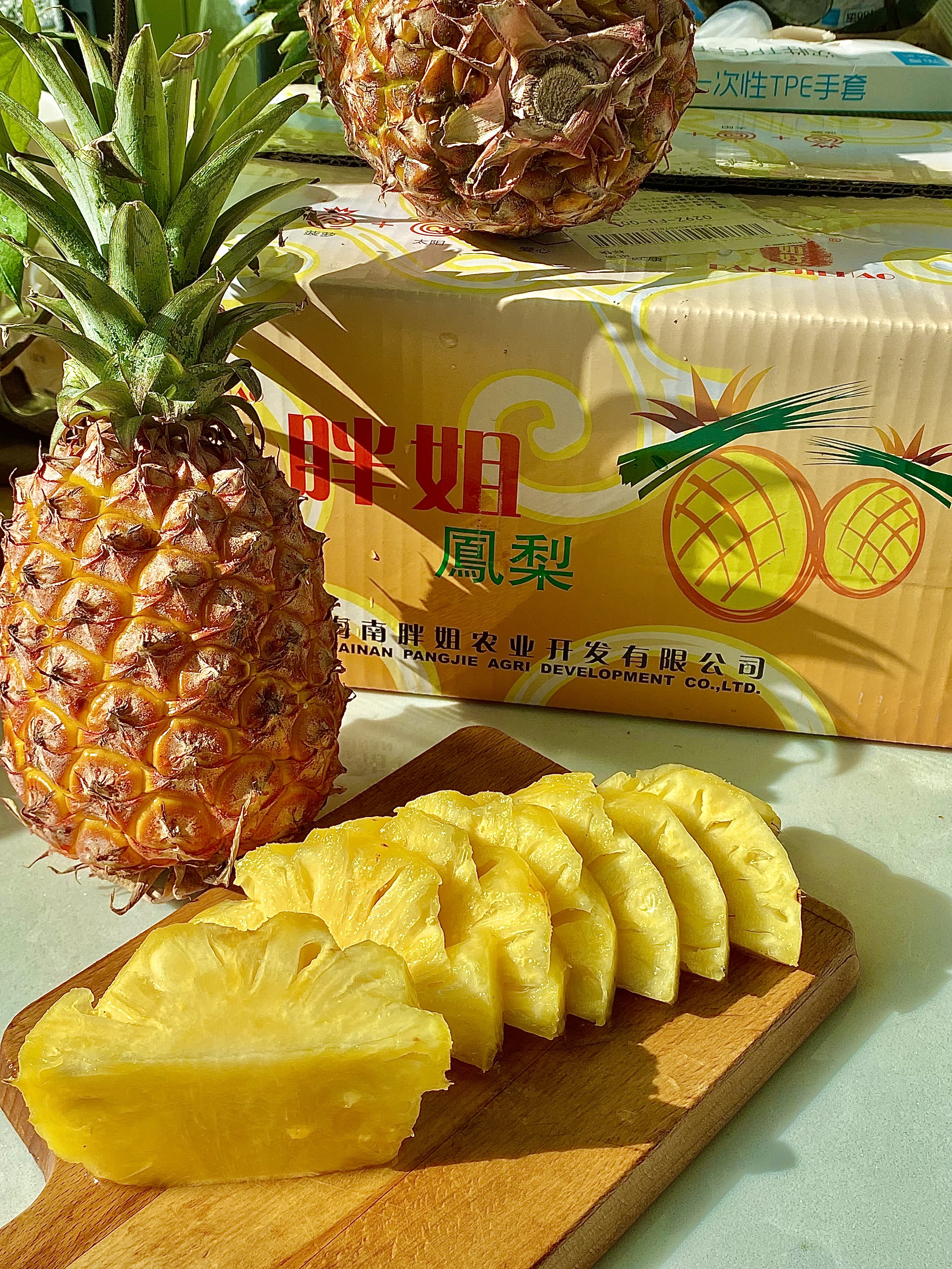 【美味水果丨海南金钻凤梨3个装】香甜中夹杂着一丝酸爽,肉质脆嫩鲜爽,果肉饱满细腻,甜蜜多汁,人工精心筛选后寄出
