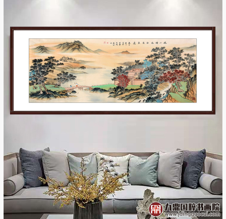 侯志明《依山傍水秋色无边》68*178cm 山水横幅作品 茶室/客厅挂画
