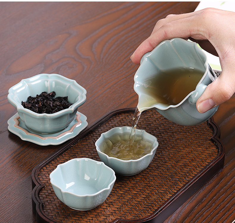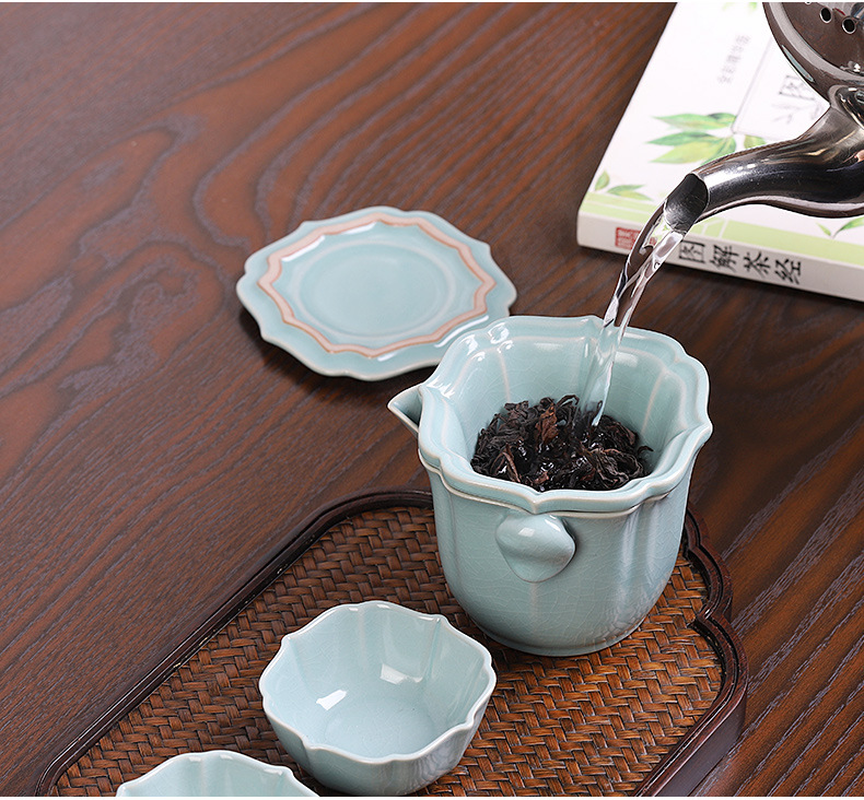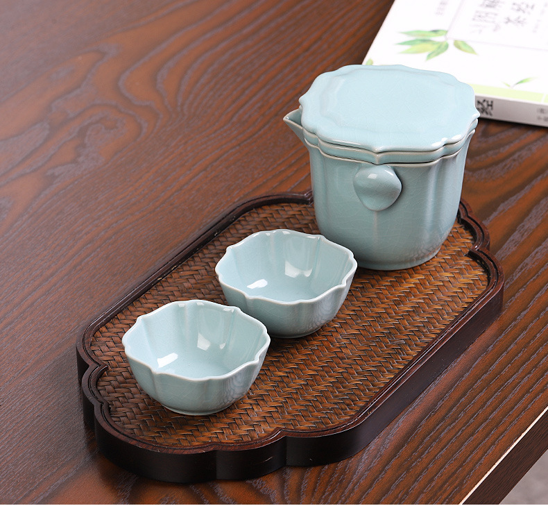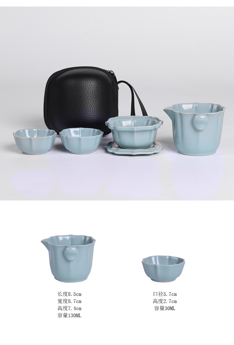 汝窑快客杯一壶两杯二人旅行茶具套装便携包车载户外旅游功夫茶杯