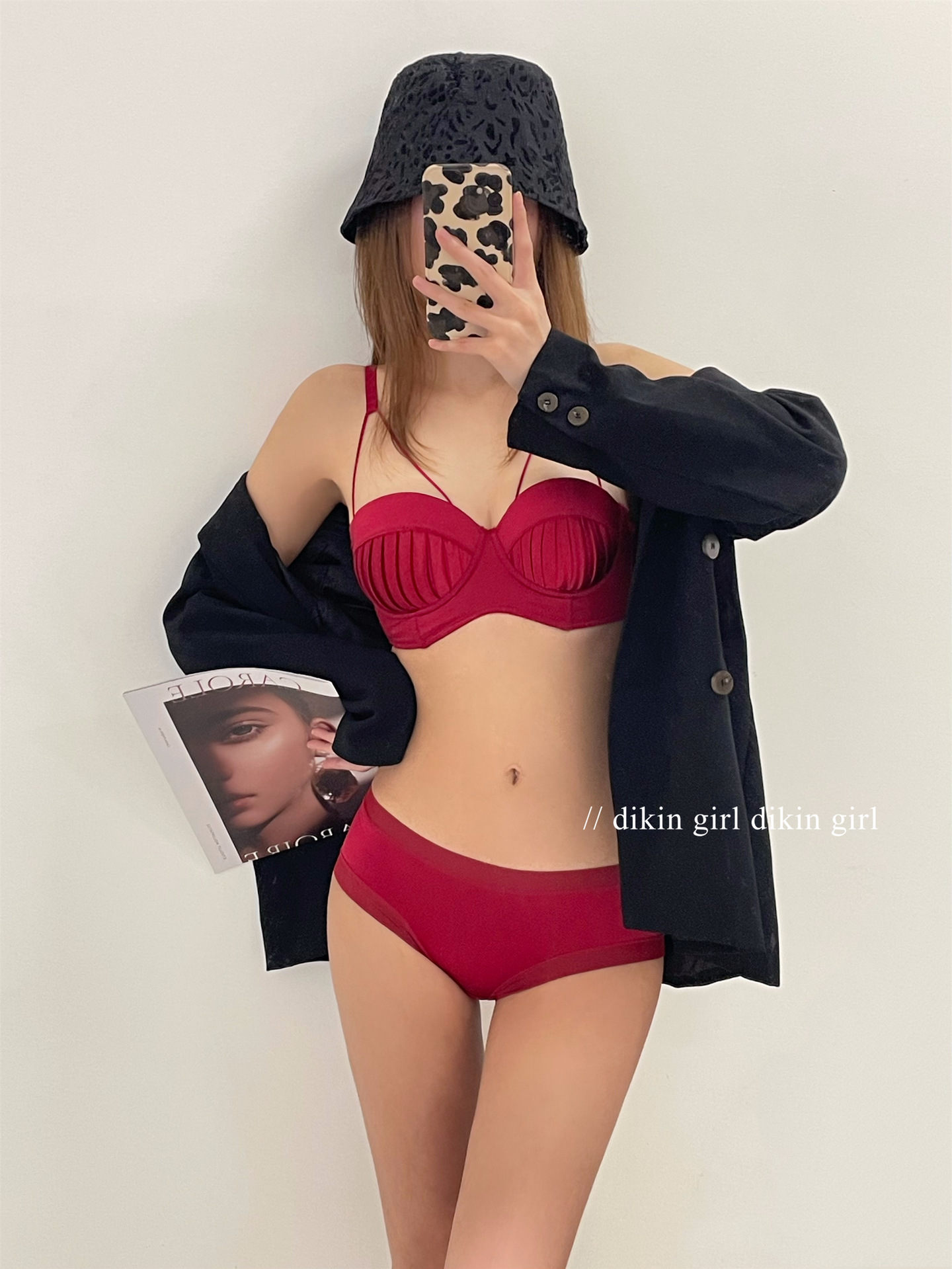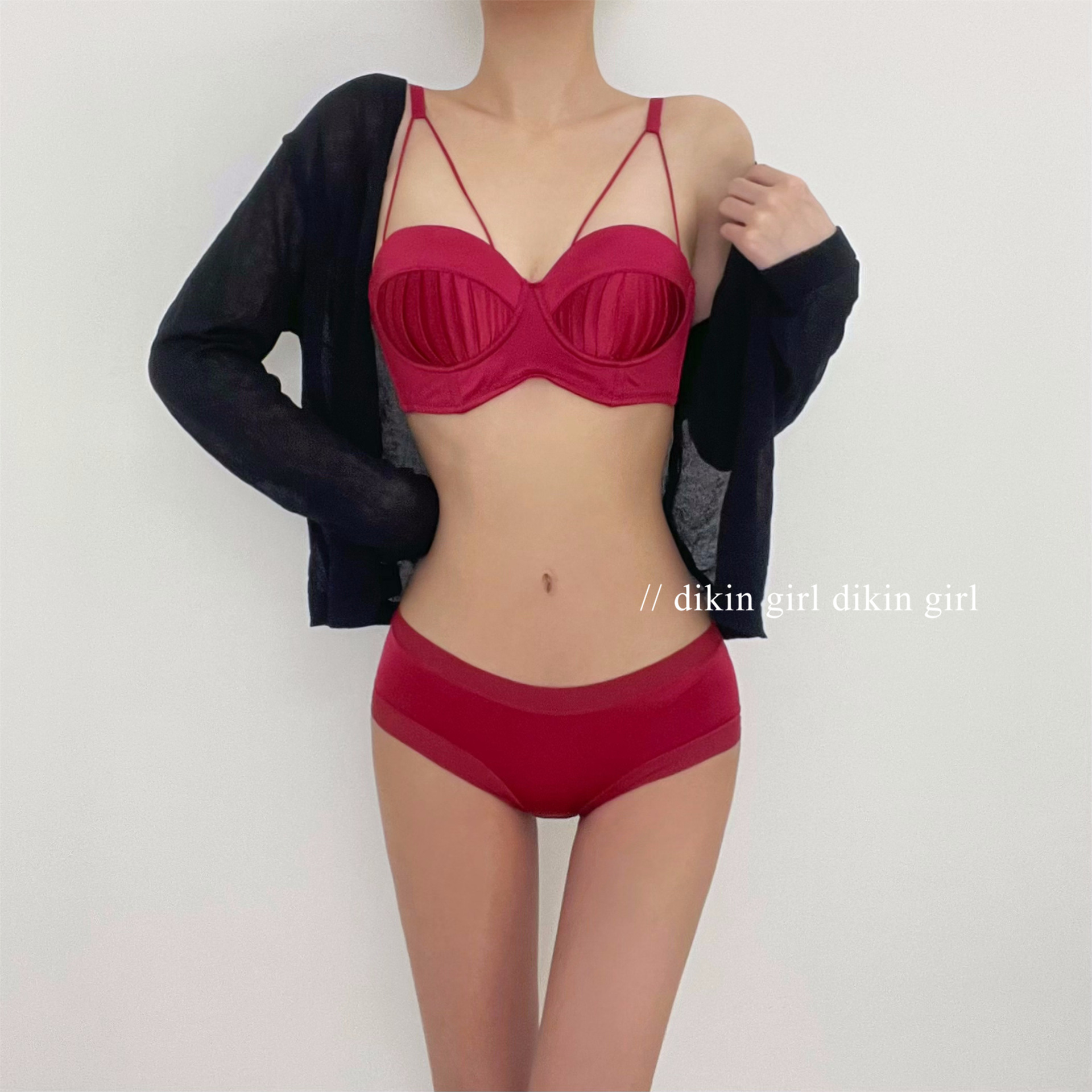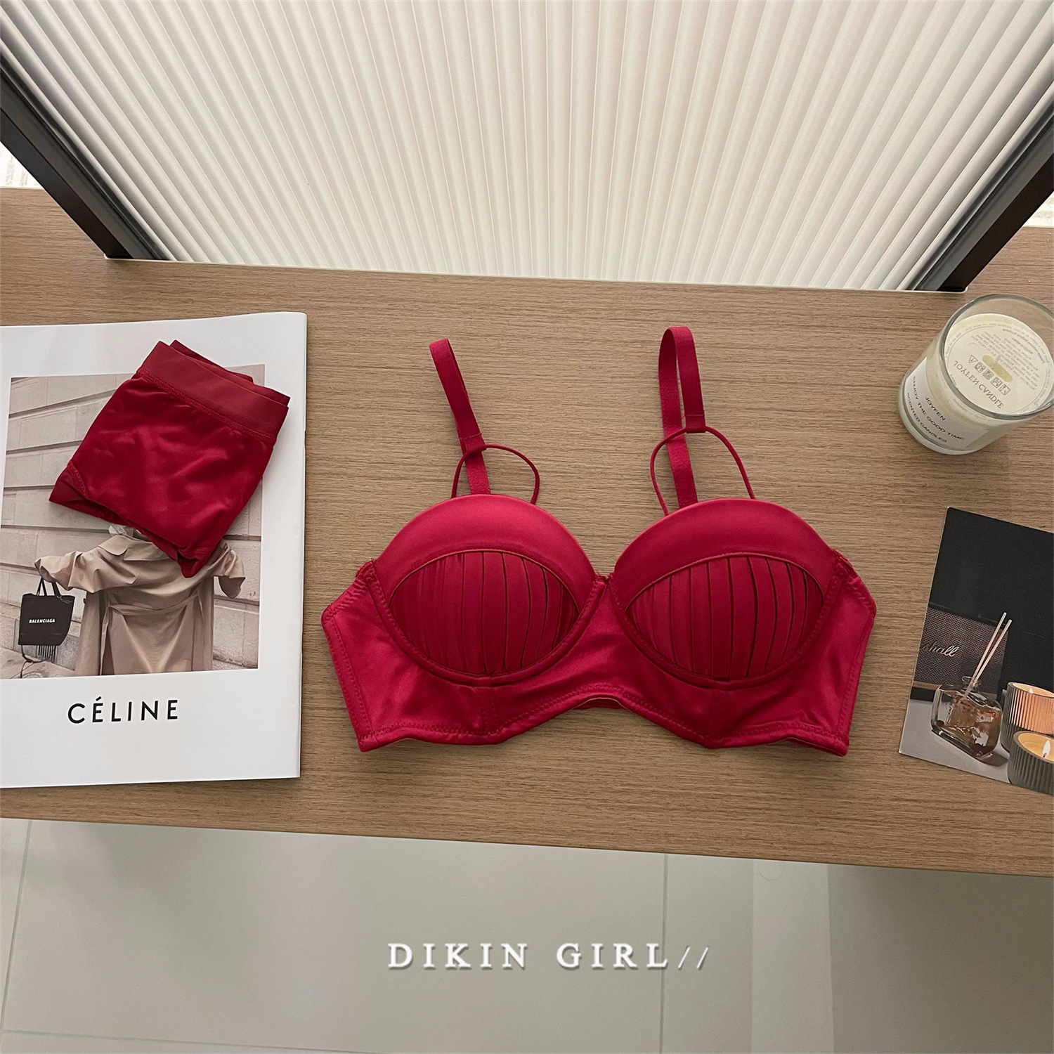 内衣女小胸聚拢秋冬红性感无痕胸罩加厚显大收副乳防下垂文胸套装2025新款小红书爆款
