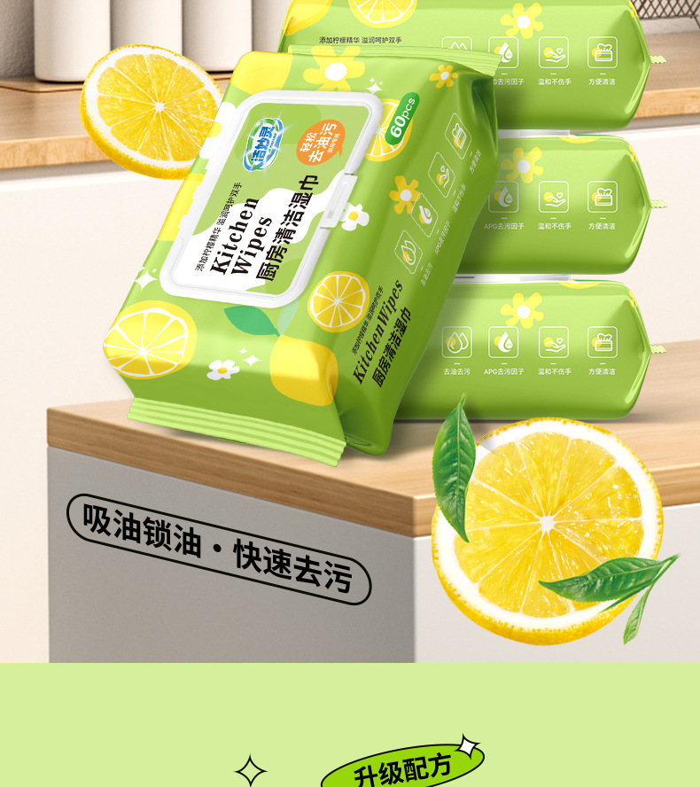 家用厨房湿巾强力去油60抽大包油烟机去污加大加厚厨房清洁湿纸巾