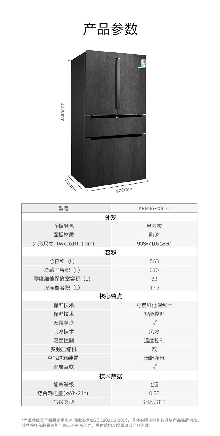 博世 BCD-568W(KFN96PX91C) 568升 变频 无霜 智能互联 维他保鲜 多门冰箱
