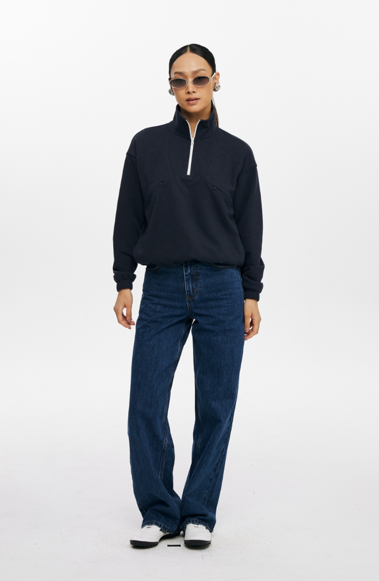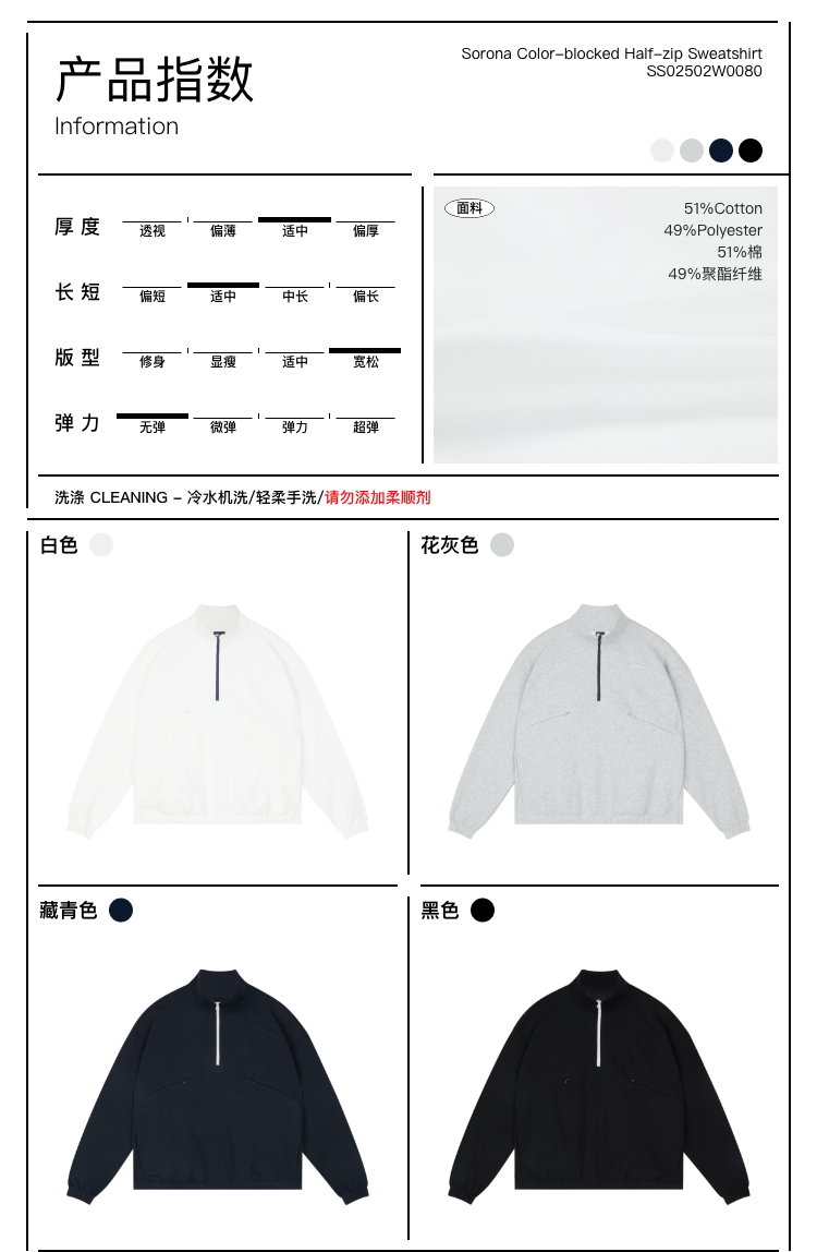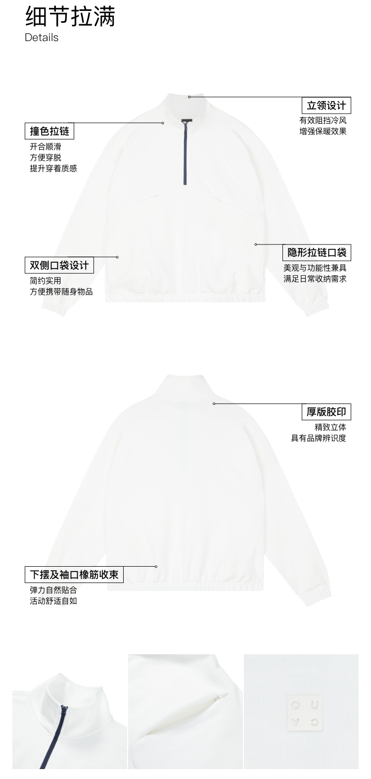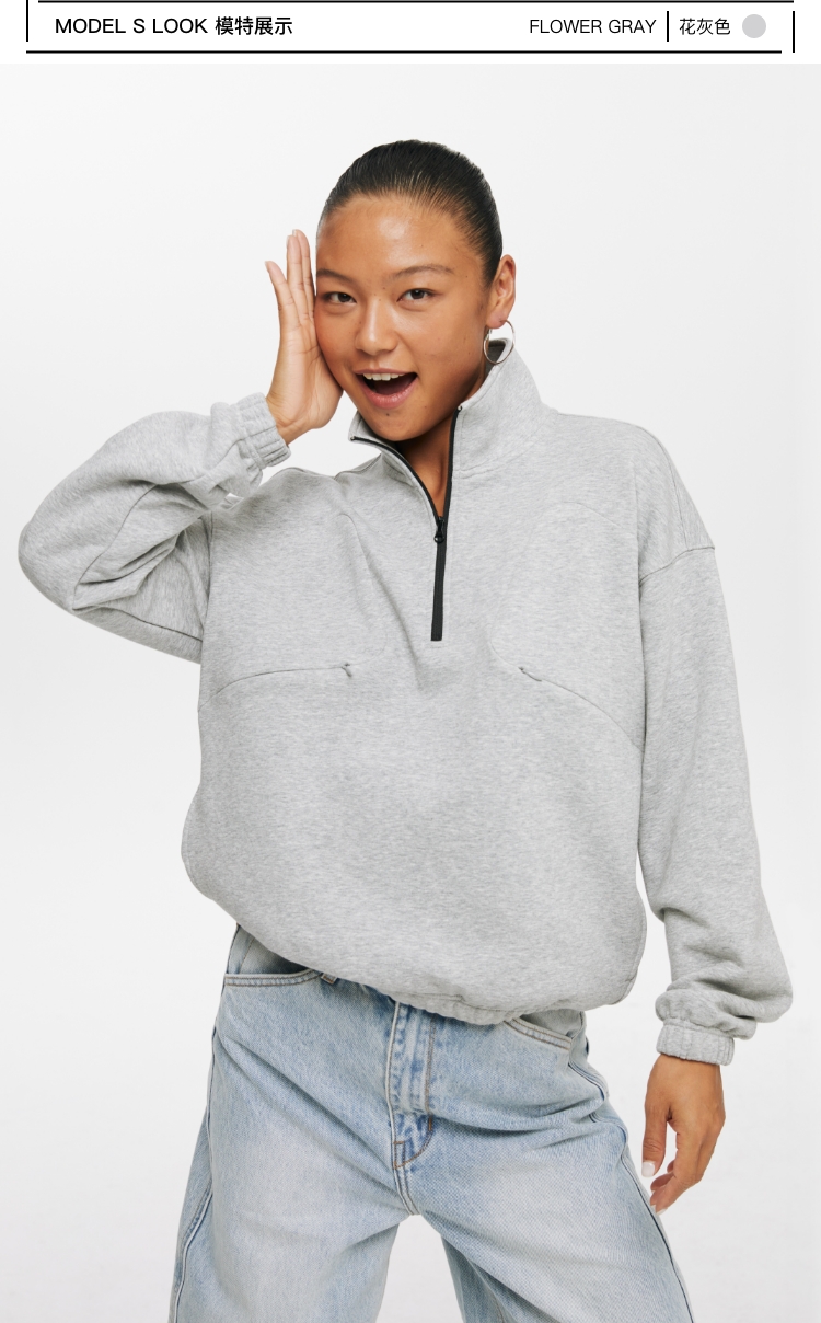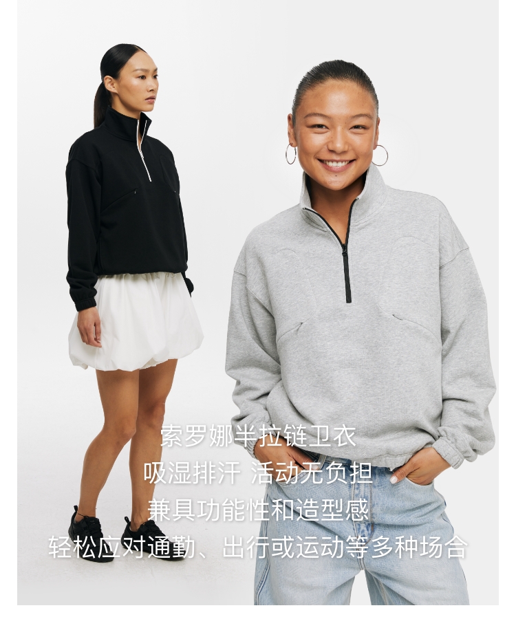 oneup索罗娜吸湿排汗撞色半拉链卫衣