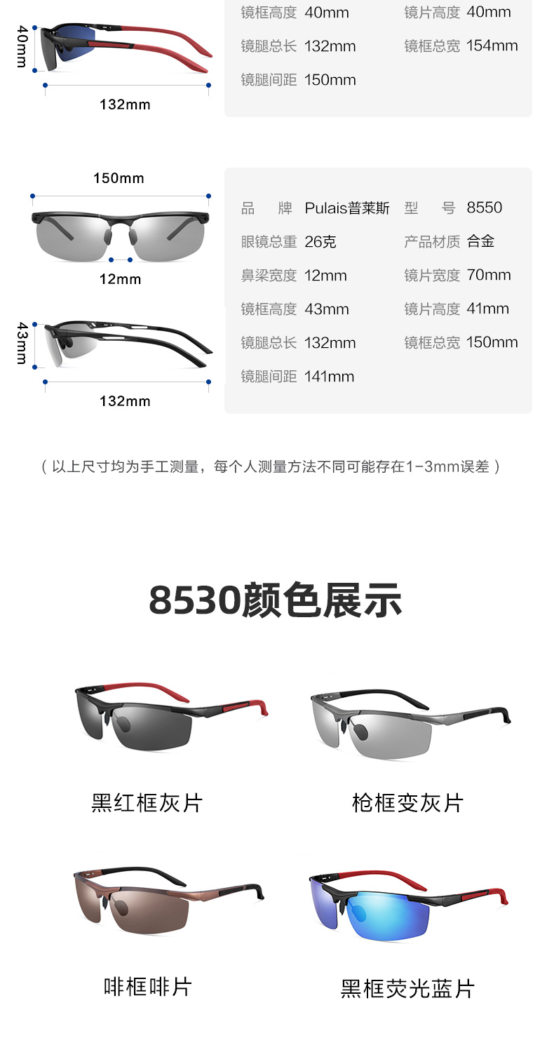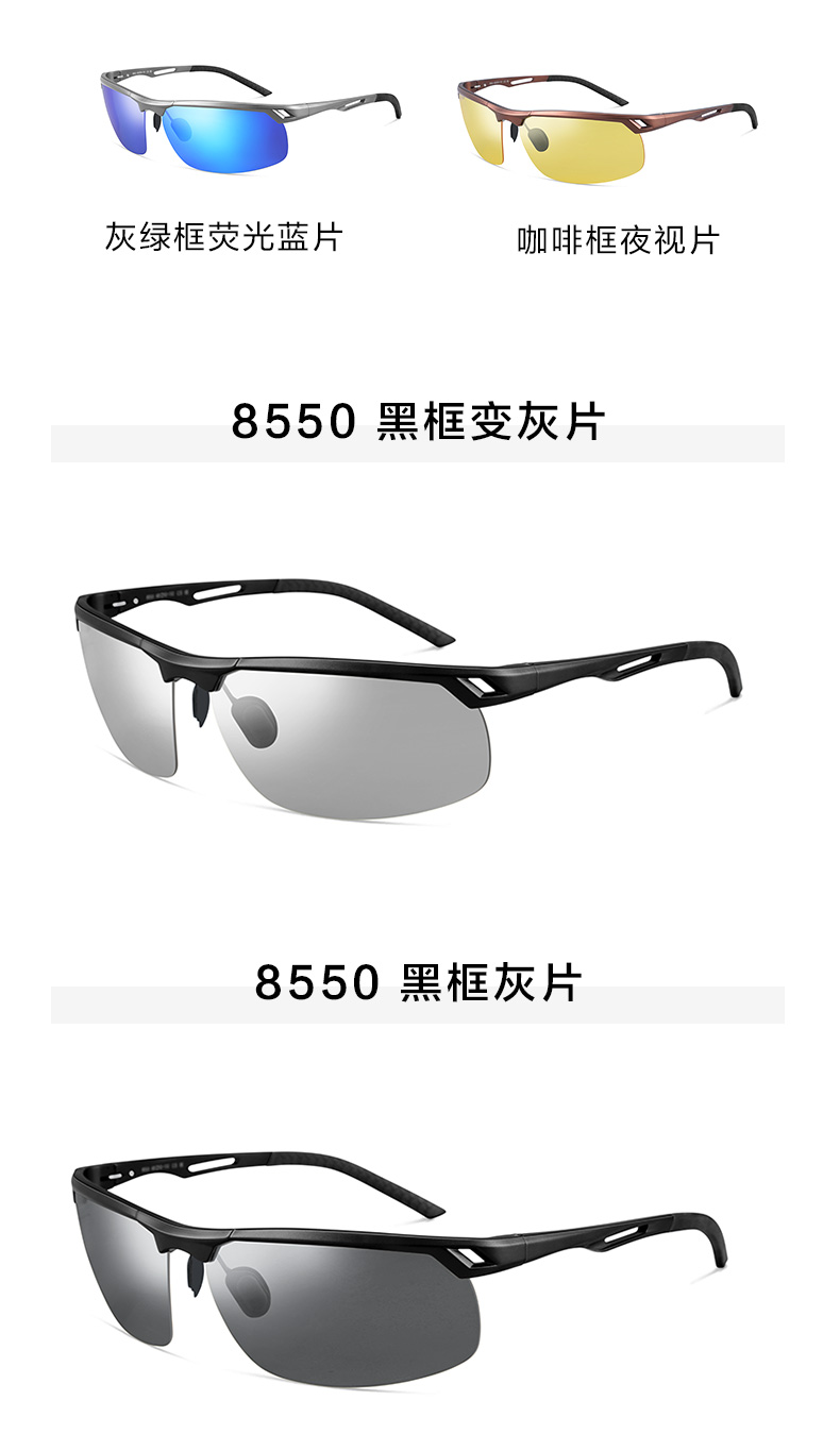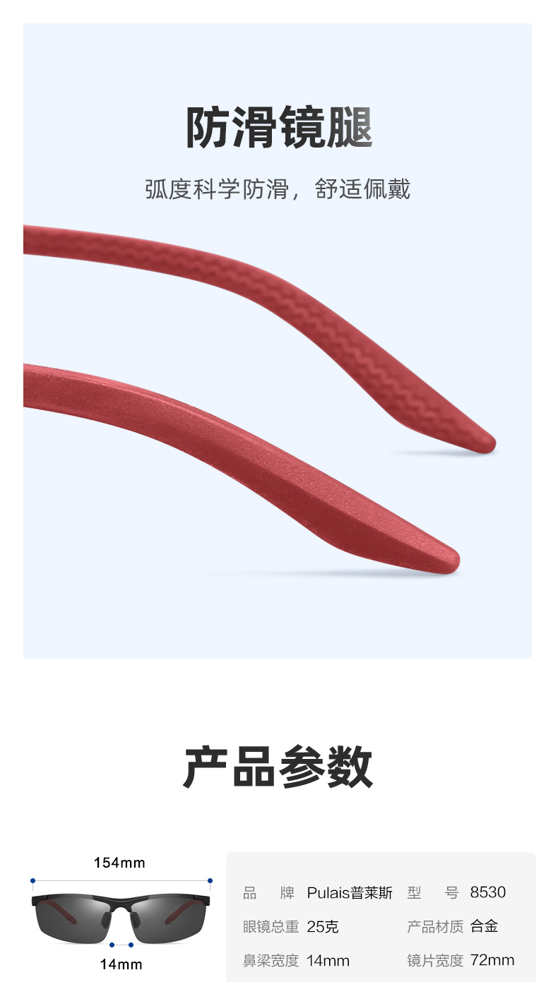 普莱斯8550 铝镁合金镜架 偏光驾驶 半框 太阳镜 男款