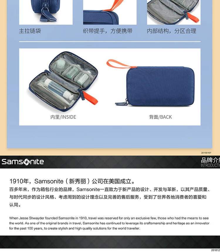 新秀丽化妆包盥洗包旅行洗漱收纳整理袋盥洗包旅行套装 三件套674*01012