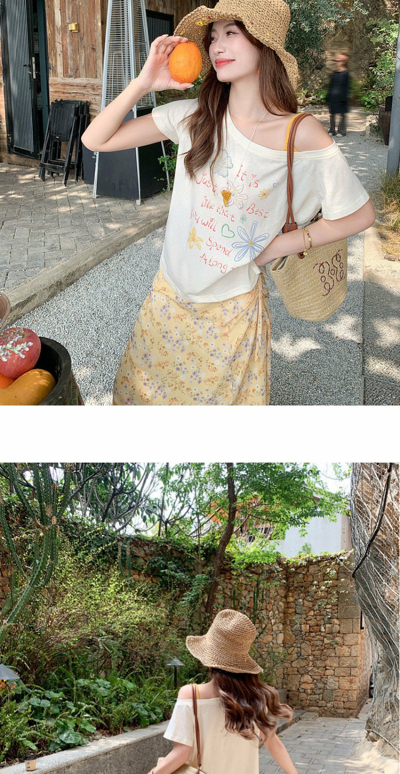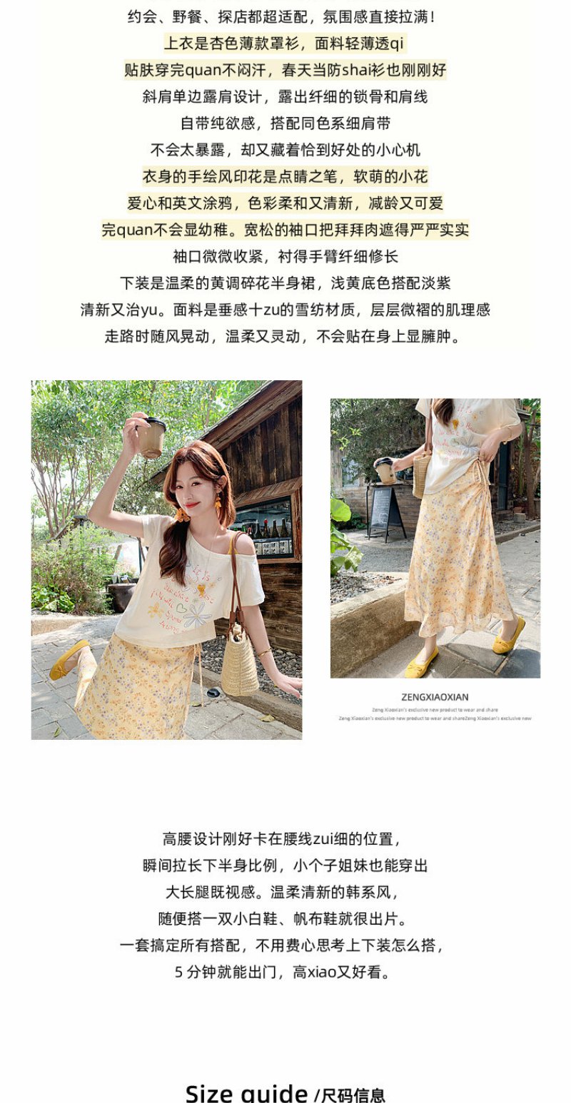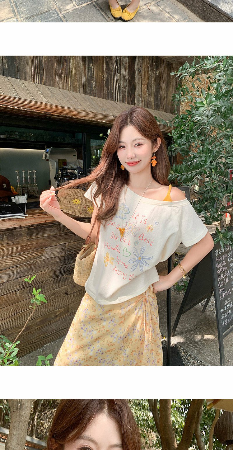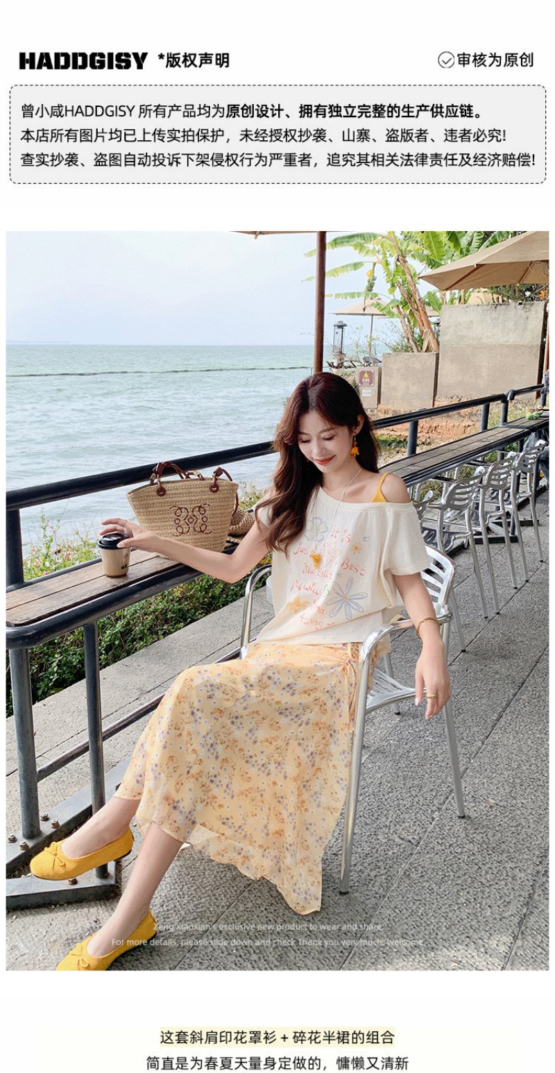 <曾小咸推荐>斜肩印花薄款罩衫T恤短袖【预售7-15天发货】