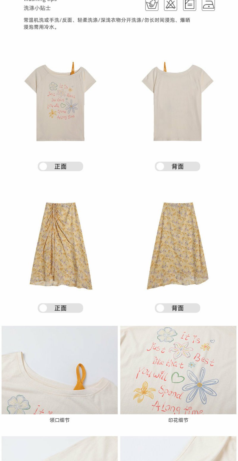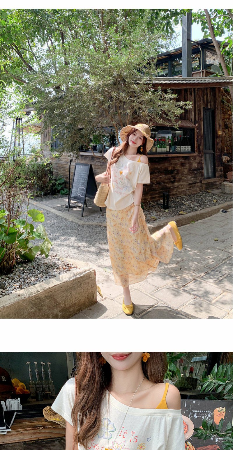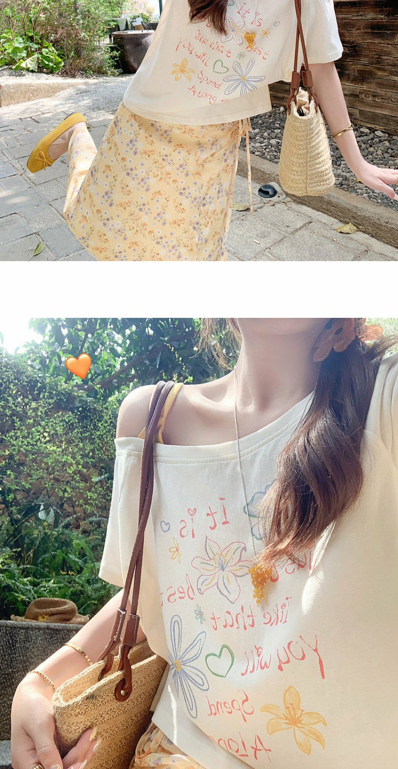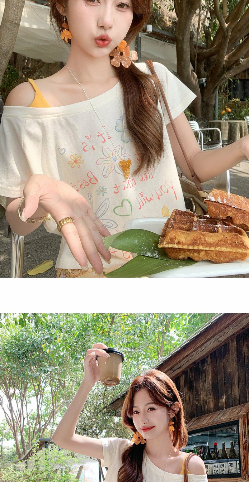 <曾小咸推荐>斜肩印花薄款罩衫T恤短袖【预售7-15天发货】