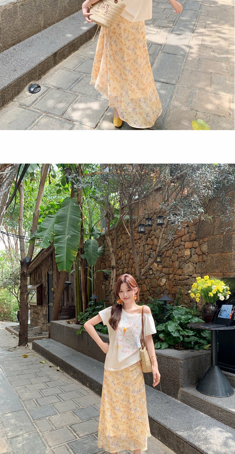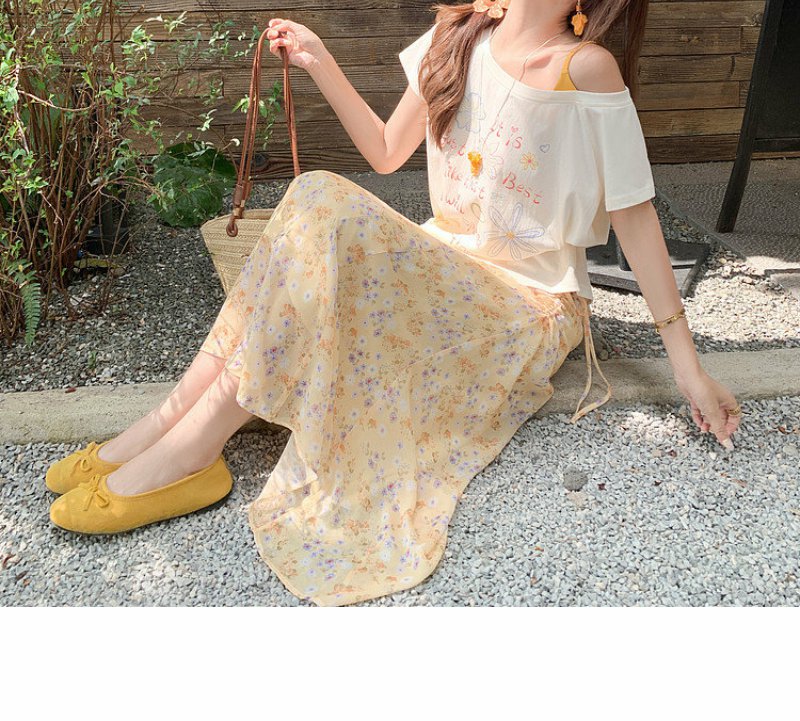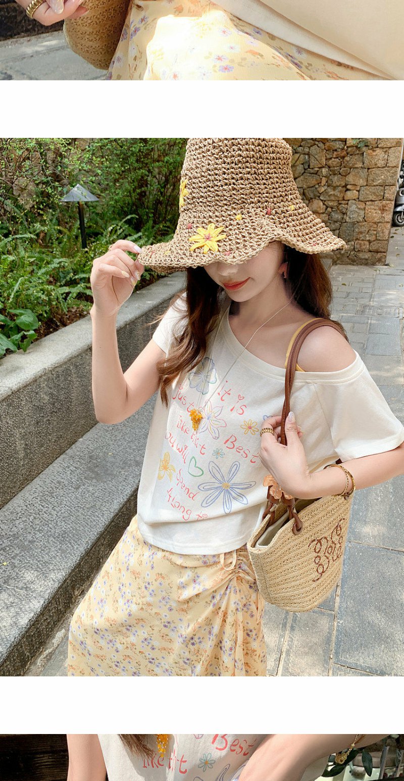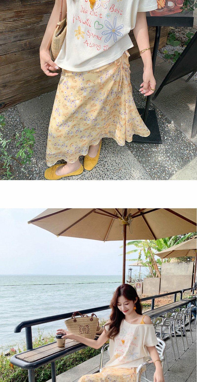 <曾小咸推荐>斜肩印花薄款罩衫T恤短袖【预售7-15天发货】