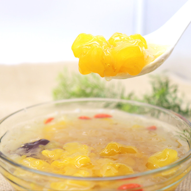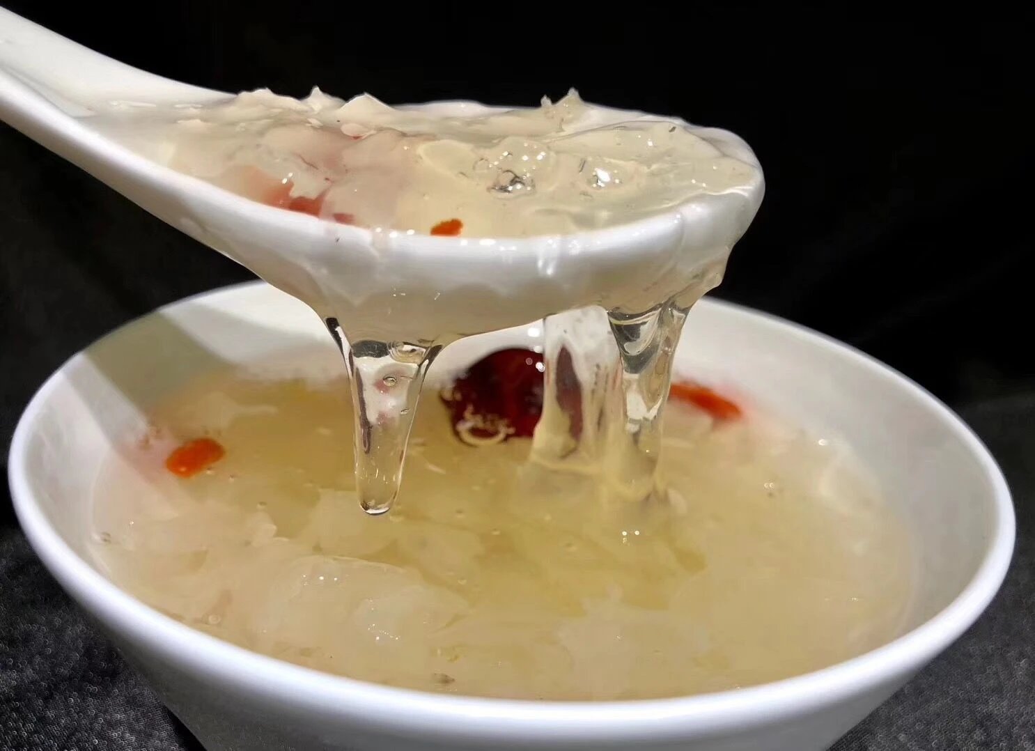 4、切记配料要在银耳出㬵以后再下锅,比如大枣枸杞梨等,在出锅前15分钟下锅就可(高压锅选择牛羊肉模式压40分钟银耳,然后再加冰糖和配料,开盖煮15分钟即可)备注:高压锅压银耳不能先放冰糖,否则容易溢出来。