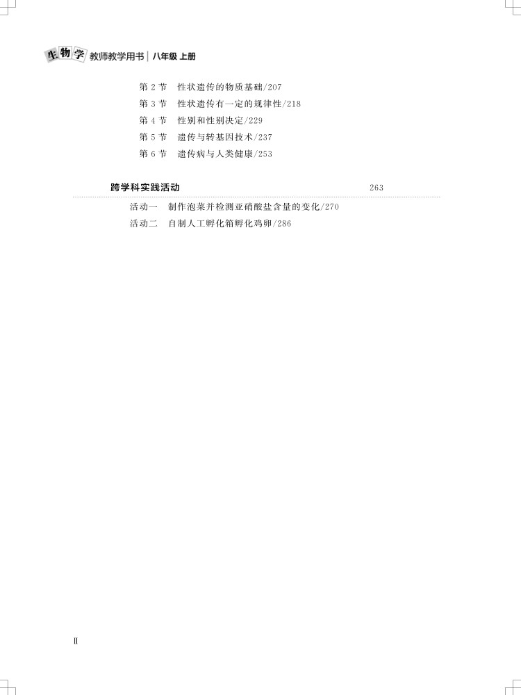 本书主要内容包括概念体系和概念图、学习目标、提前准备、教学思路、活动指导、讨论要点、参考答案、背景知识、教学案例等。其中:“提前准备”提醒教师提前准备教学活动所需的材料器具;“活动指导”涵盖了教科书中的绝大多数活动,一些活动还给出了活动设计建议、注意问题和讨论题的讨论要点等;“参考答案”给出了教科书中思考与练习的问题答案;“背景知识”则尽量为教师的备课、教学提供相关的补充材料;“教学案例”不仅给出了章整体教学设计案例,还给出了课时教学设计案例。