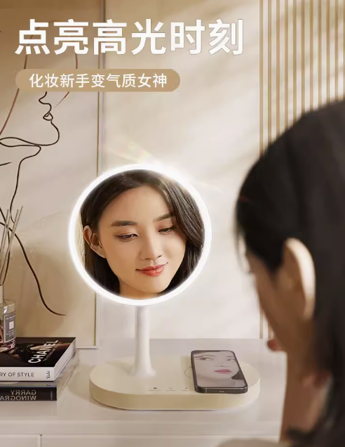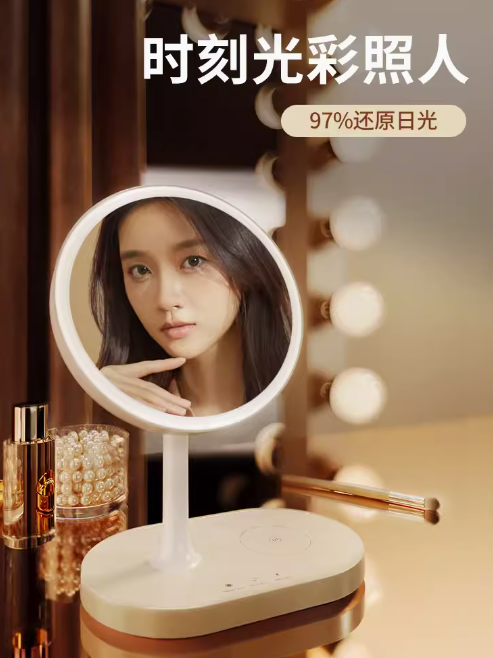 卡蛙化妆镜mini台式led带灯便携桌面网红日光镜梳妆发光镜子RG-M308 淘气