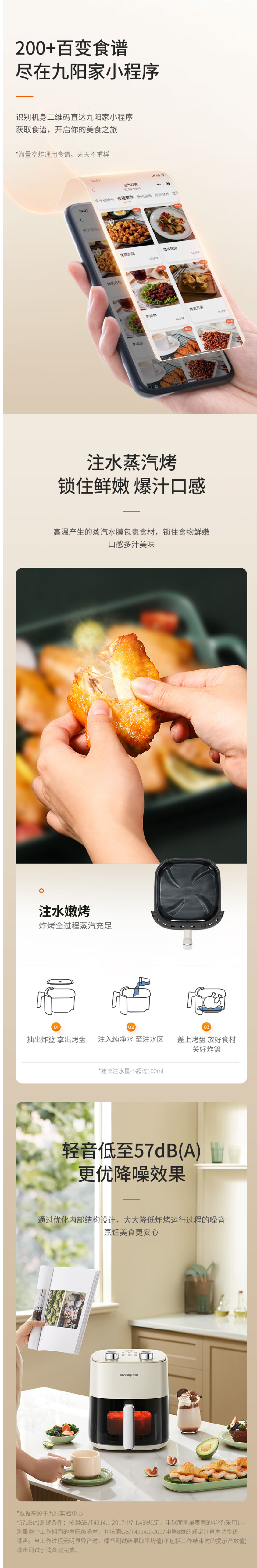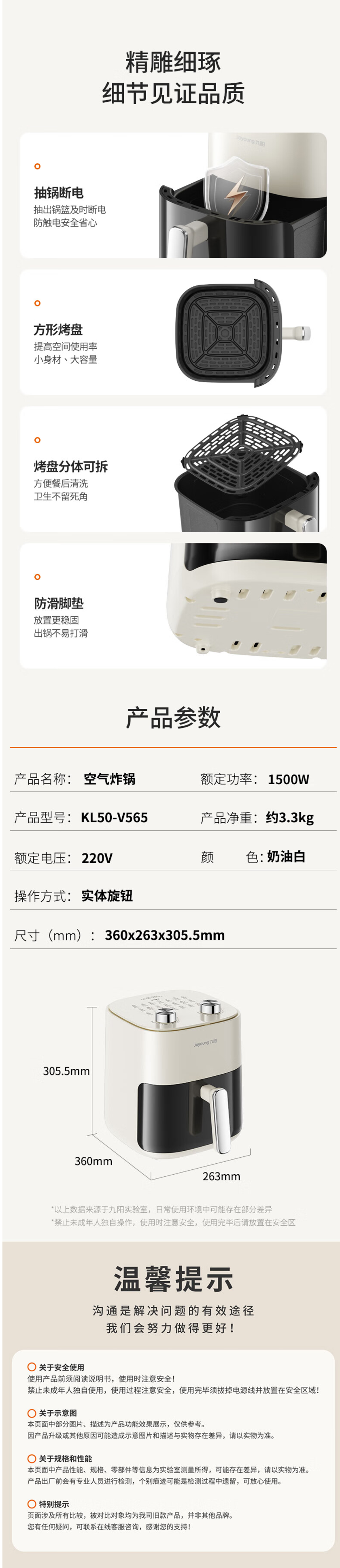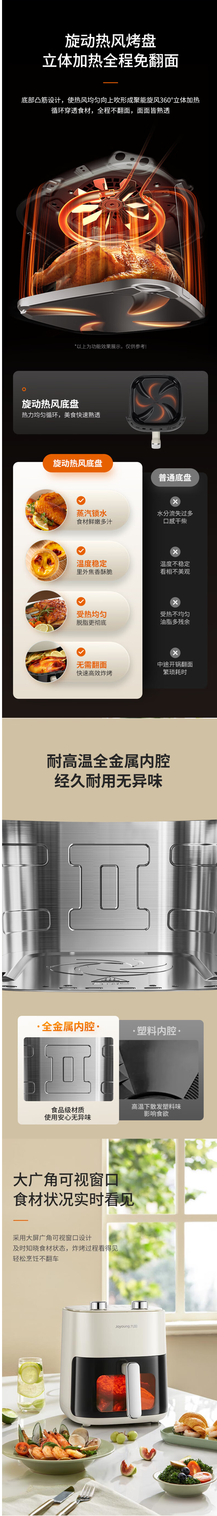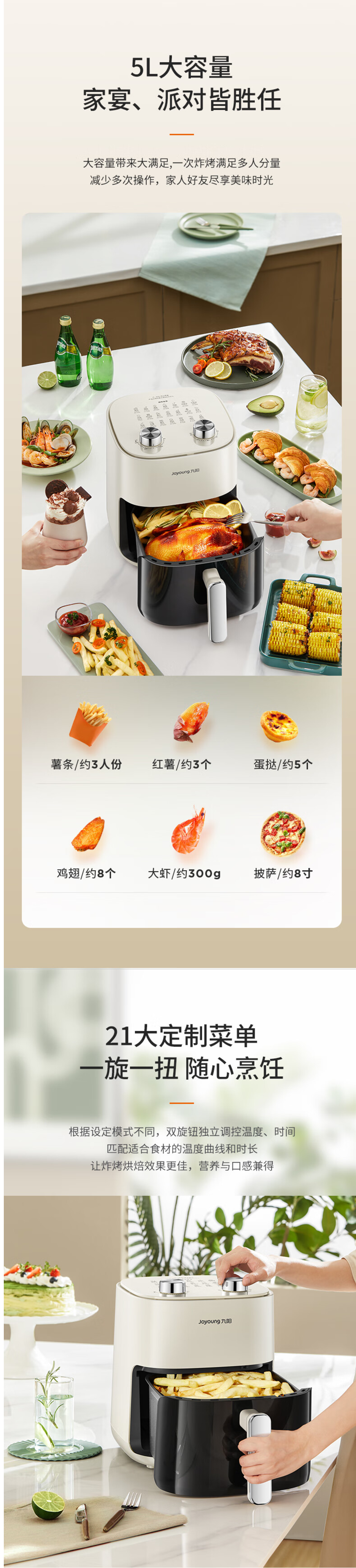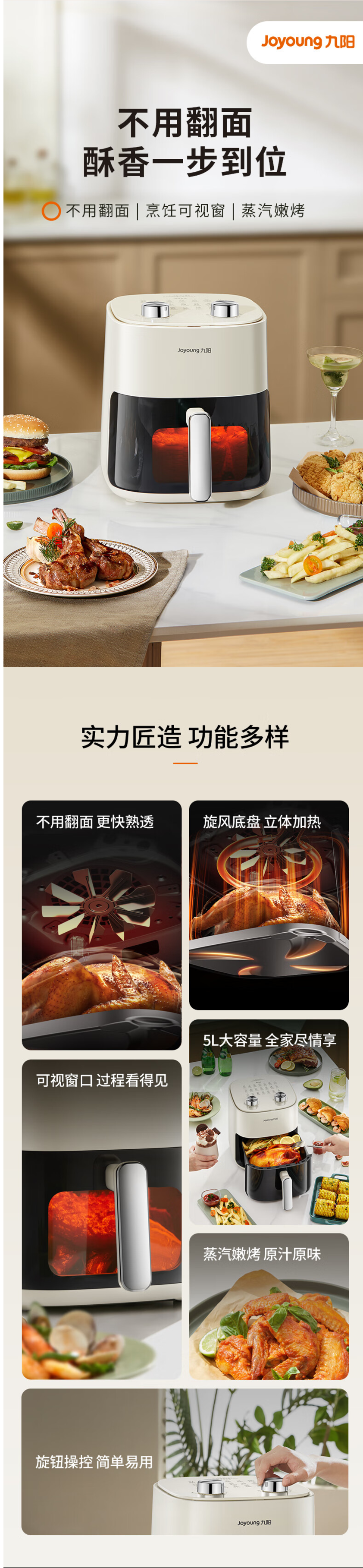 九阳(Joyoung)空气炸锅家用5L大容量不用翻面多功能 可视窗口 低音烘烤 蒸汽嫩烤KL50-V565 100123020402