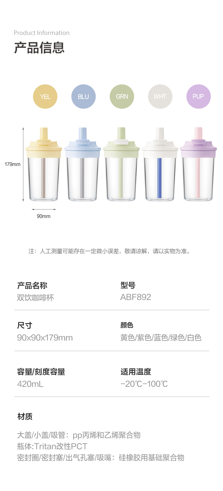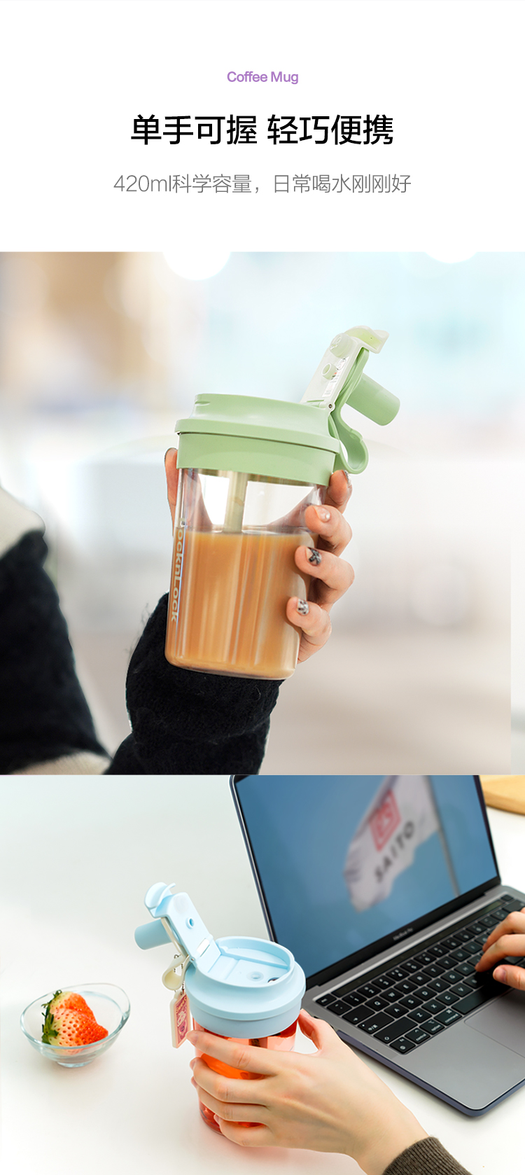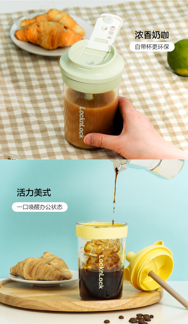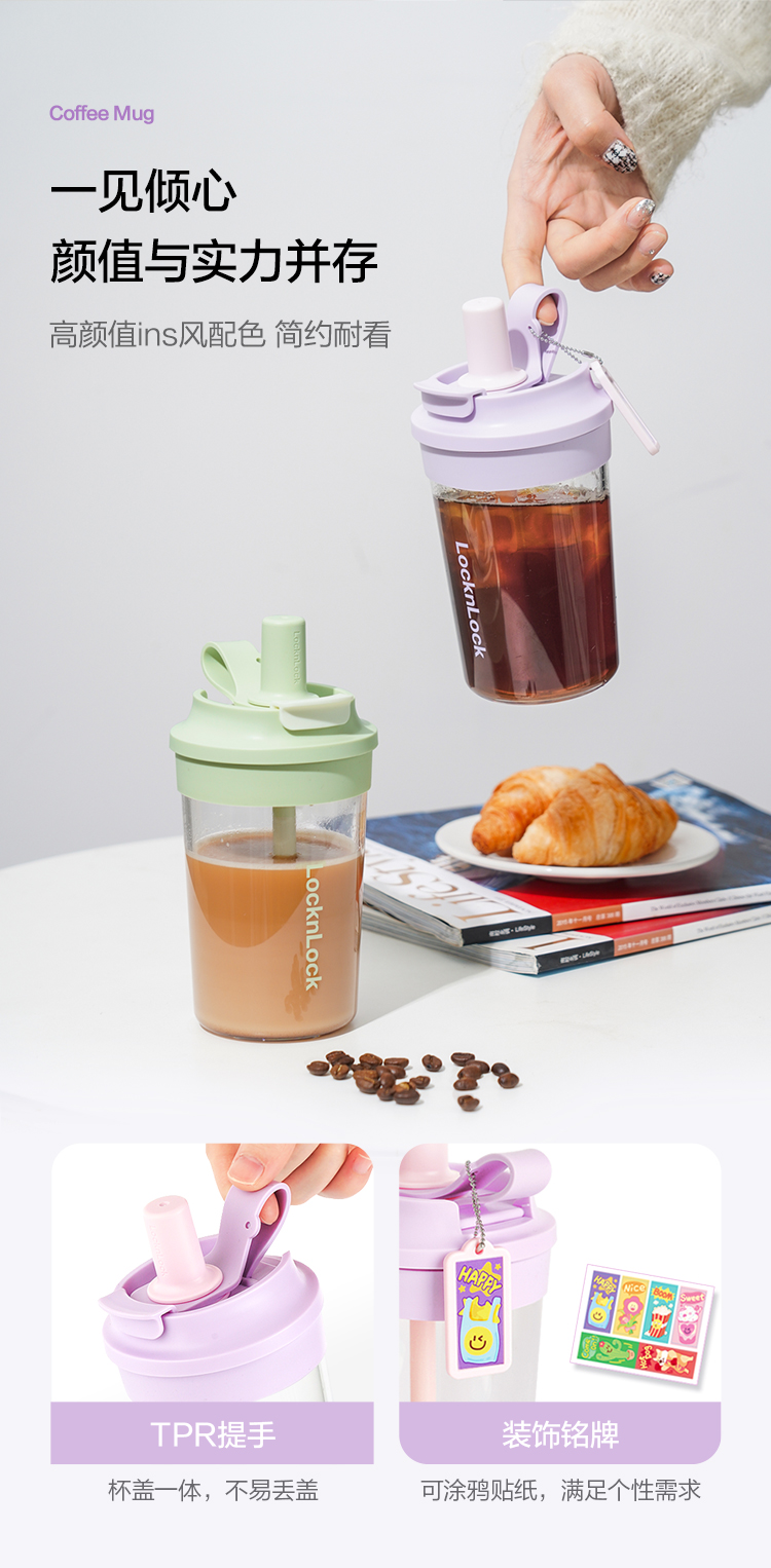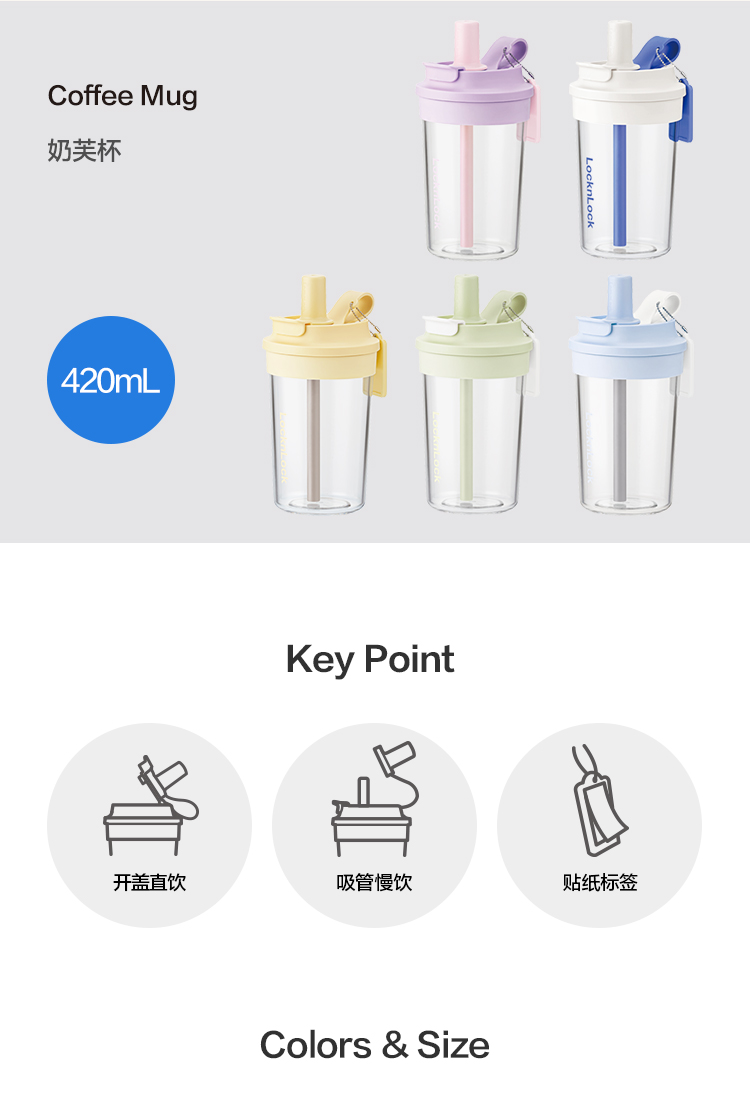 乐扣乐扣奶芙杯咖啡吸管杯成人咖啡吸管杯塑料水杯女夏天学生高颜值 ABF892