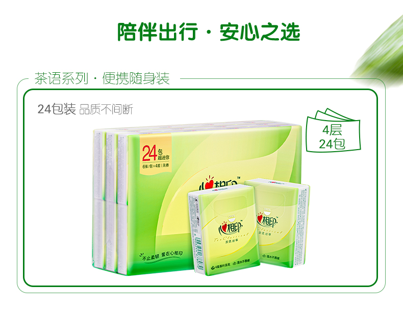 心相印手帕纸巾【肖战同款】茶语丝享 超迷你4层6片×24包(新旧交替)