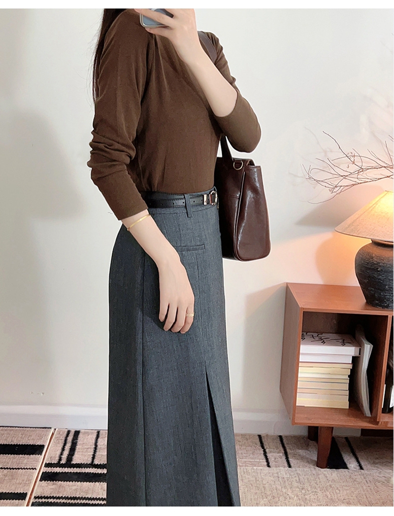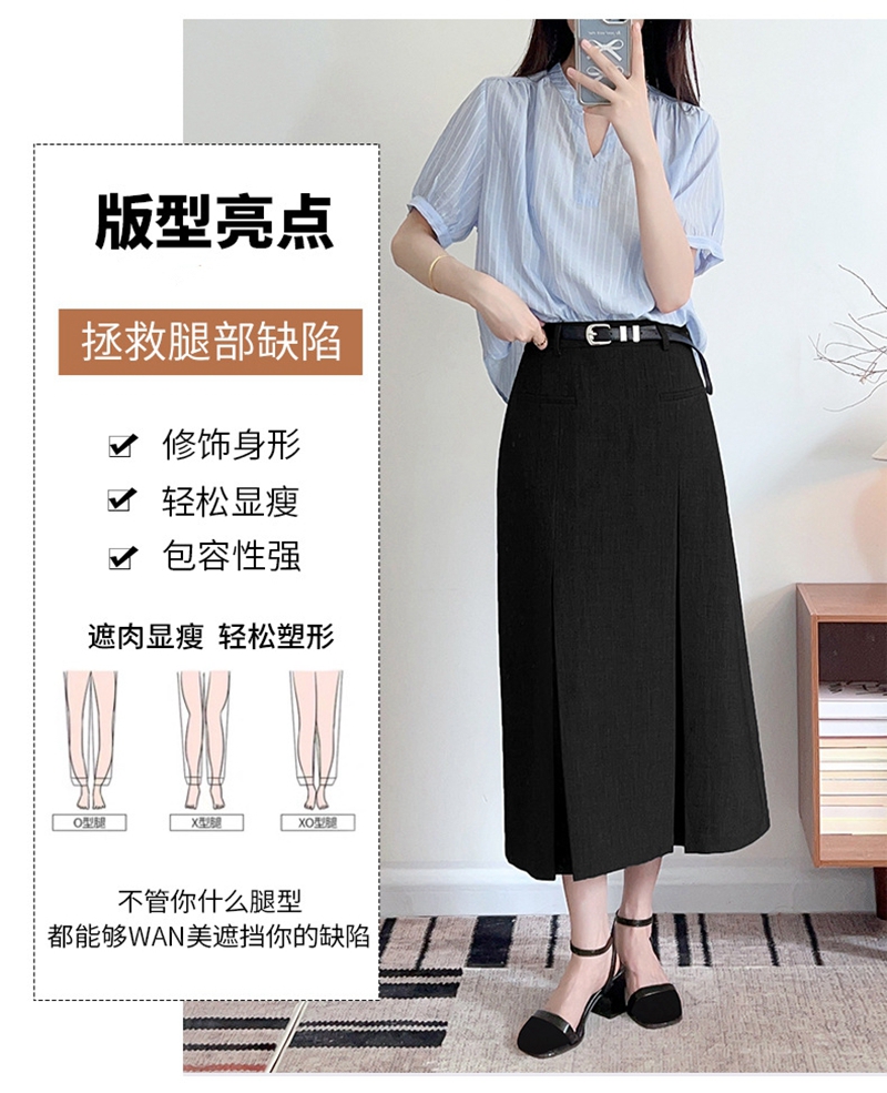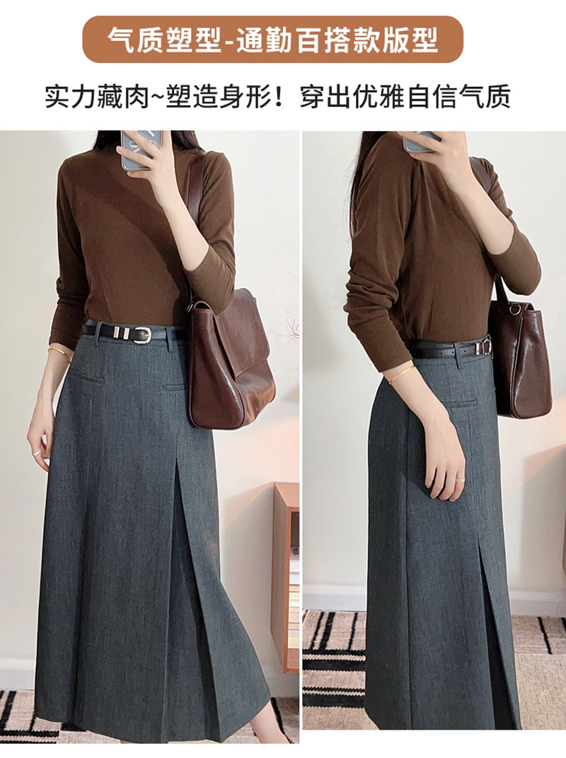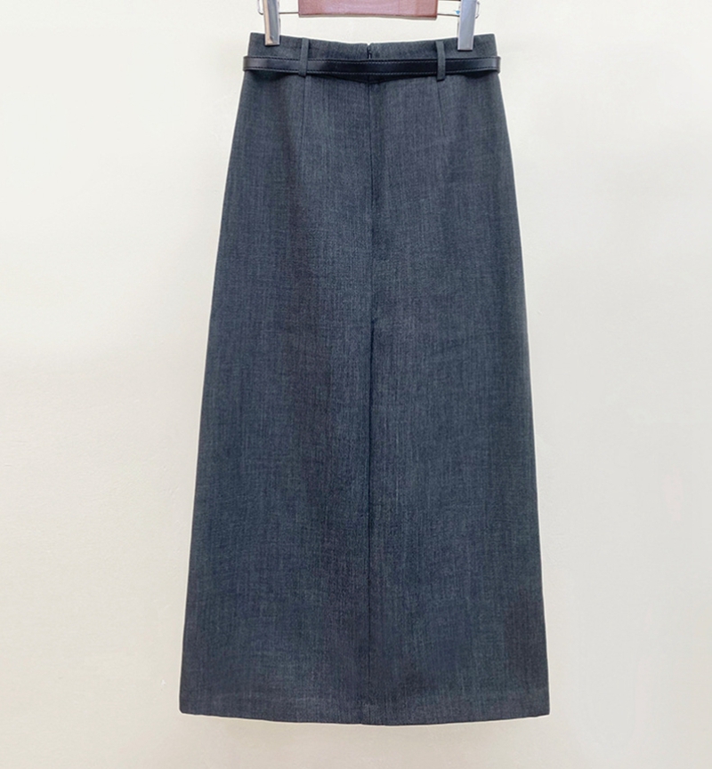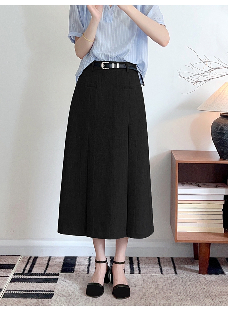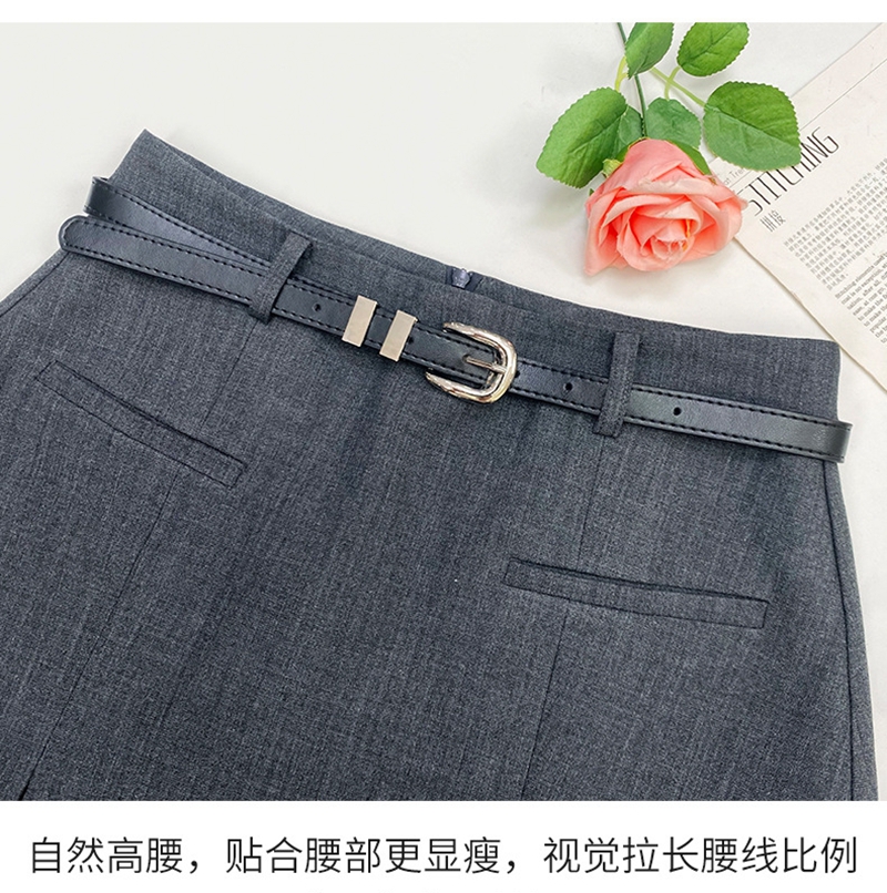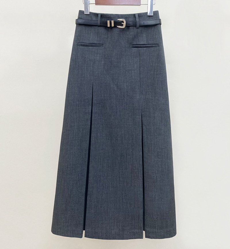 时尚知性高腰拉链皮带抽褶修身半身裙