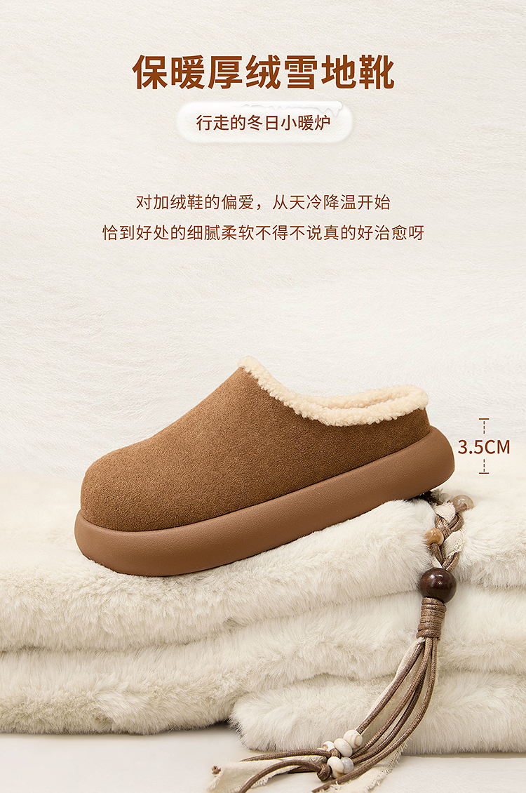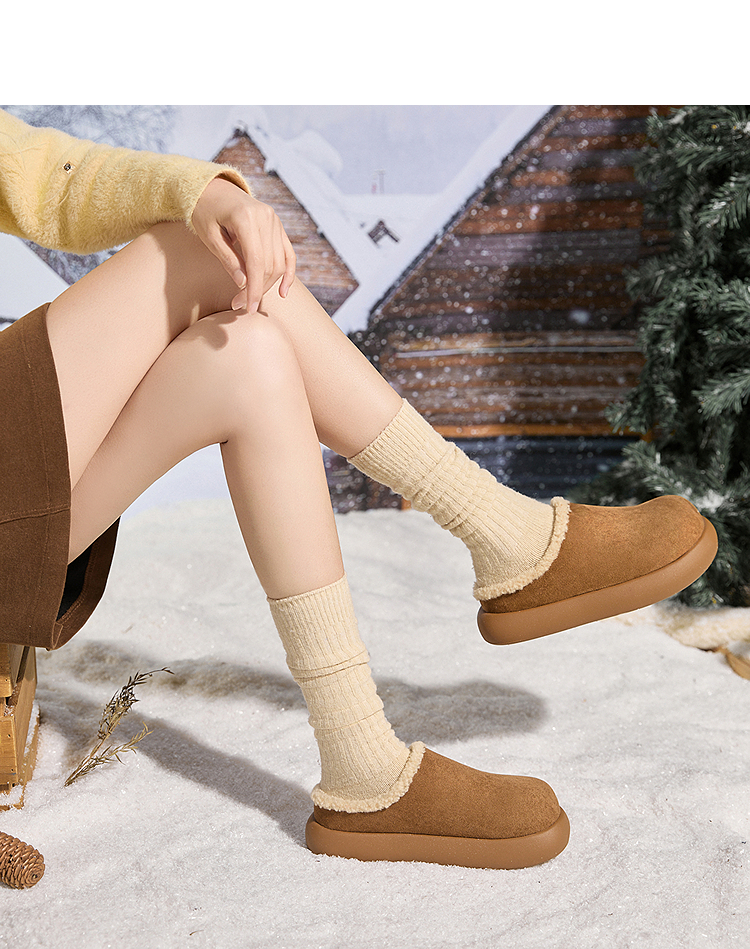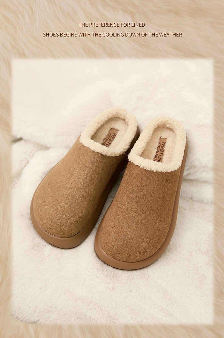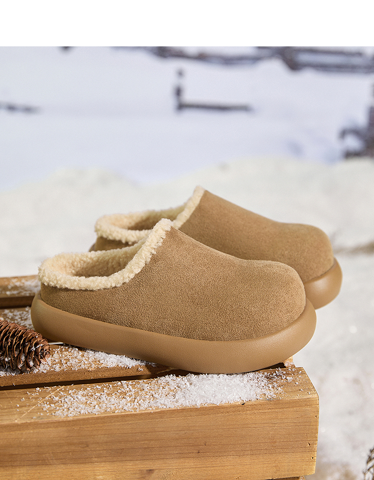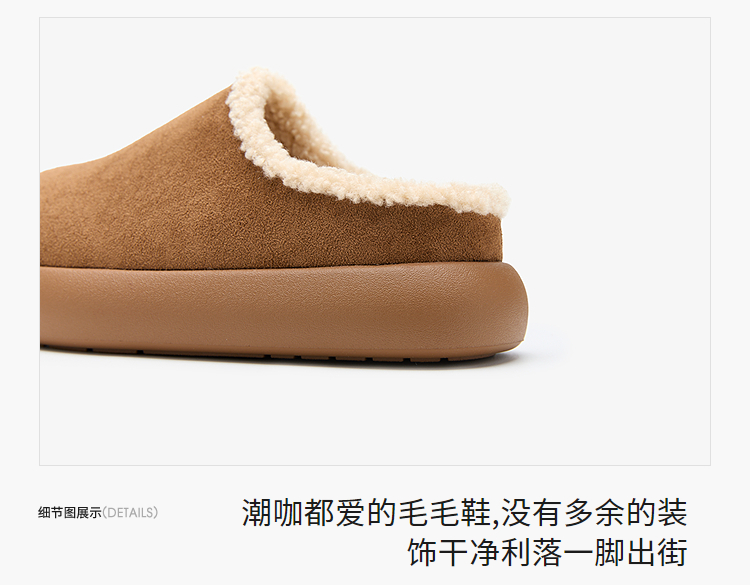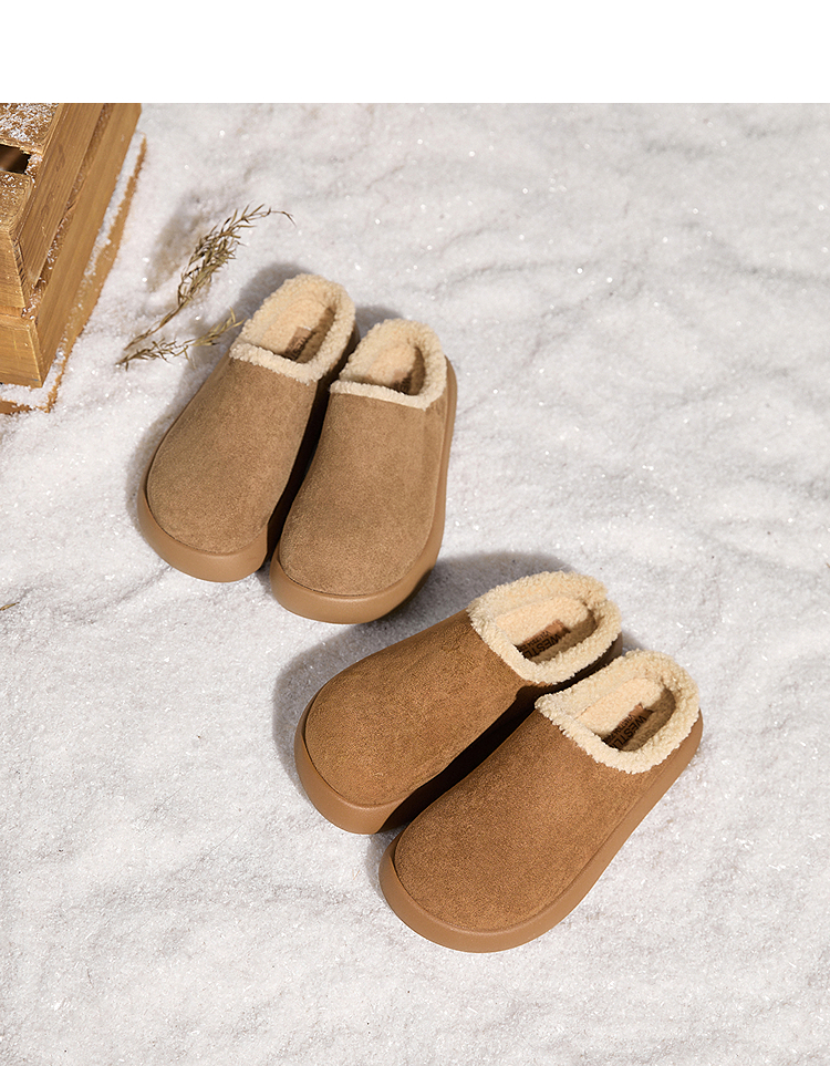 西遇加绒土豆勃肯鞋女新款冬季外穿一脚蹬保暖雪地鞋毛毛拖鞋V2457334