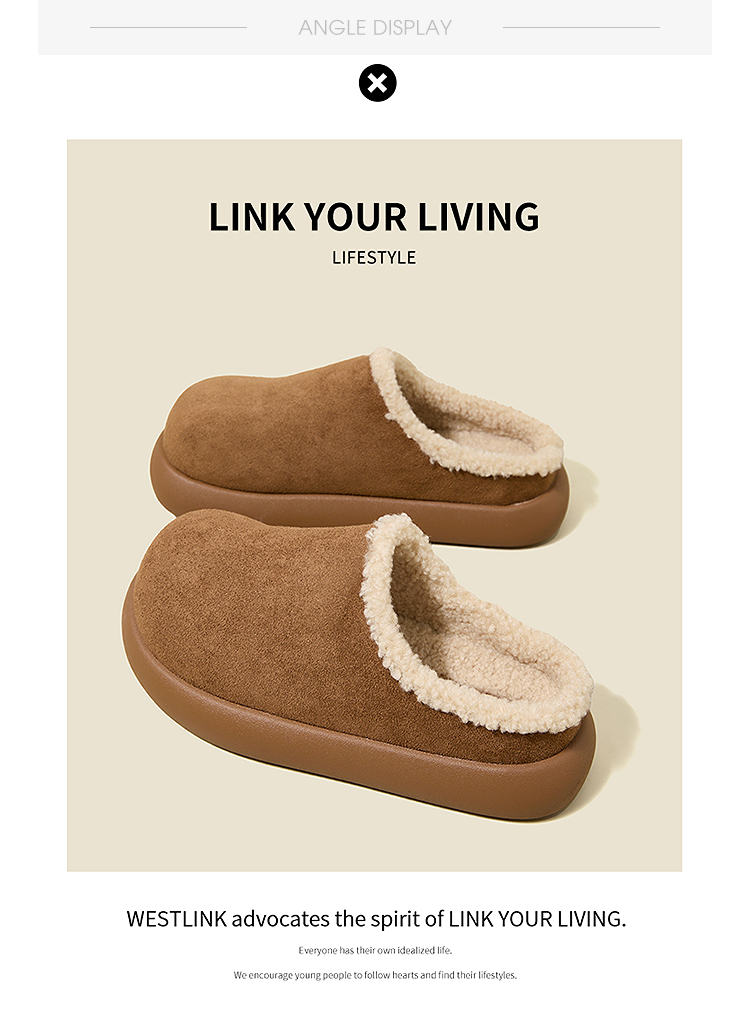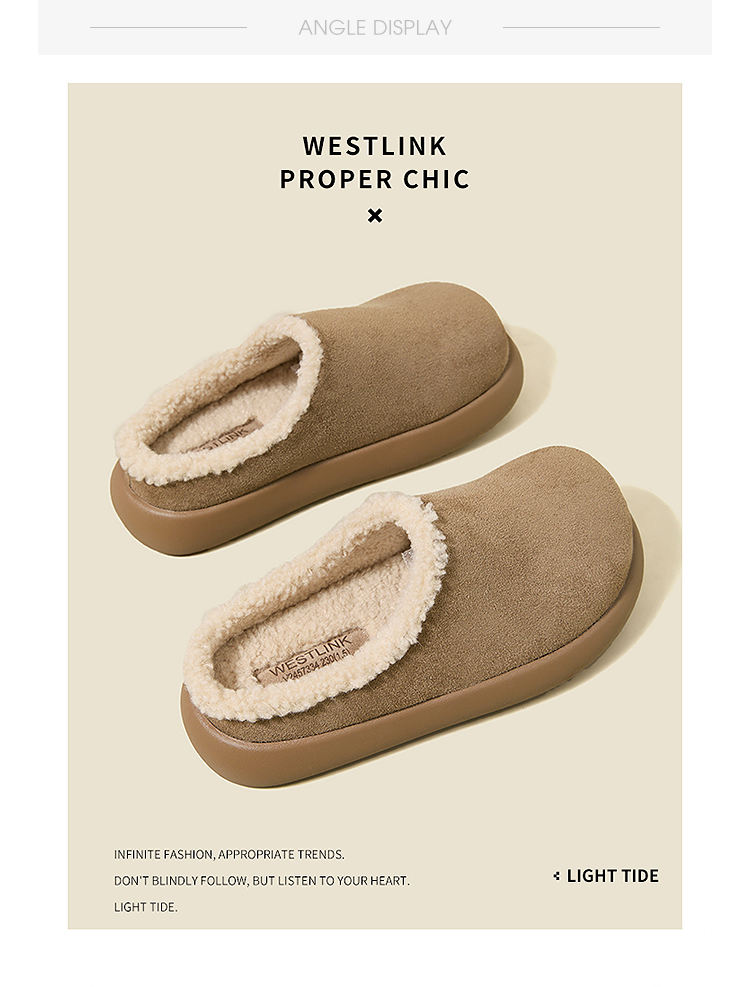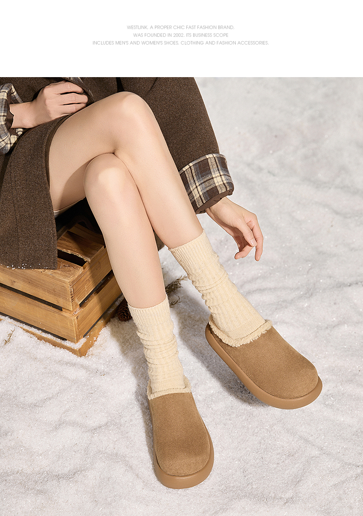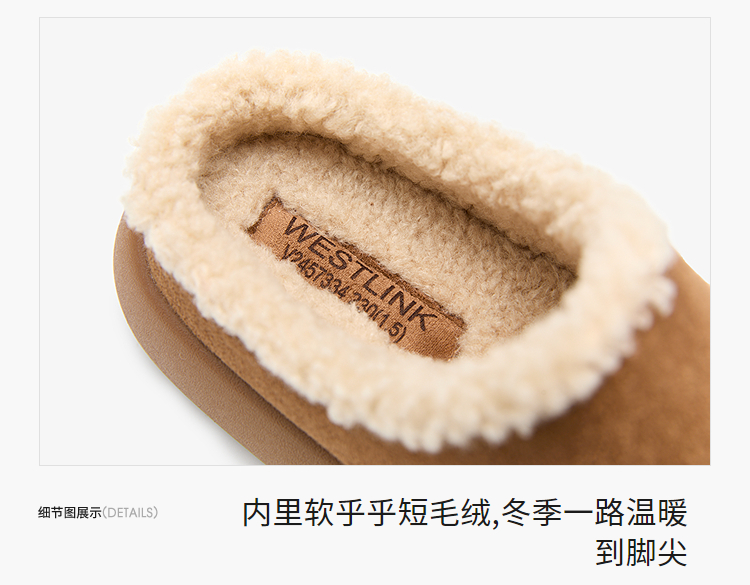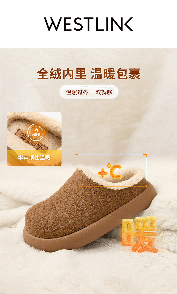 西遇加绒土豆勃肯鞋女新款冬季外穿一脚蹬保暖雪地鞋毛毛拖鞋V2457334