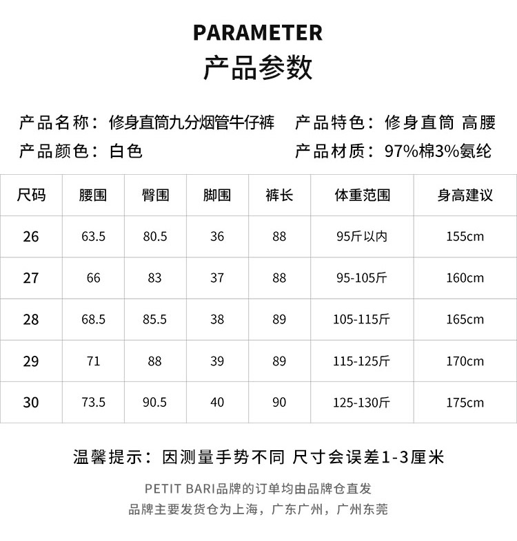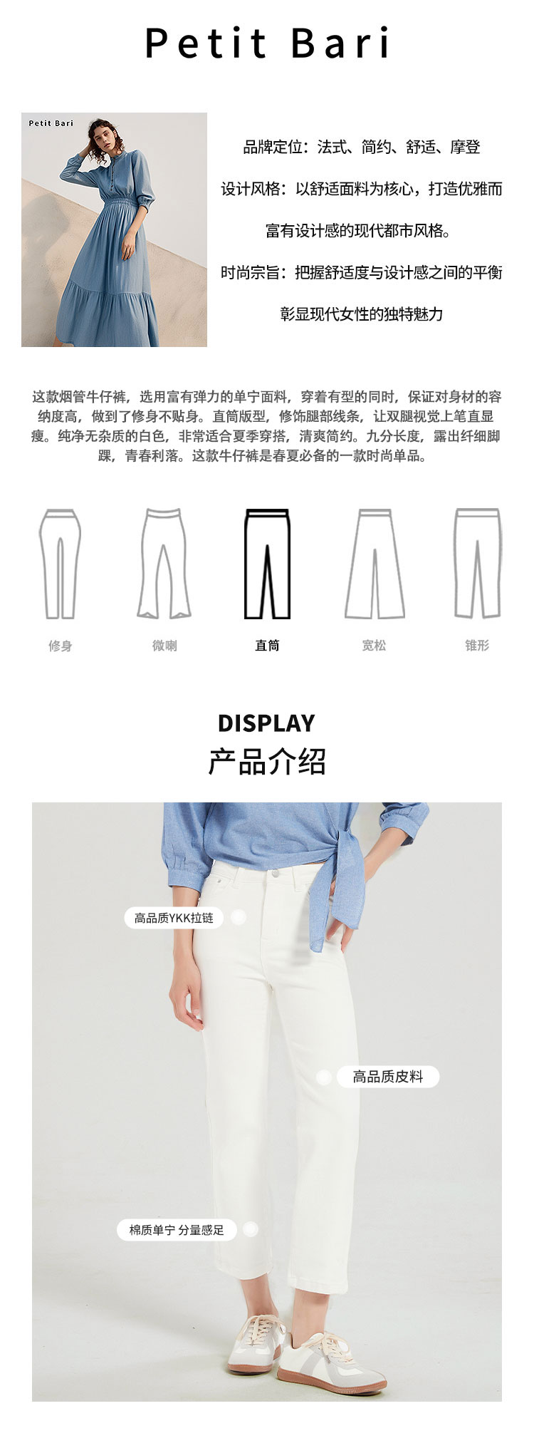 【2件9折】【Petit Bari】修身直筒九分烟管牛仔裤浅色直筒裤九分裤