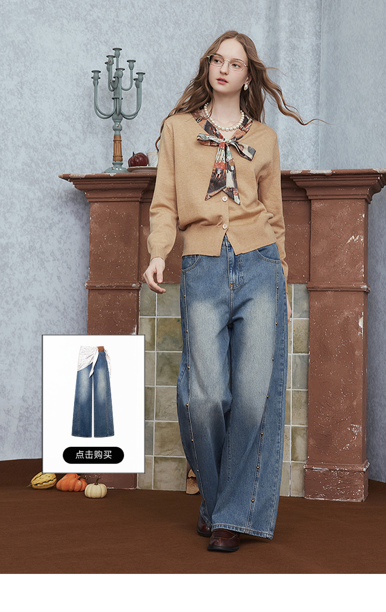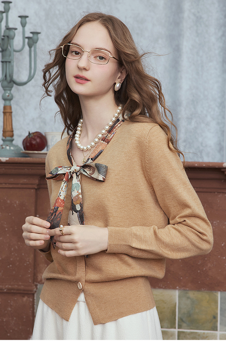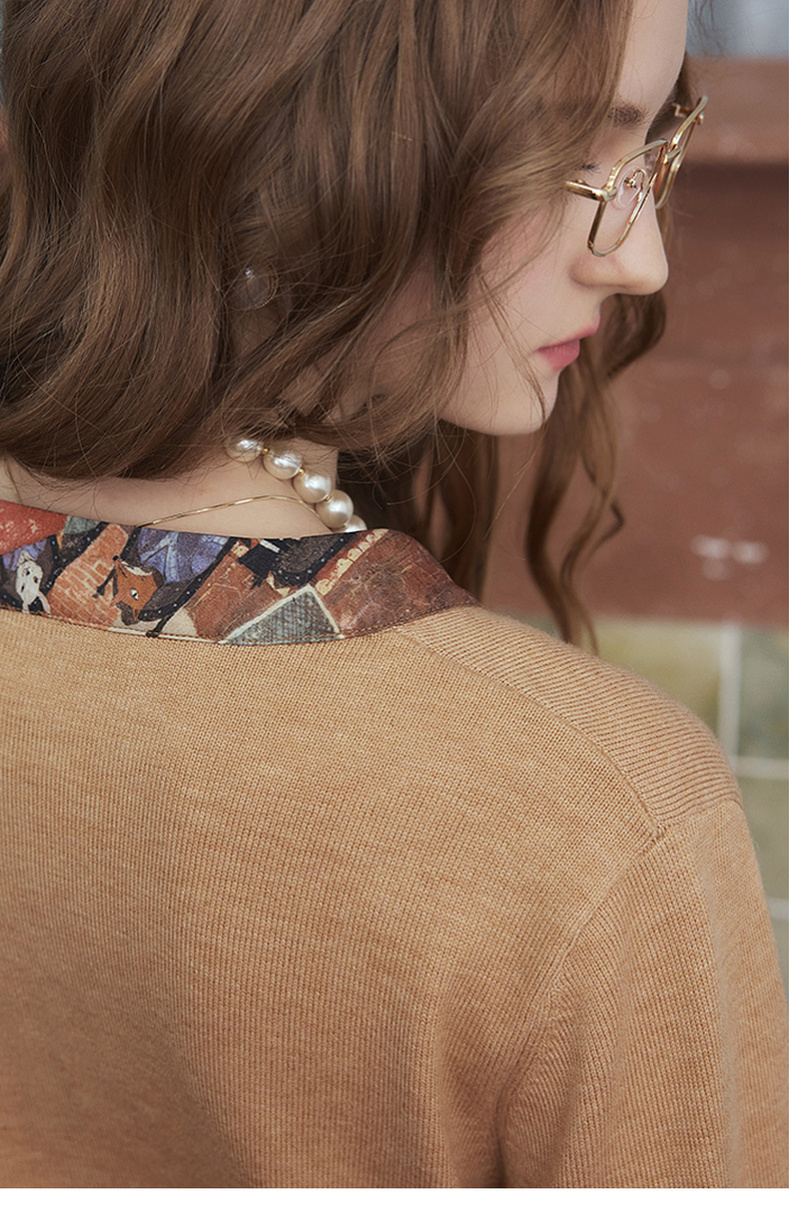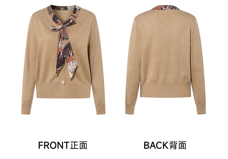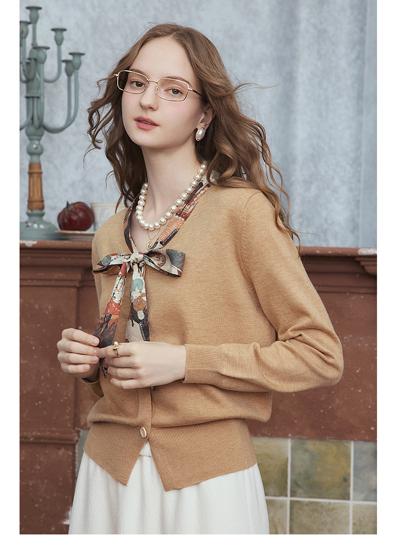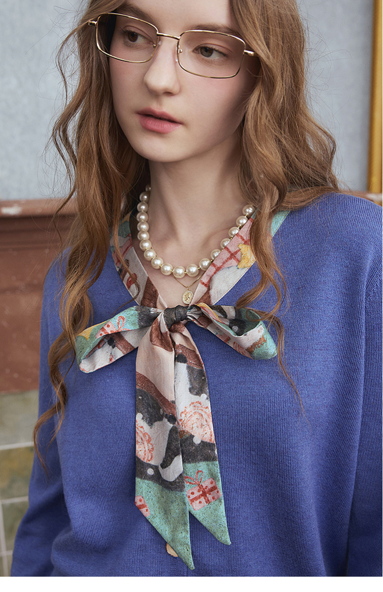 两三事 抒情诗人 2025秋季新款森系风印花领带针织开衫女宽松